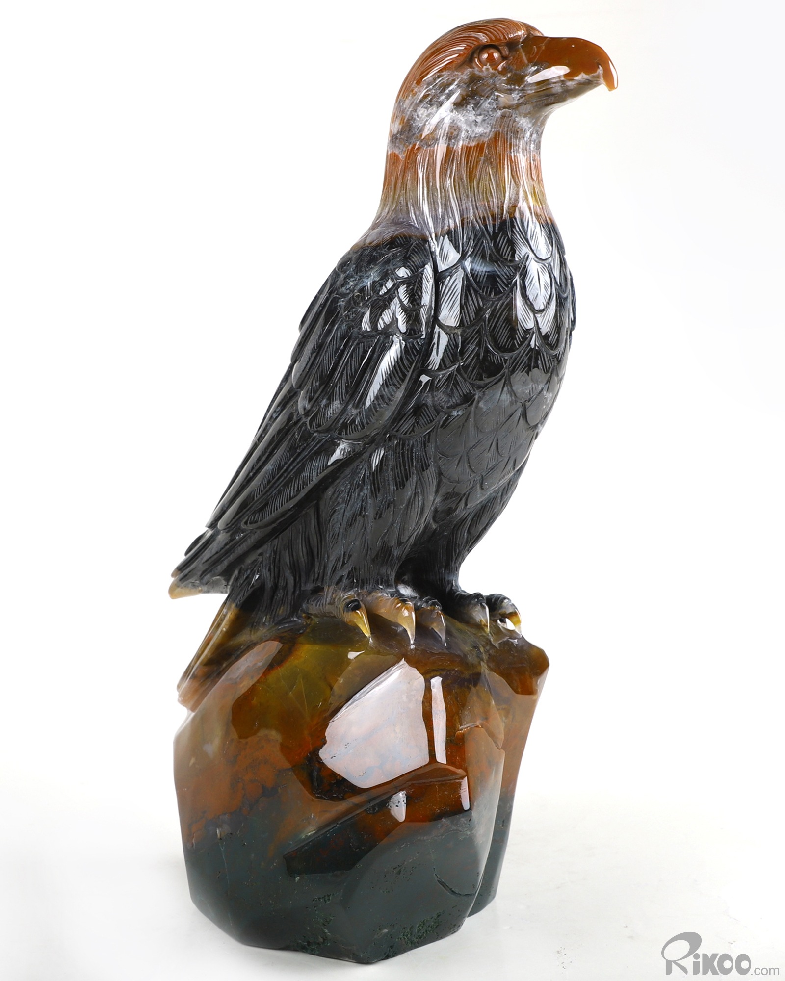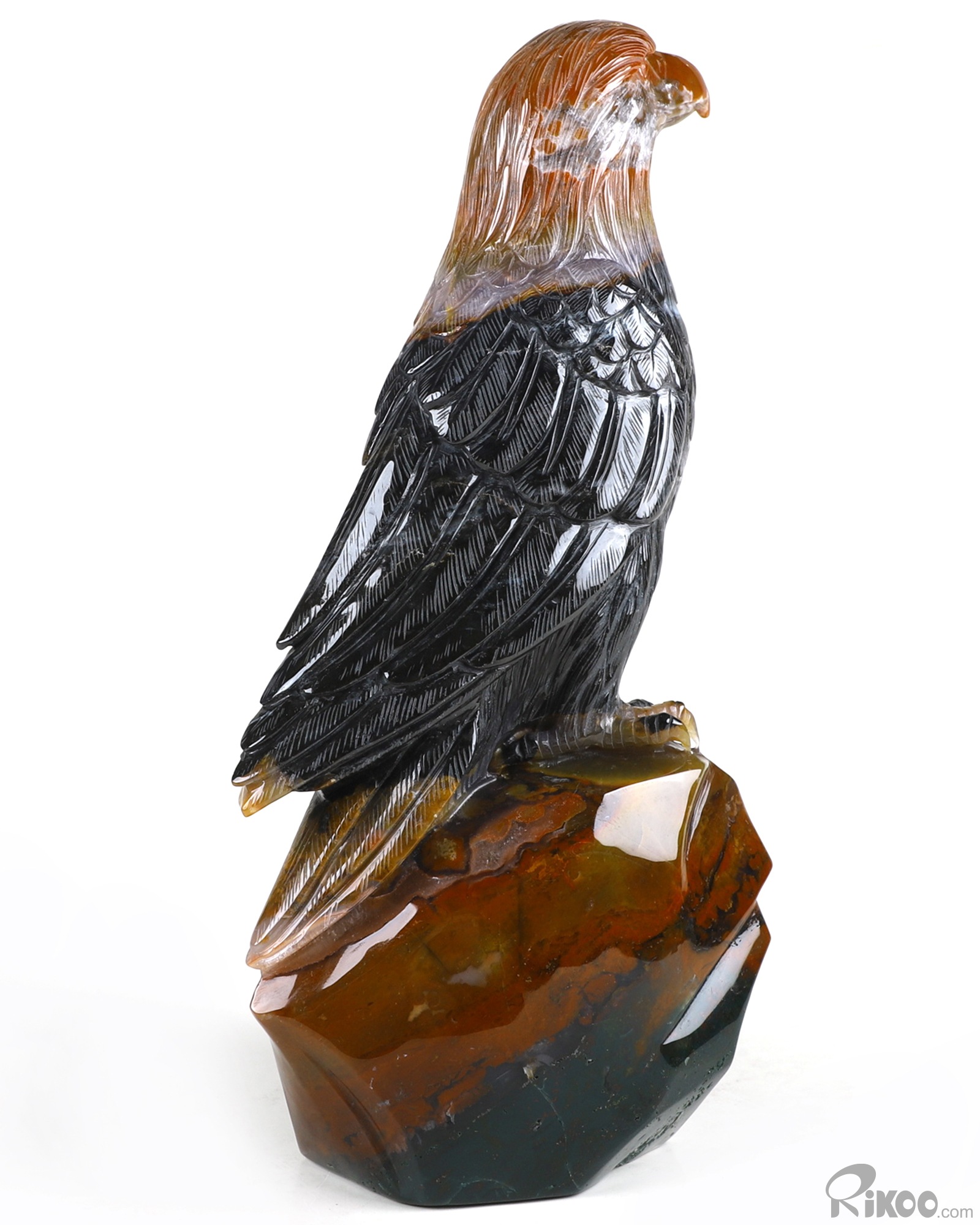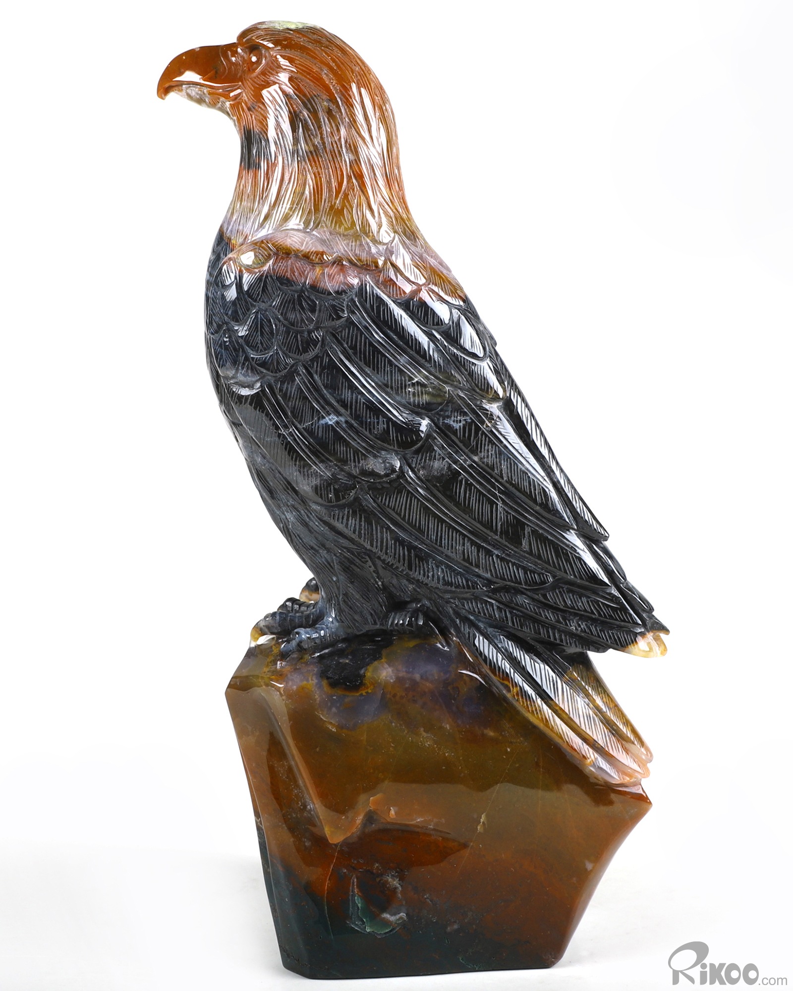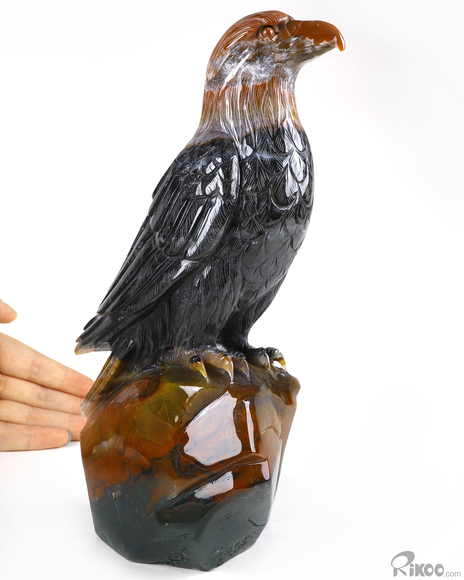 8.3" Black Zebra Agate Carved Crystal Eagle, Crystal Healing