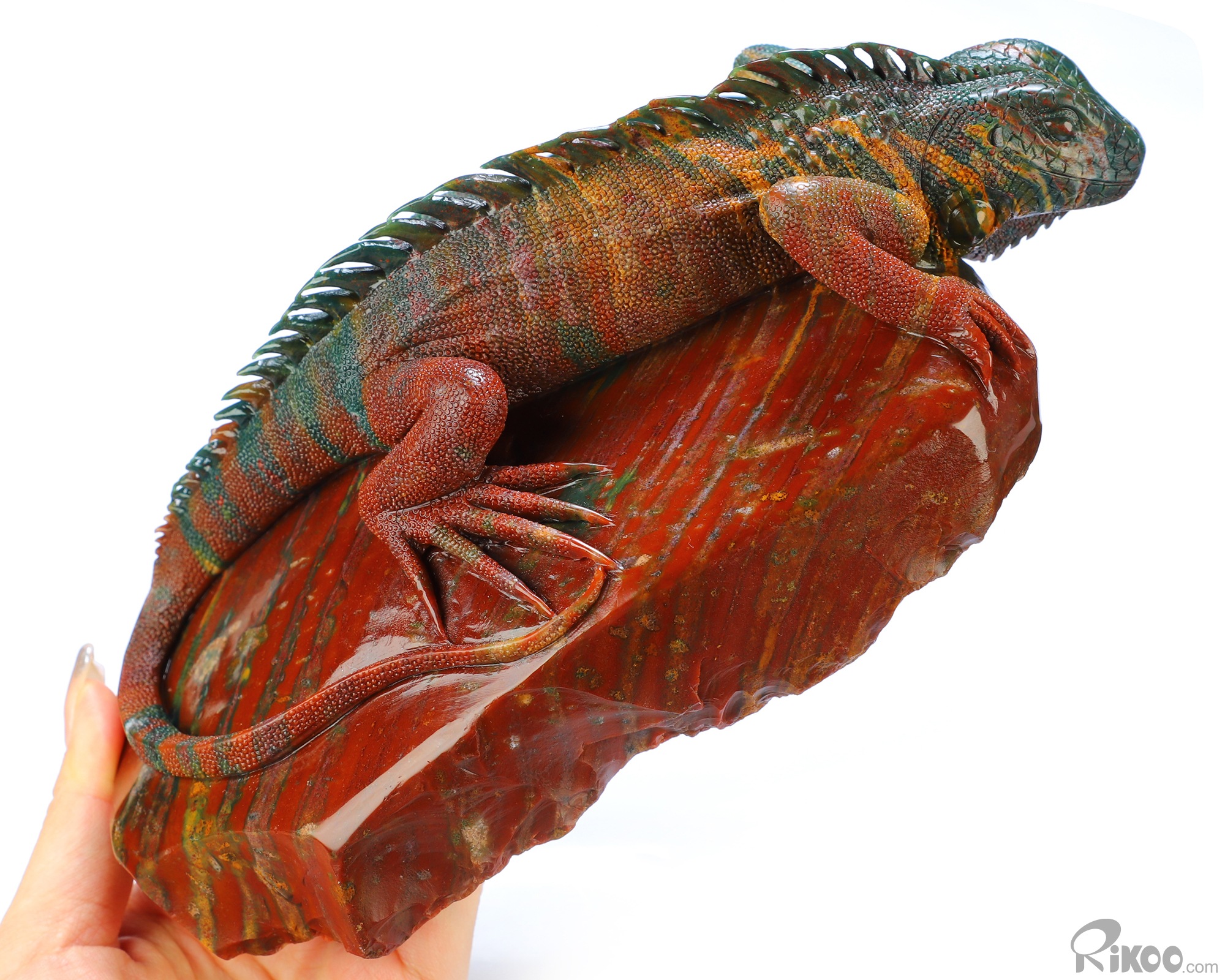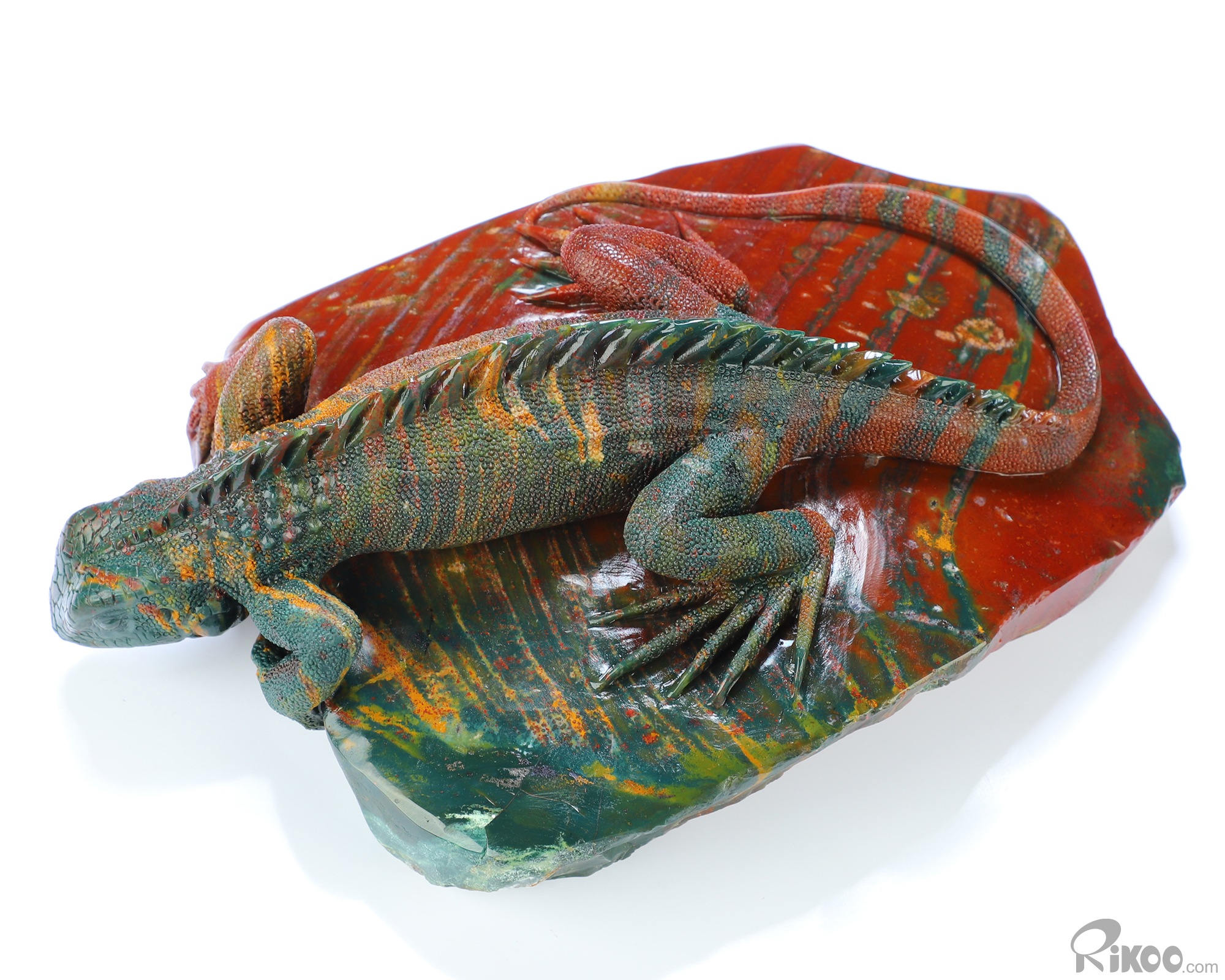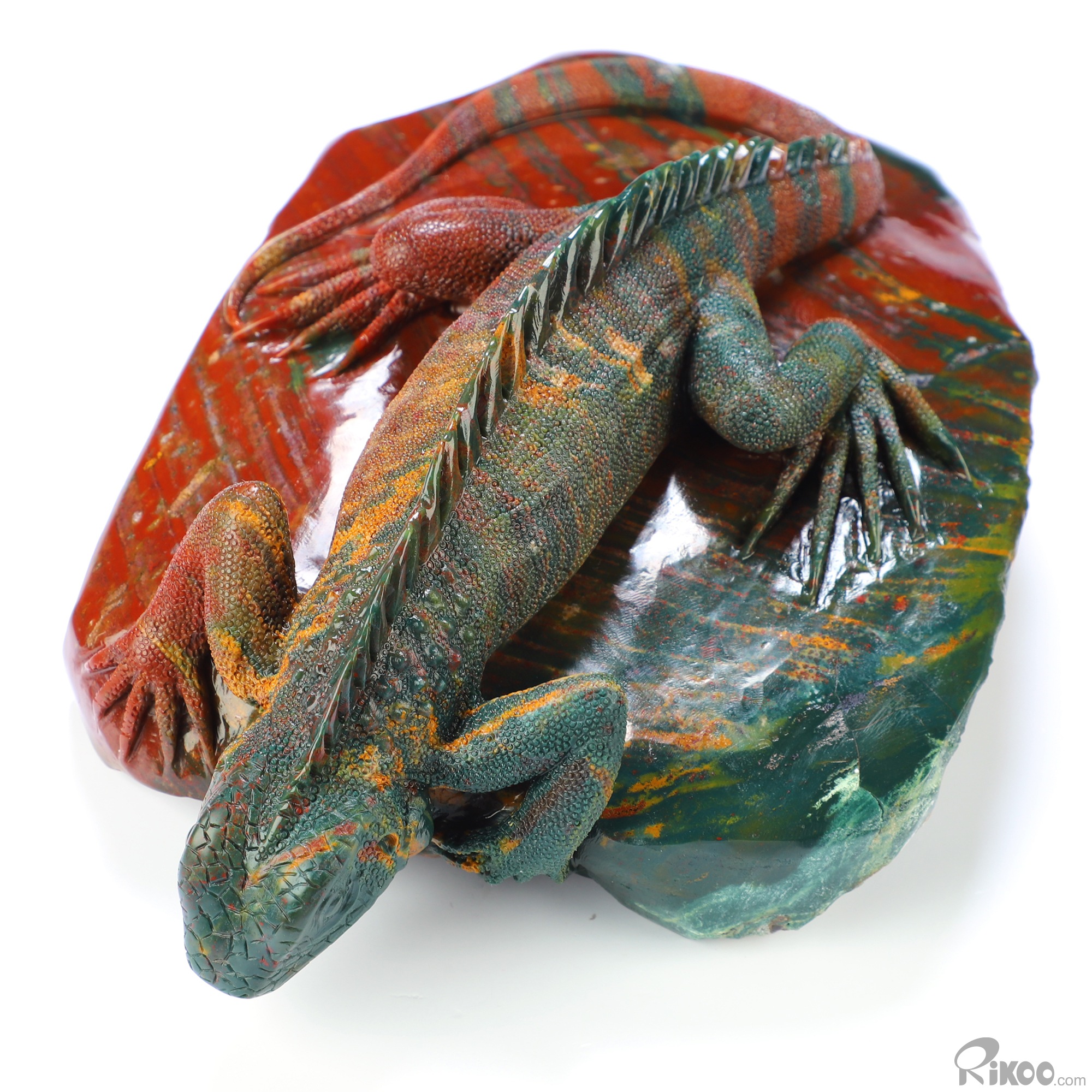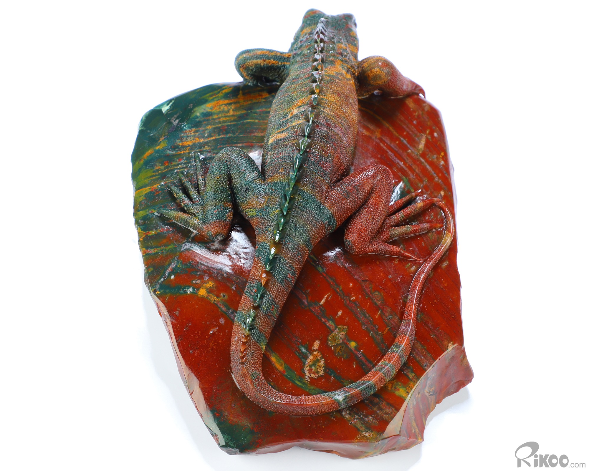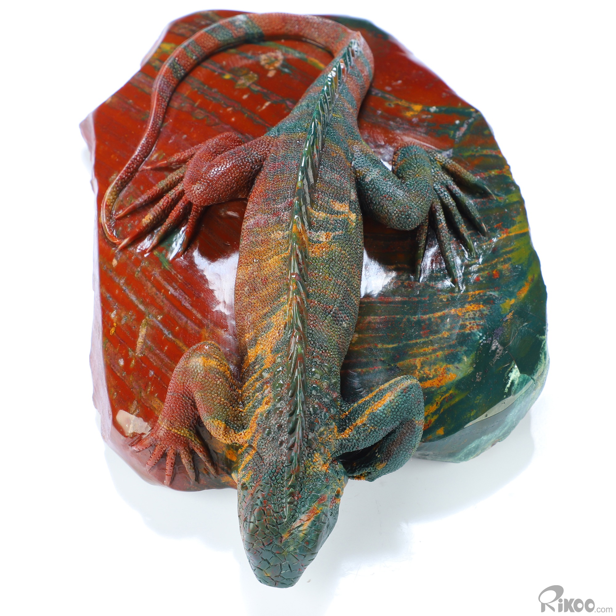 8.3" Bloodstone Hand Carved Crystal Lizard Sculpture, Crystal Healing