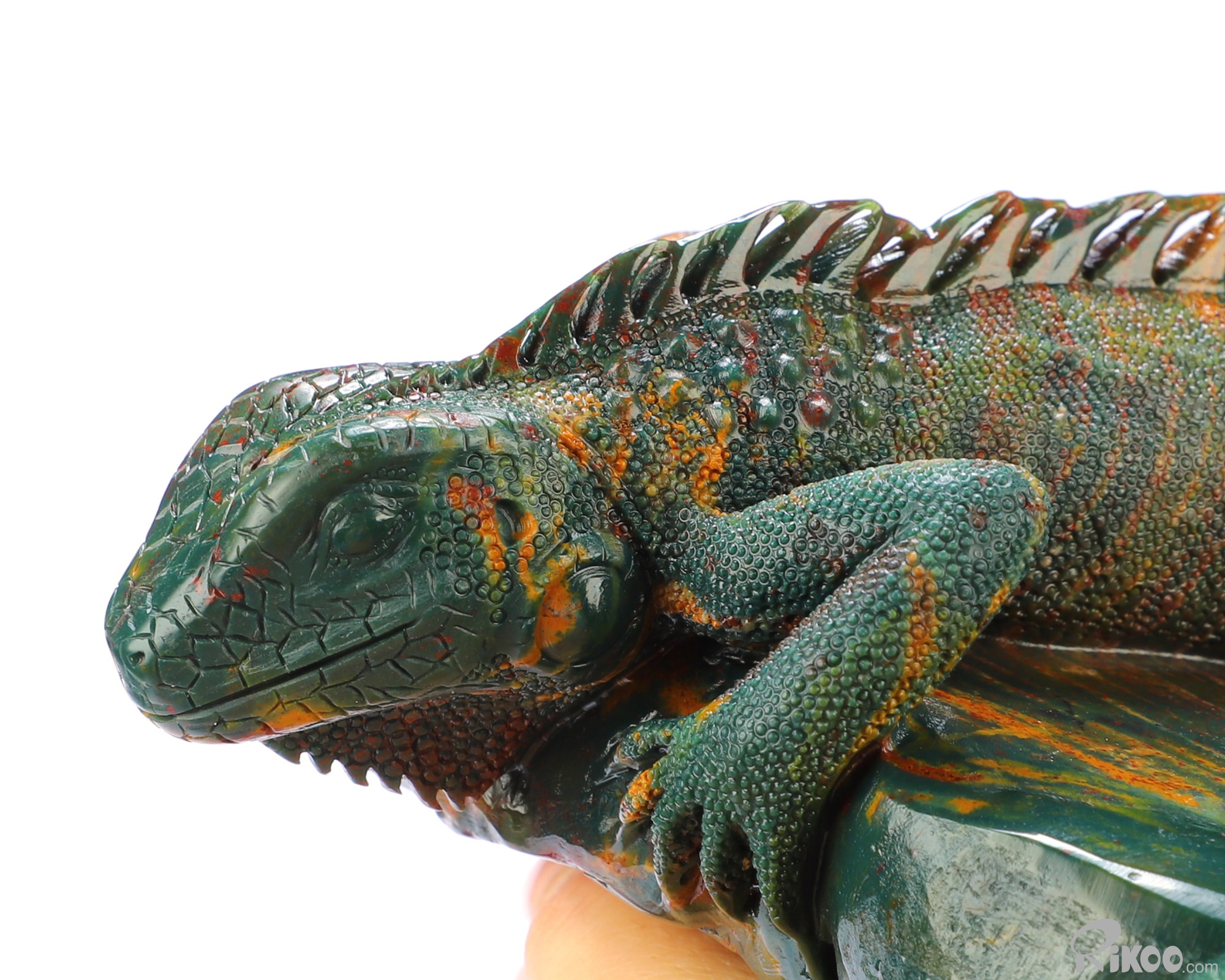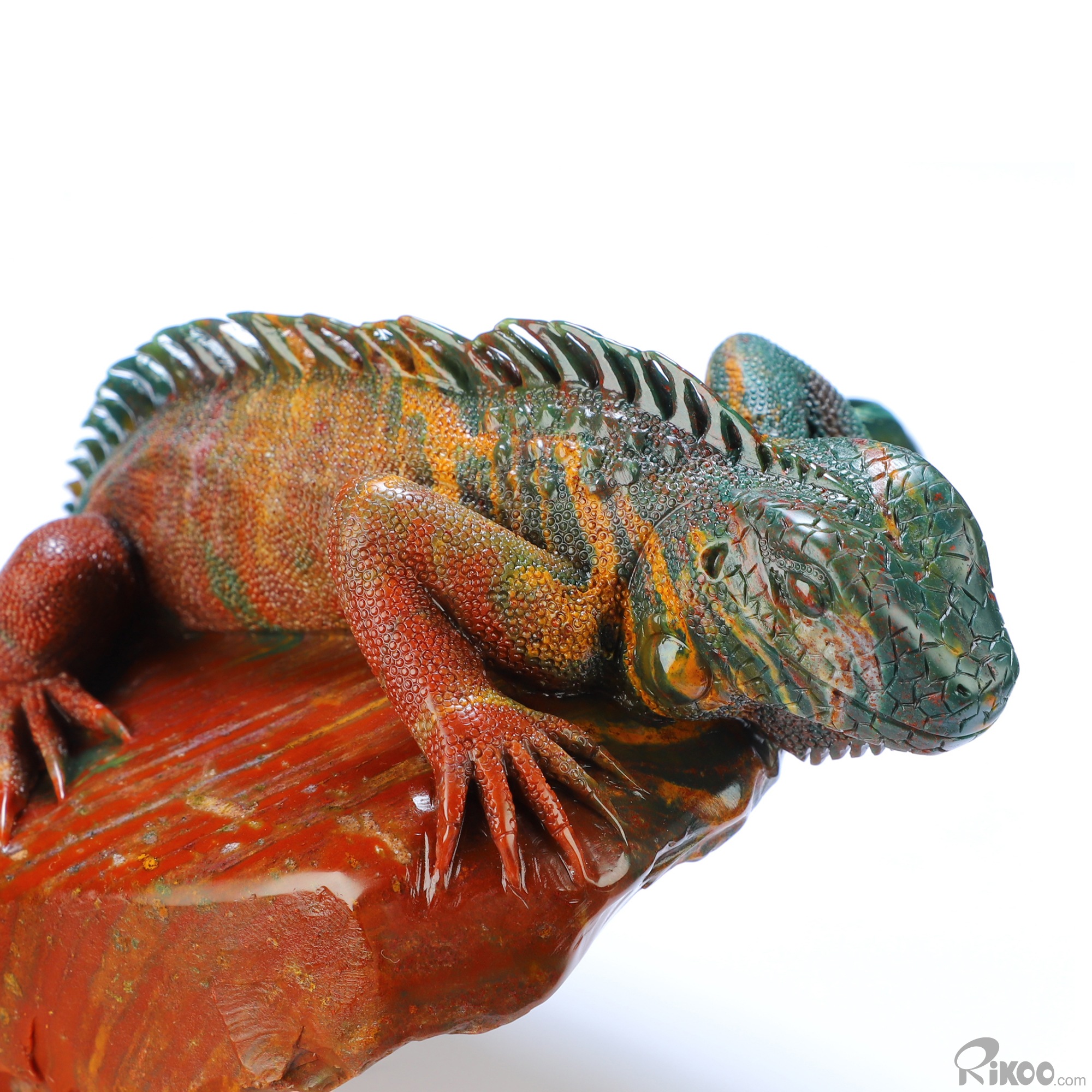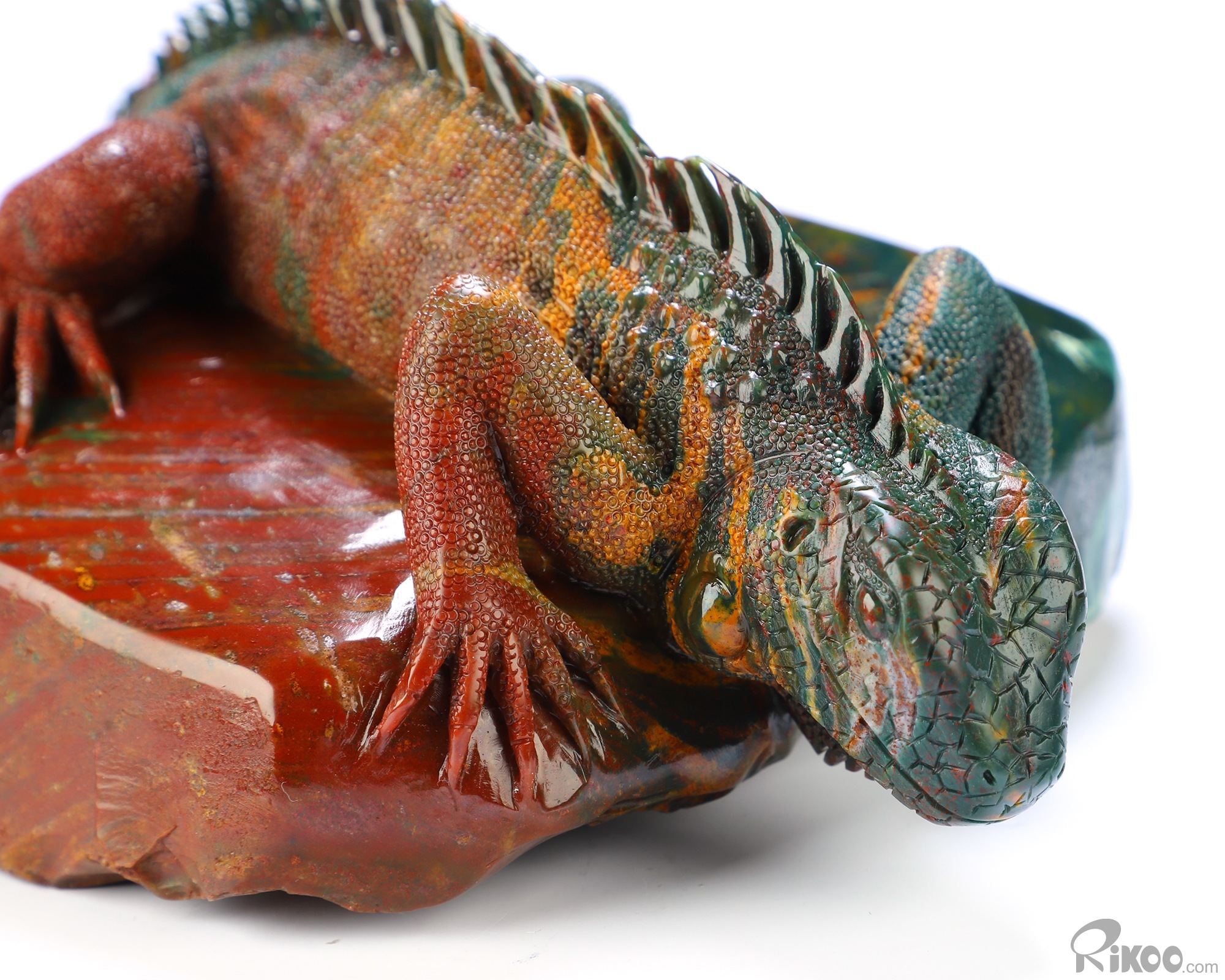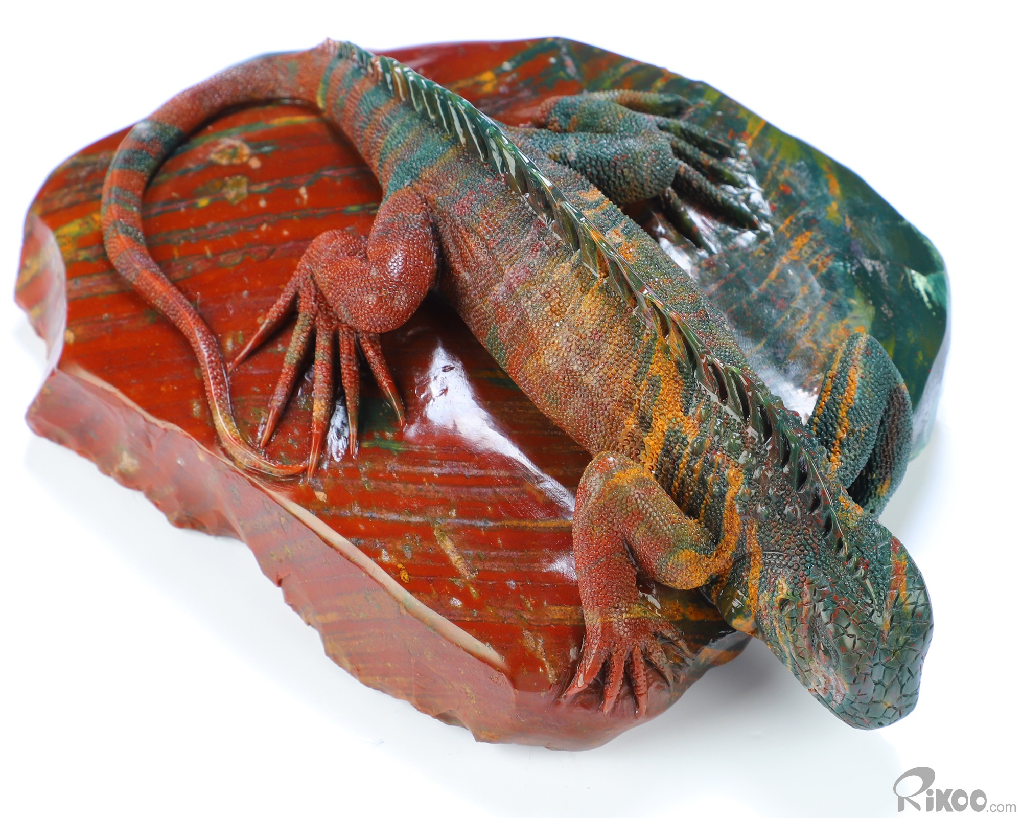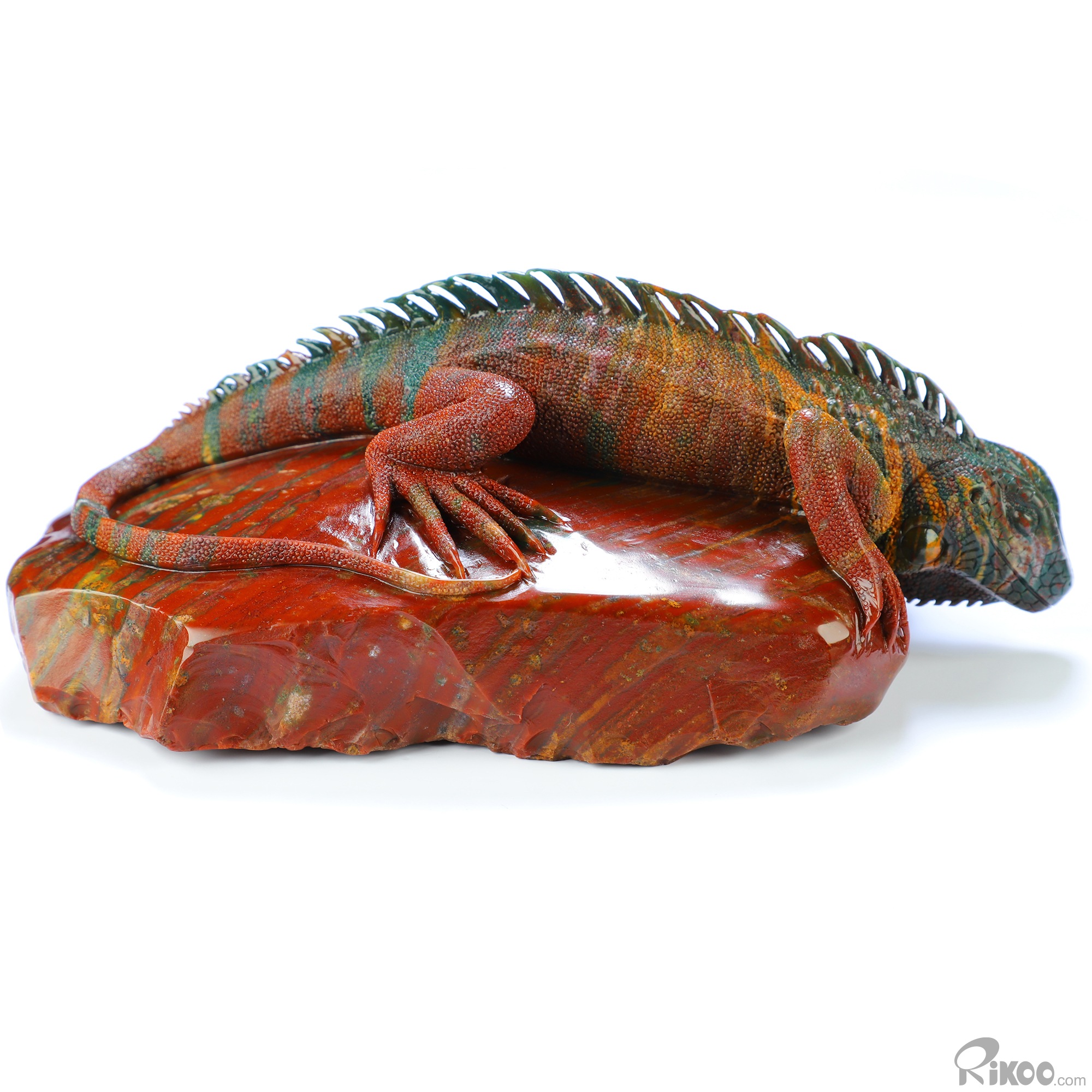8.3" Bloodstone Hand Carved Crystal Lizard Sculpture, Crystal Healing