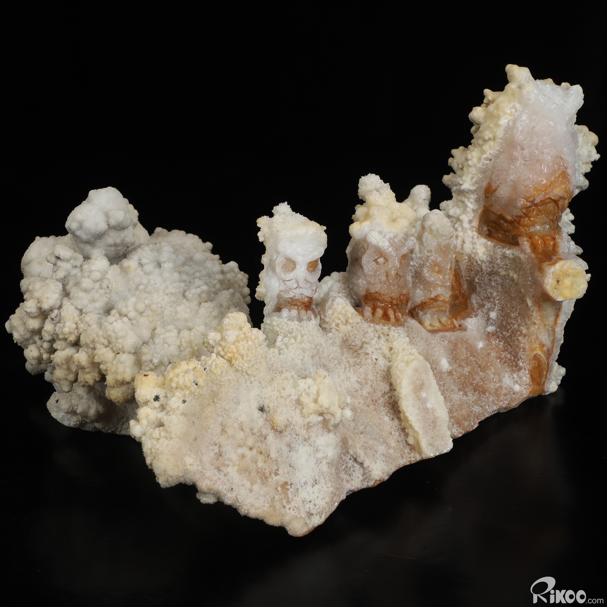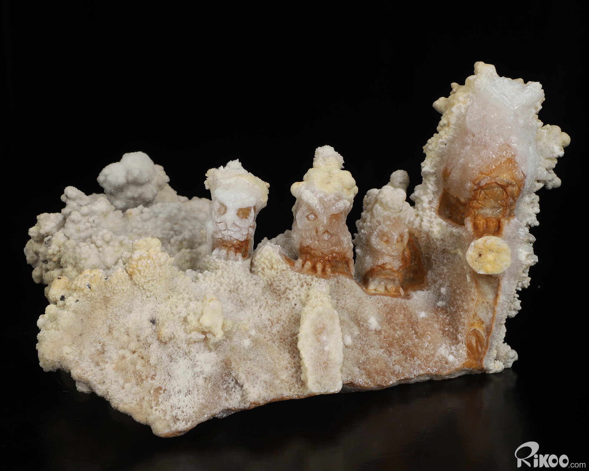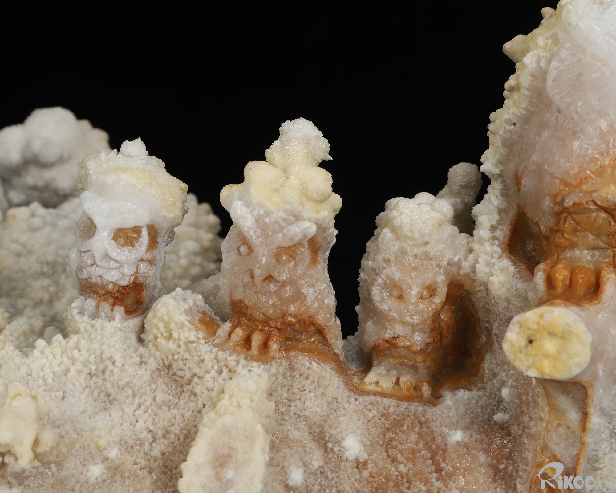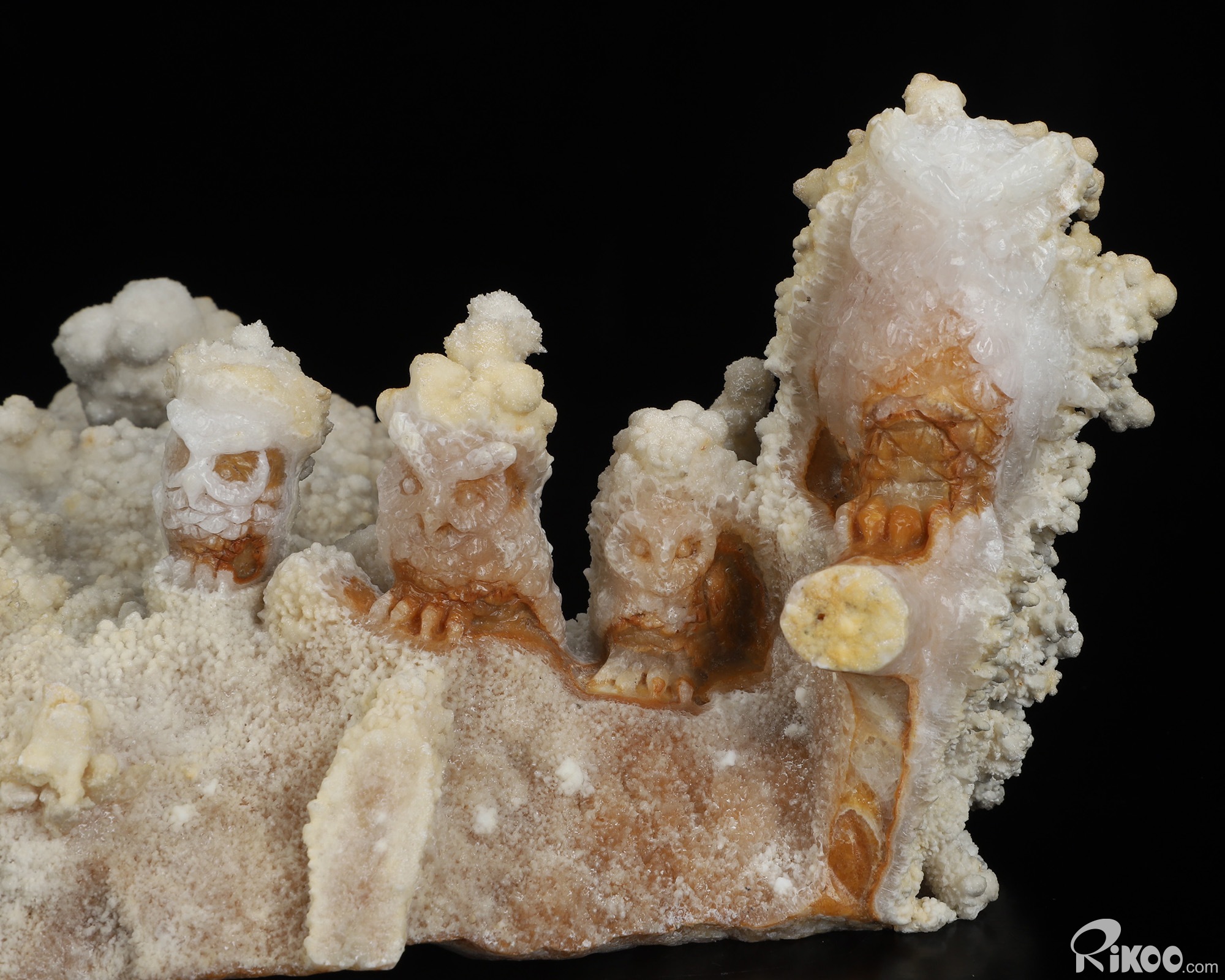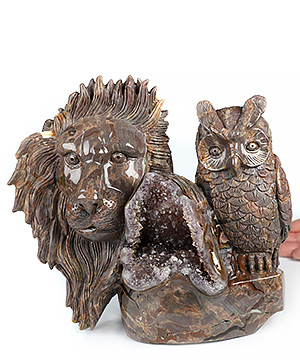 8.3" Calcite Hand Carved Crystal Owl Famliy Sculpture, Crystal Healing