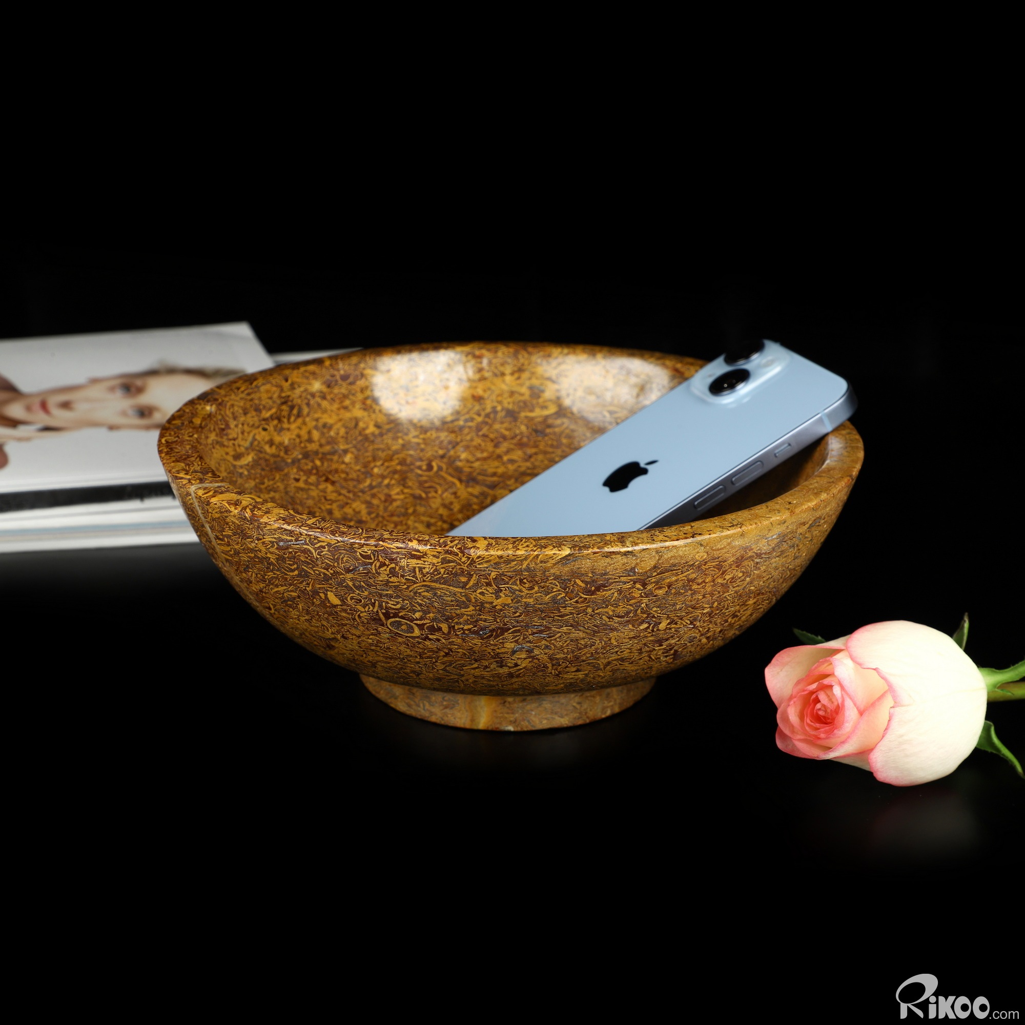 8.3" Elephant Skin Jasper Hand Carved Crystal Bowl, Crystal Healing