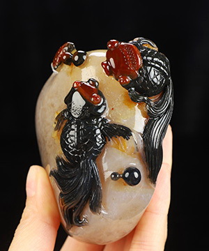 You are looking at an Indian Agate sculpture. The sculpture is 8.3 inches long.