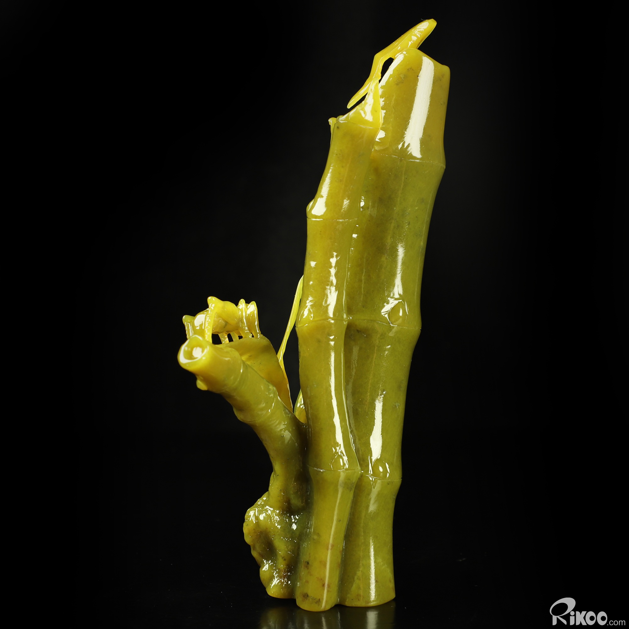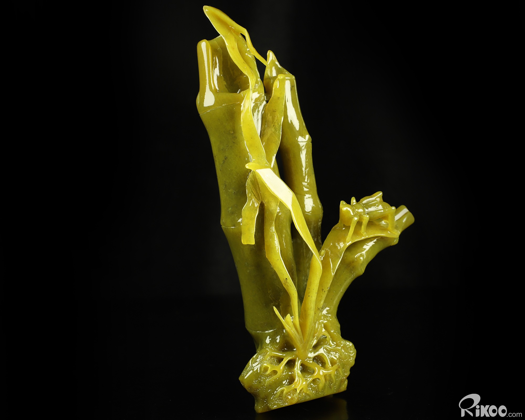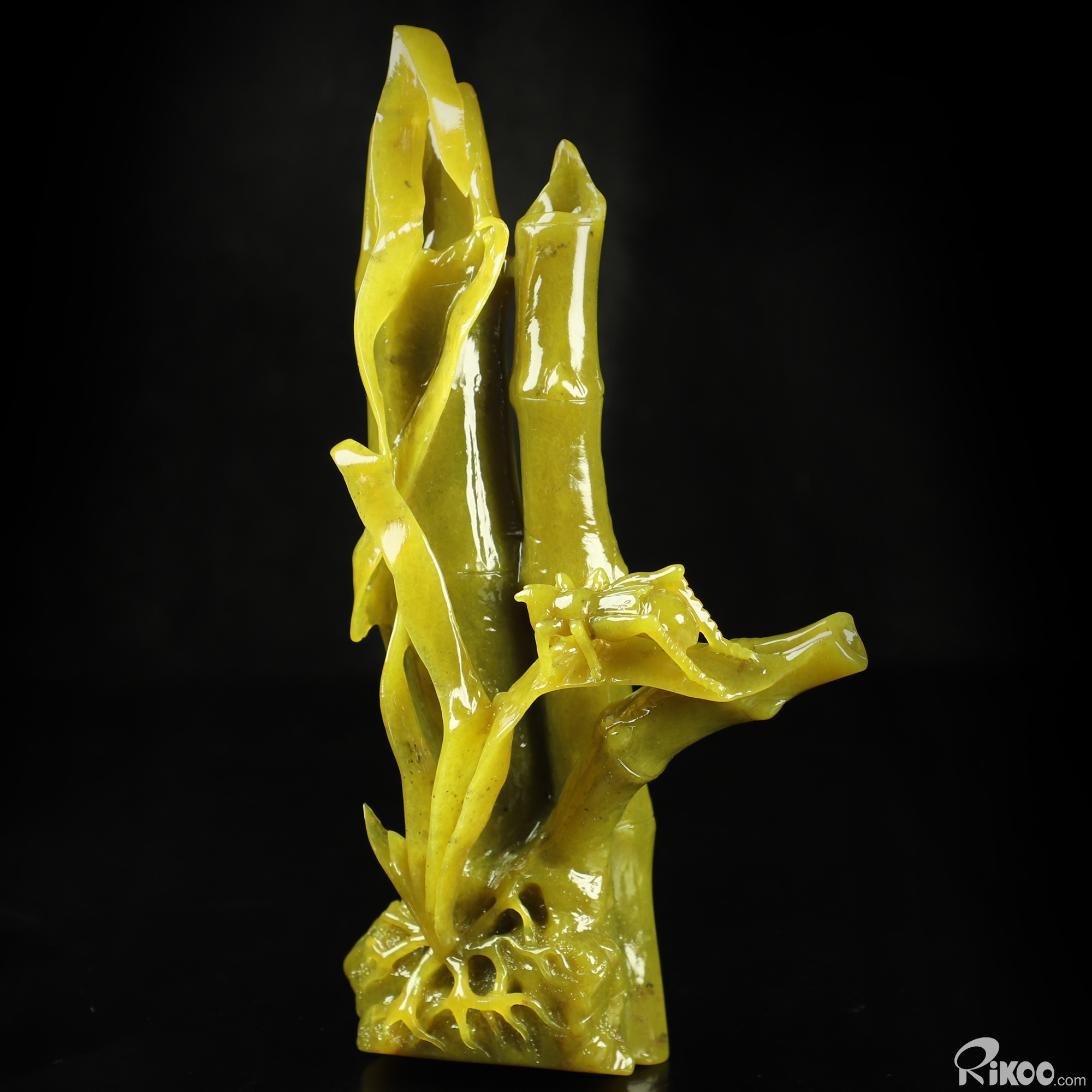 8.3" Lemon Stone Hand Carved Crystal Bamboo and Cricket Sculpture, Crystal Healing