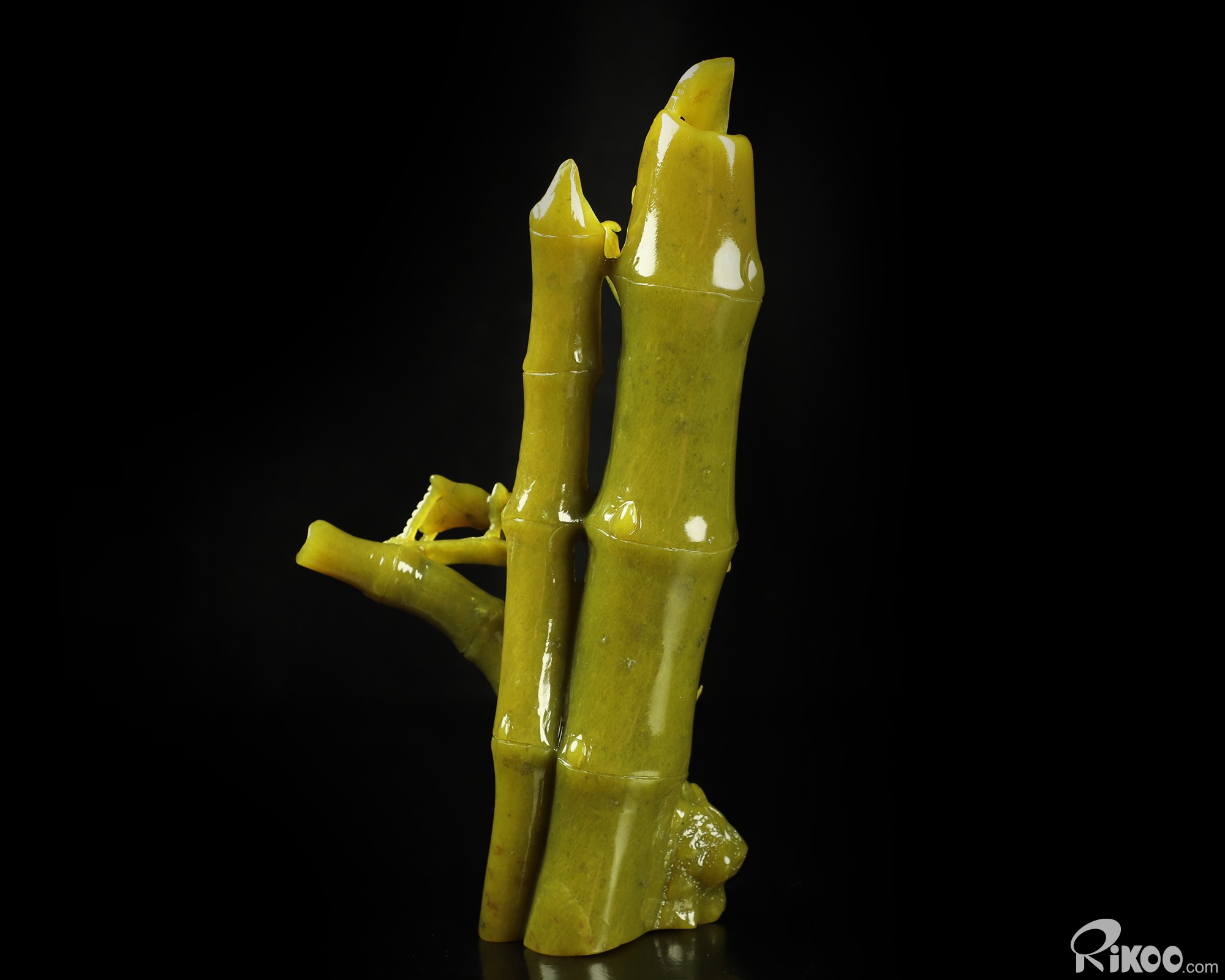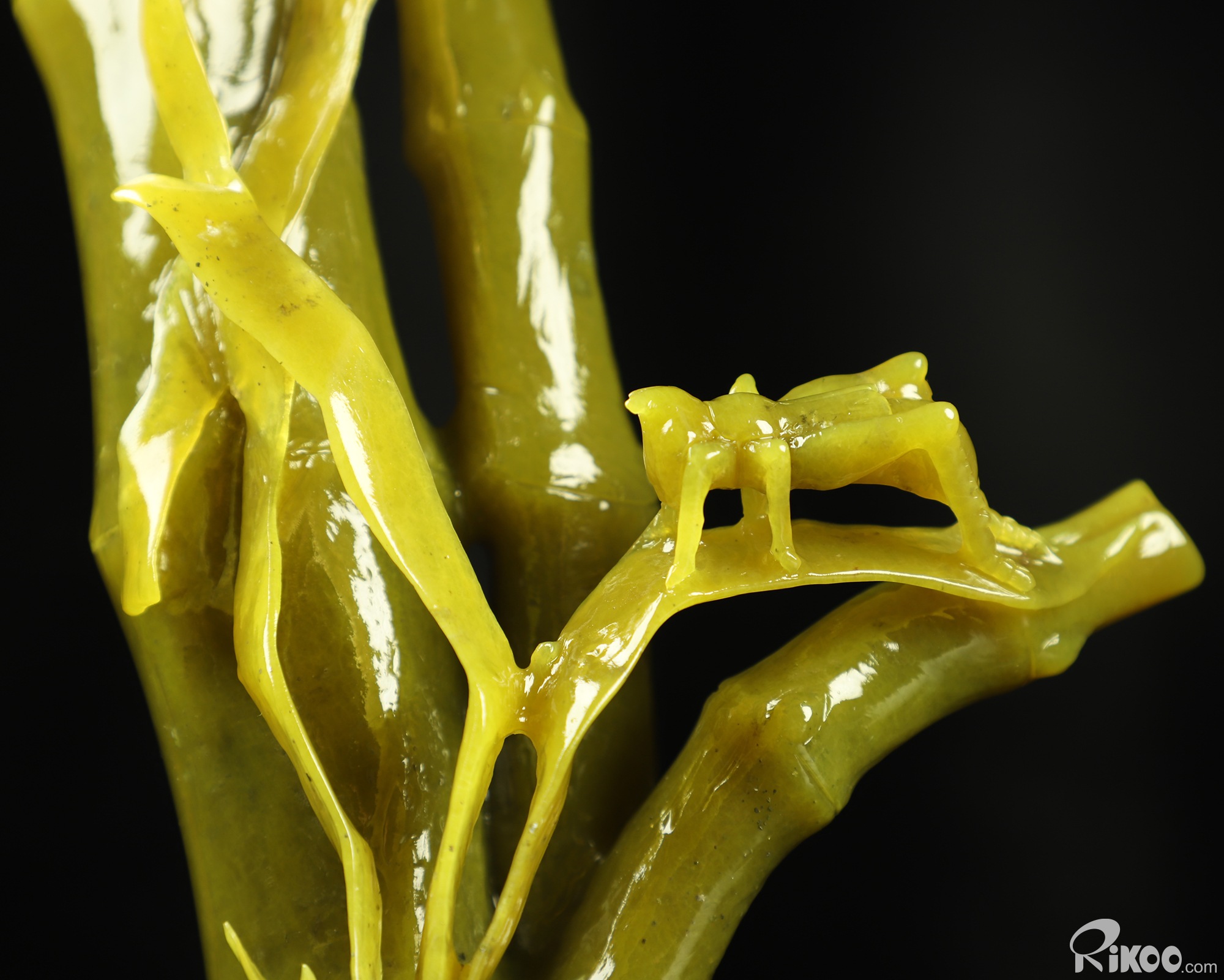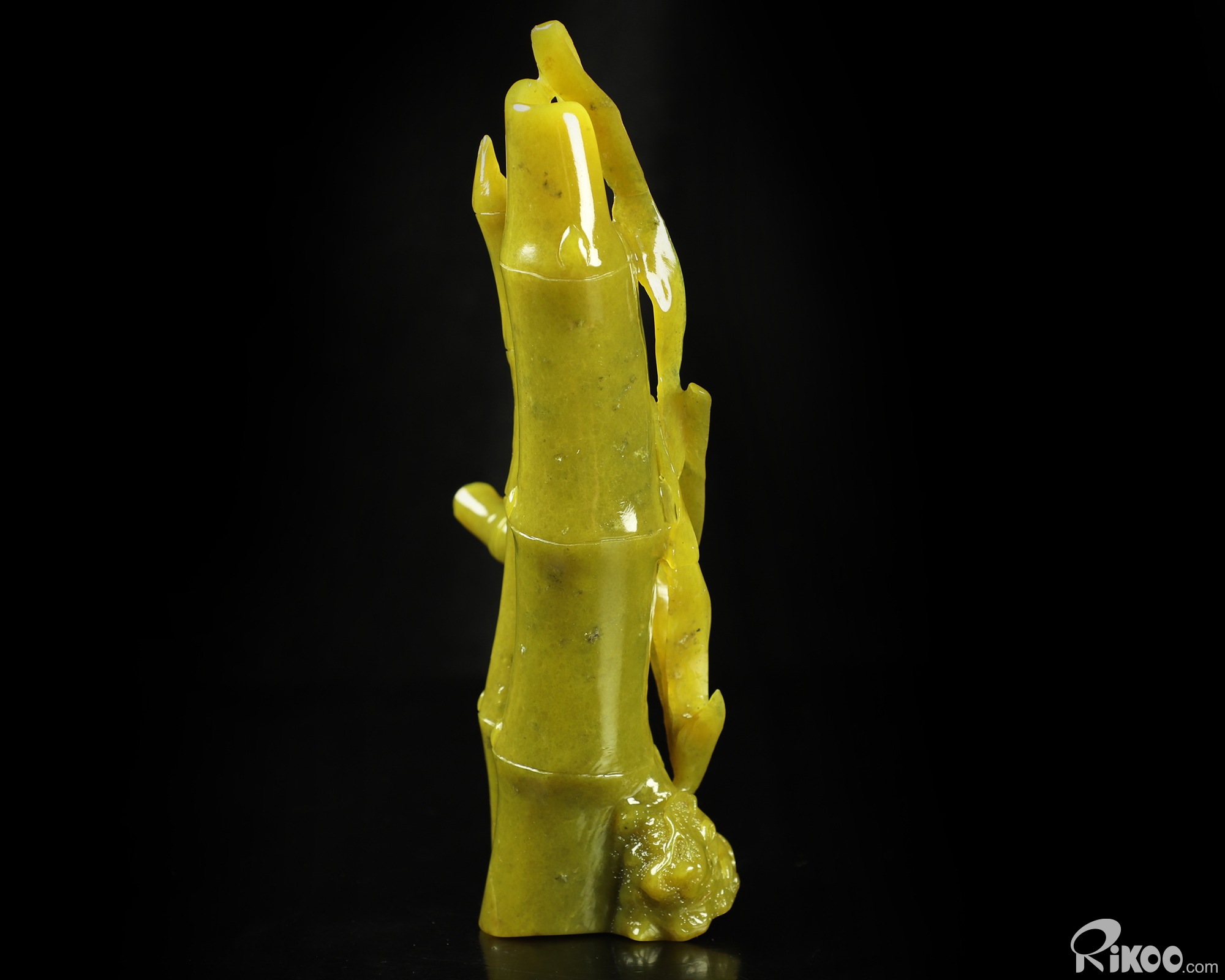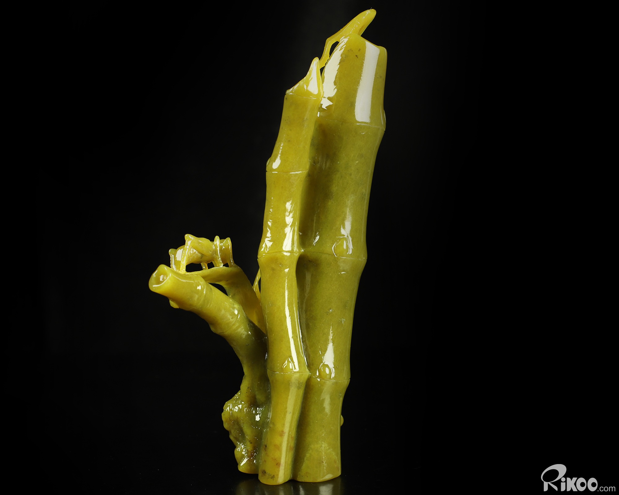8.3" Lemon Stone Hand Carved Crystal Bamboo and Cricket Sculpture, Crystal Healing