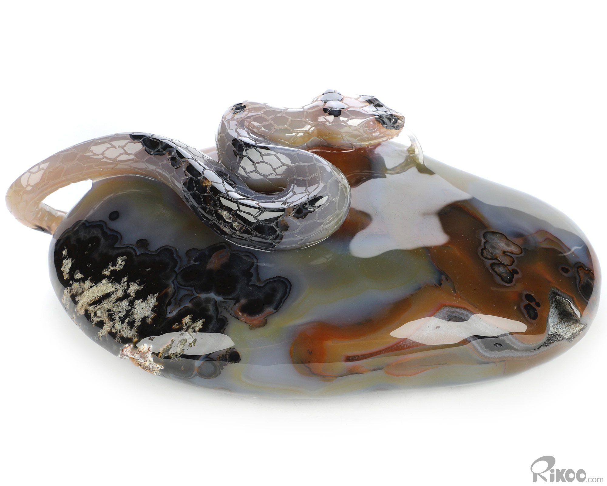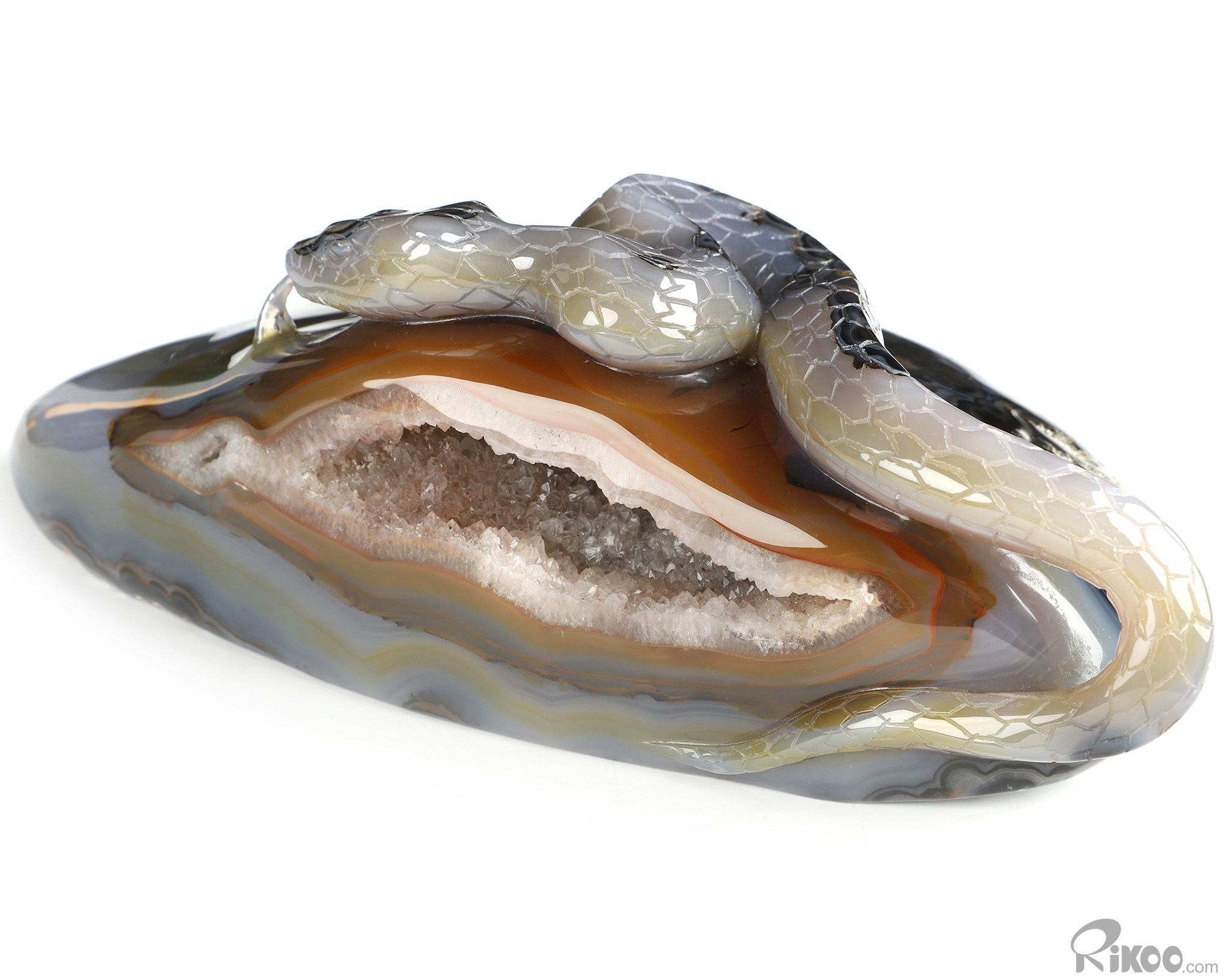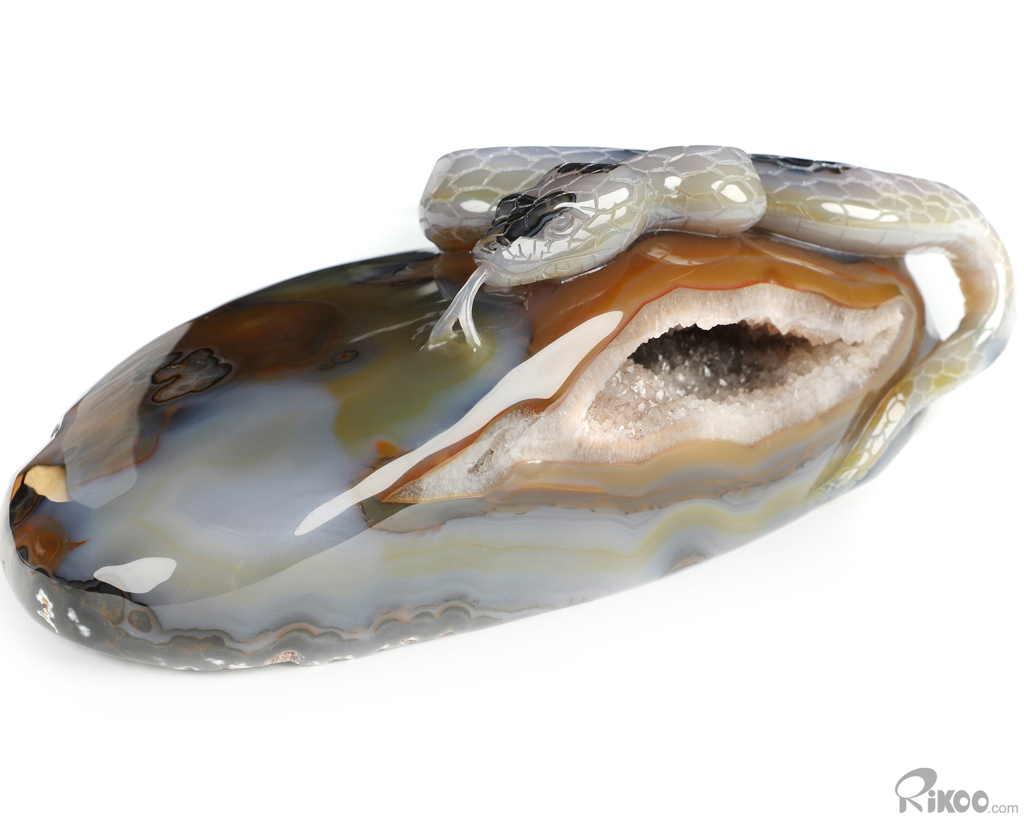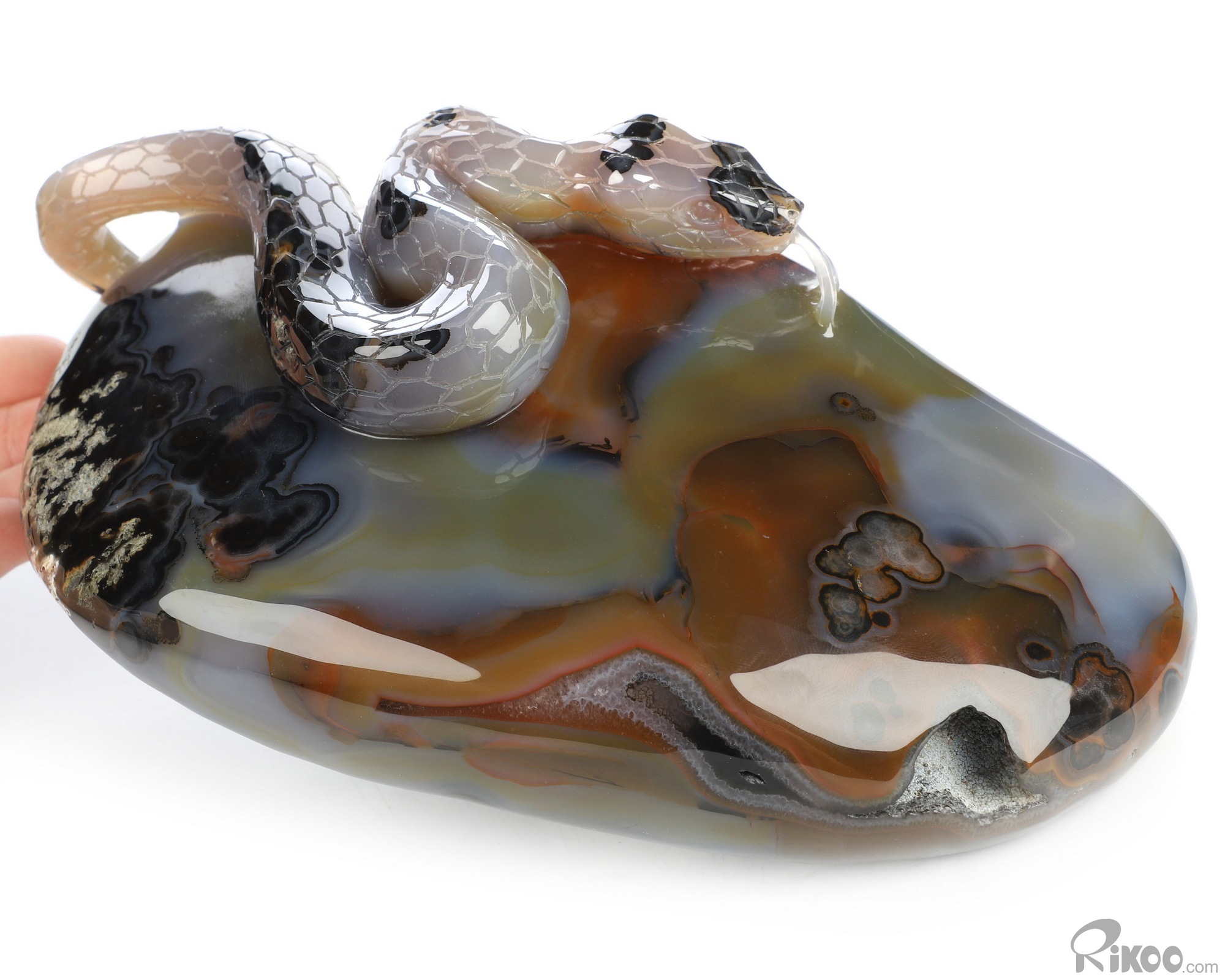 8.3" Premium Brazilian Agate Hand Carved Crystal Snake Sculpture, Crystal Healing