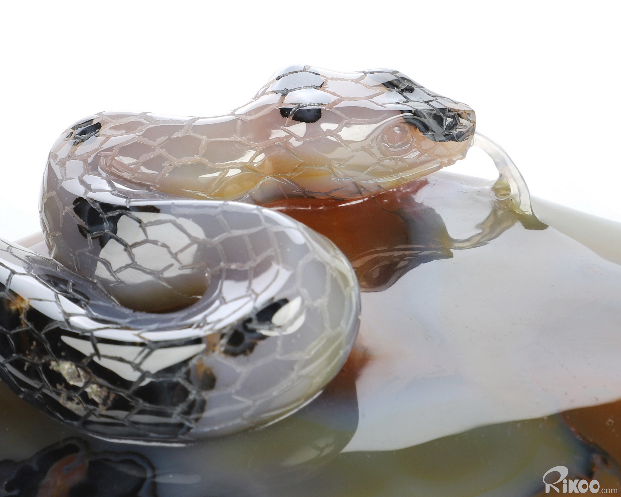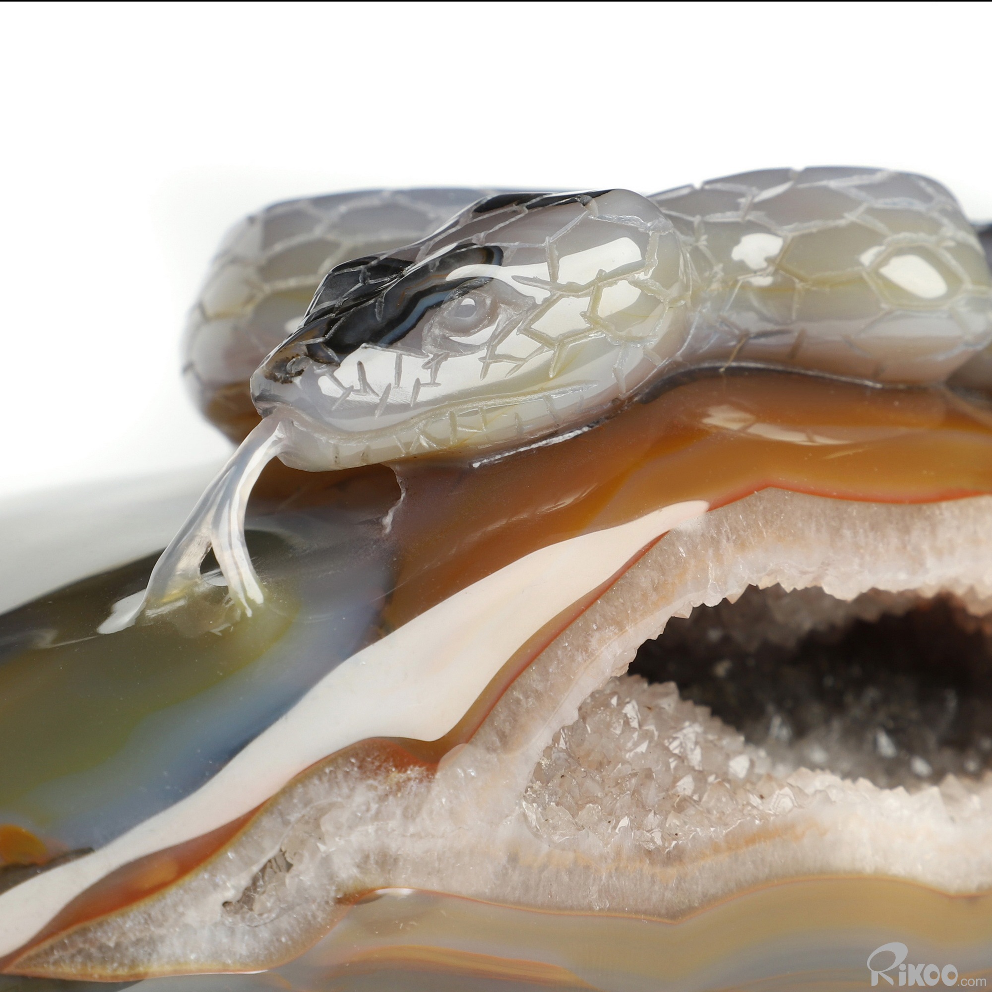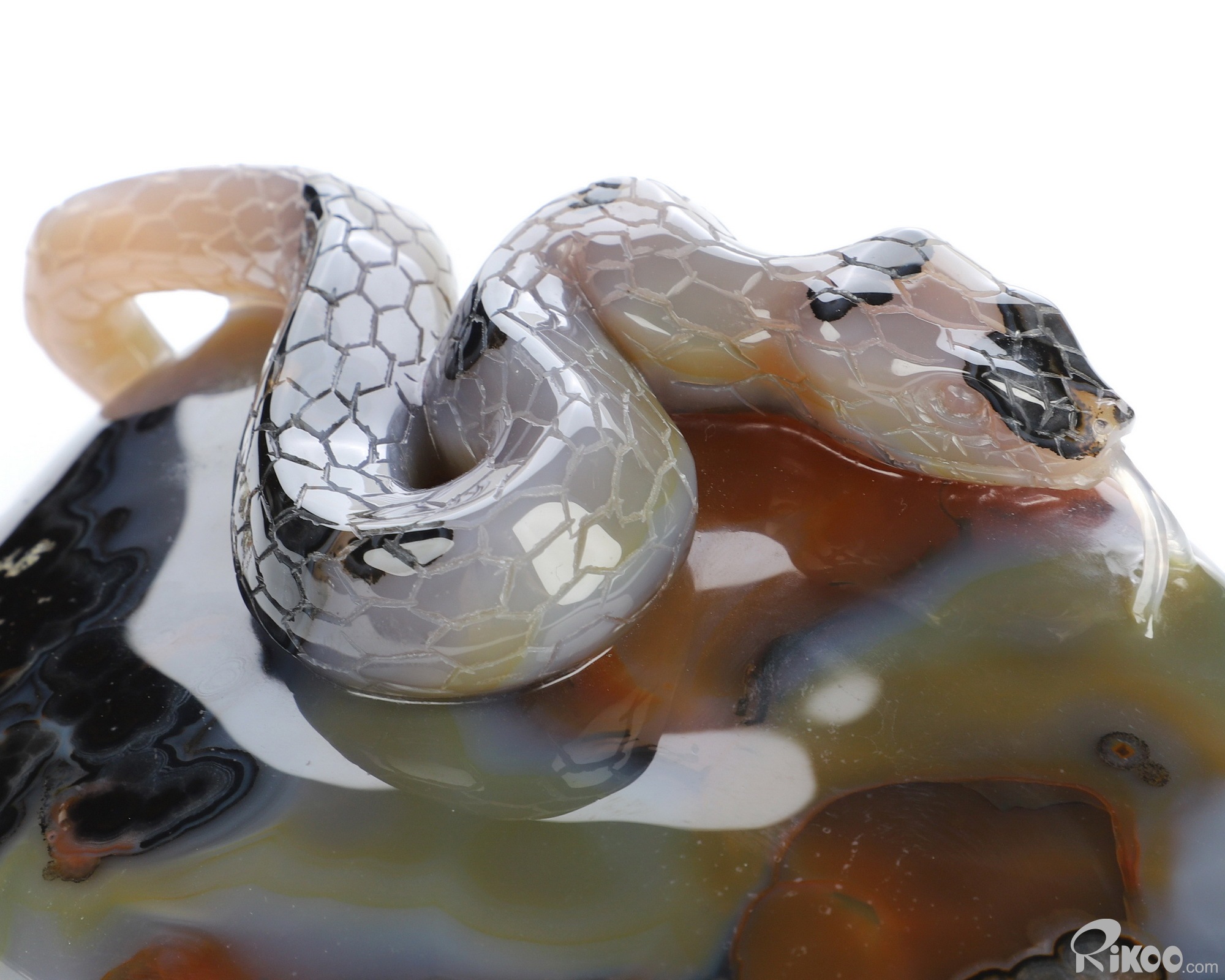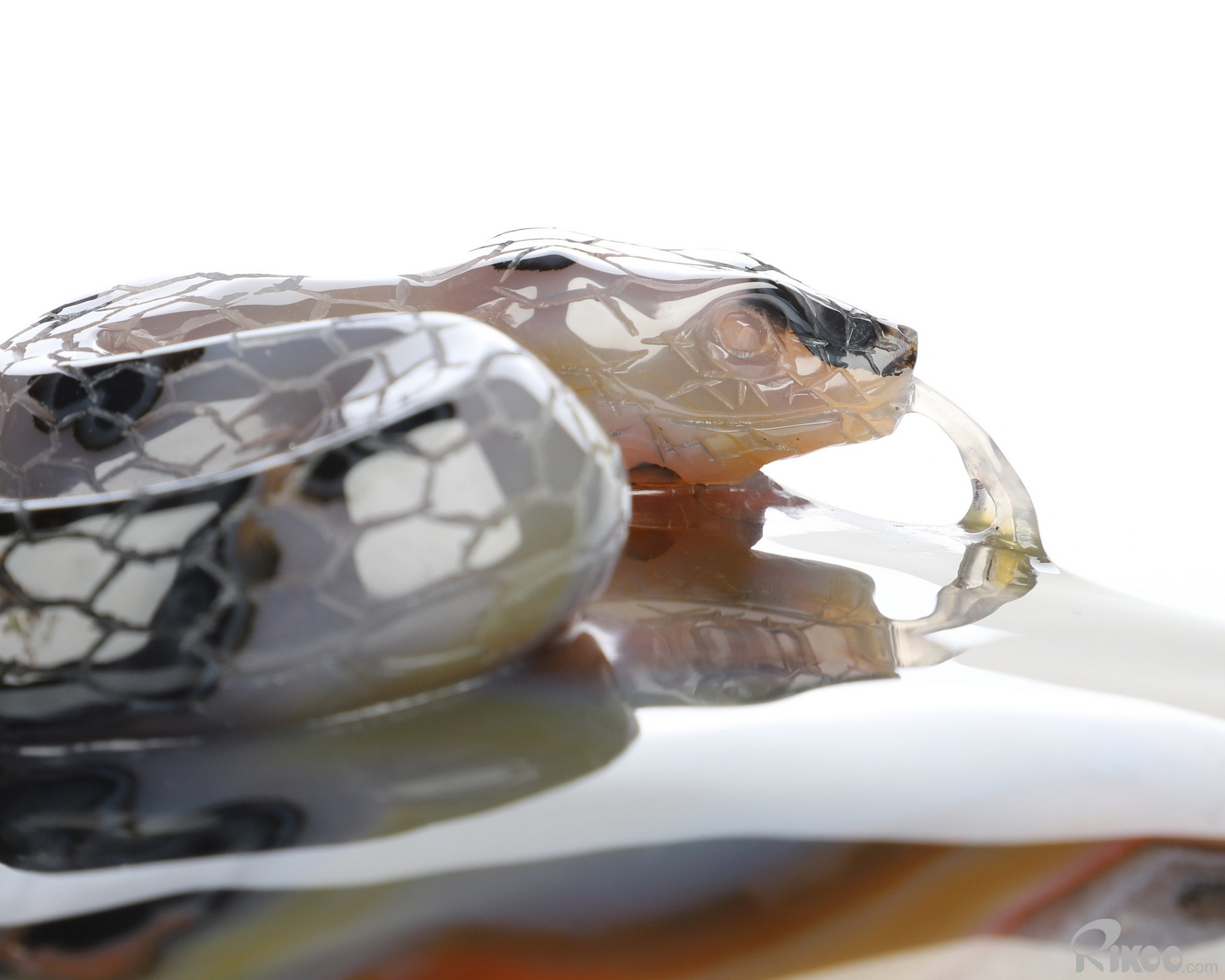 8.3" Premium Brazilian Agate Hand Carved Crystal Snake Sculpture, Crystal Healing