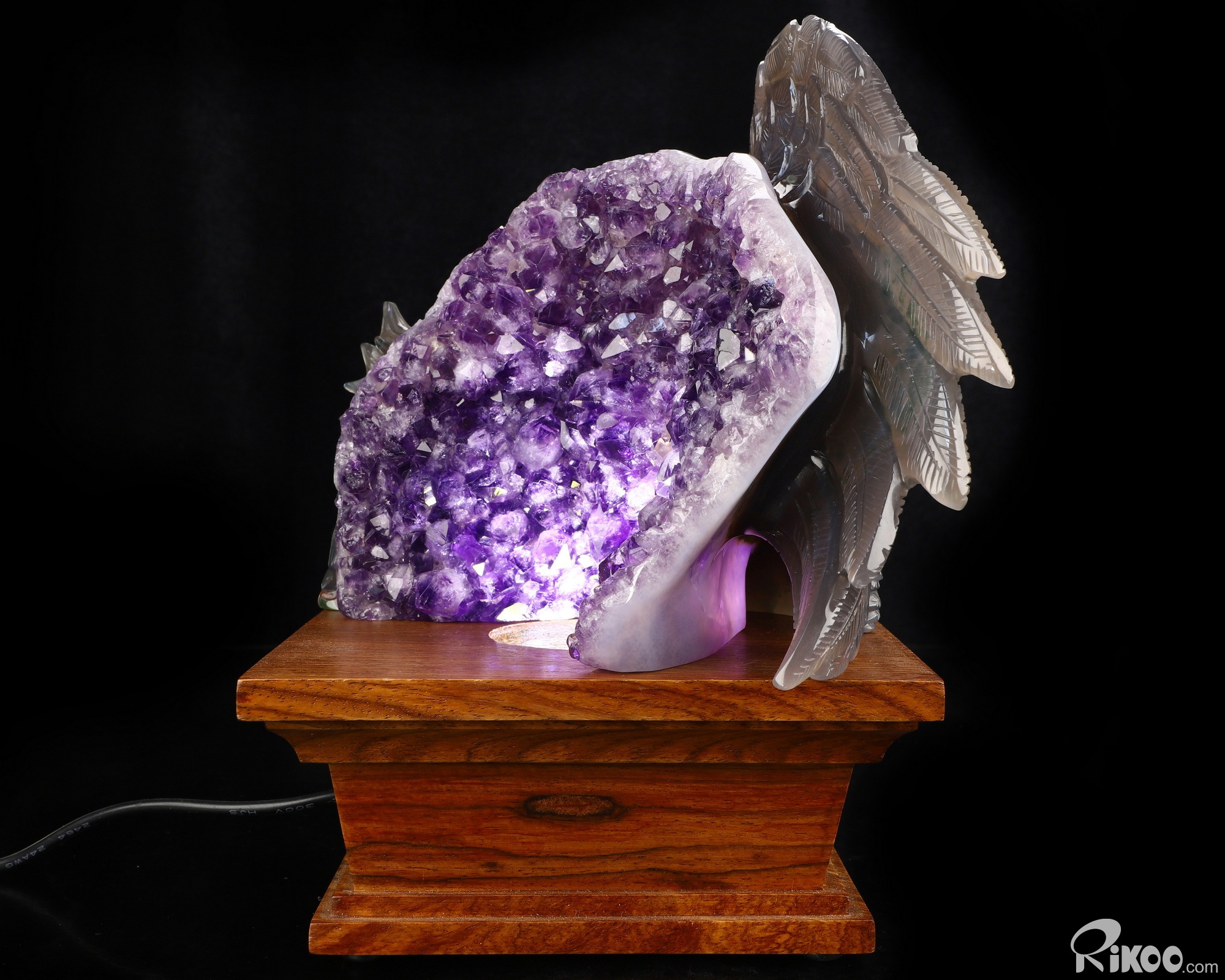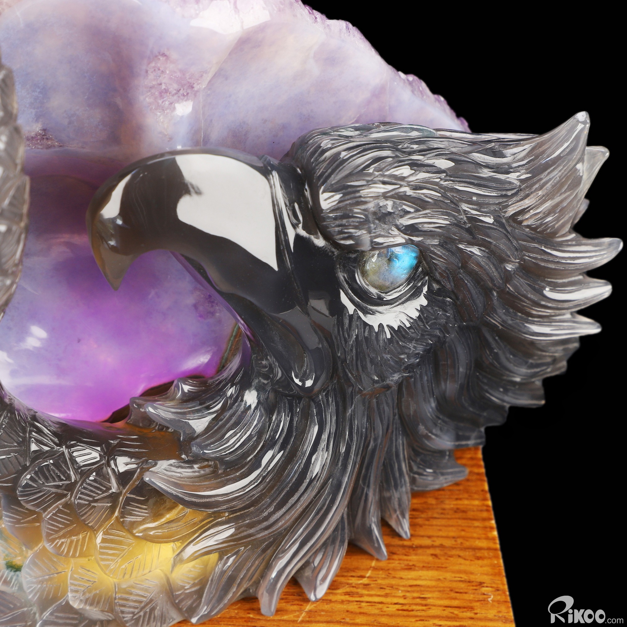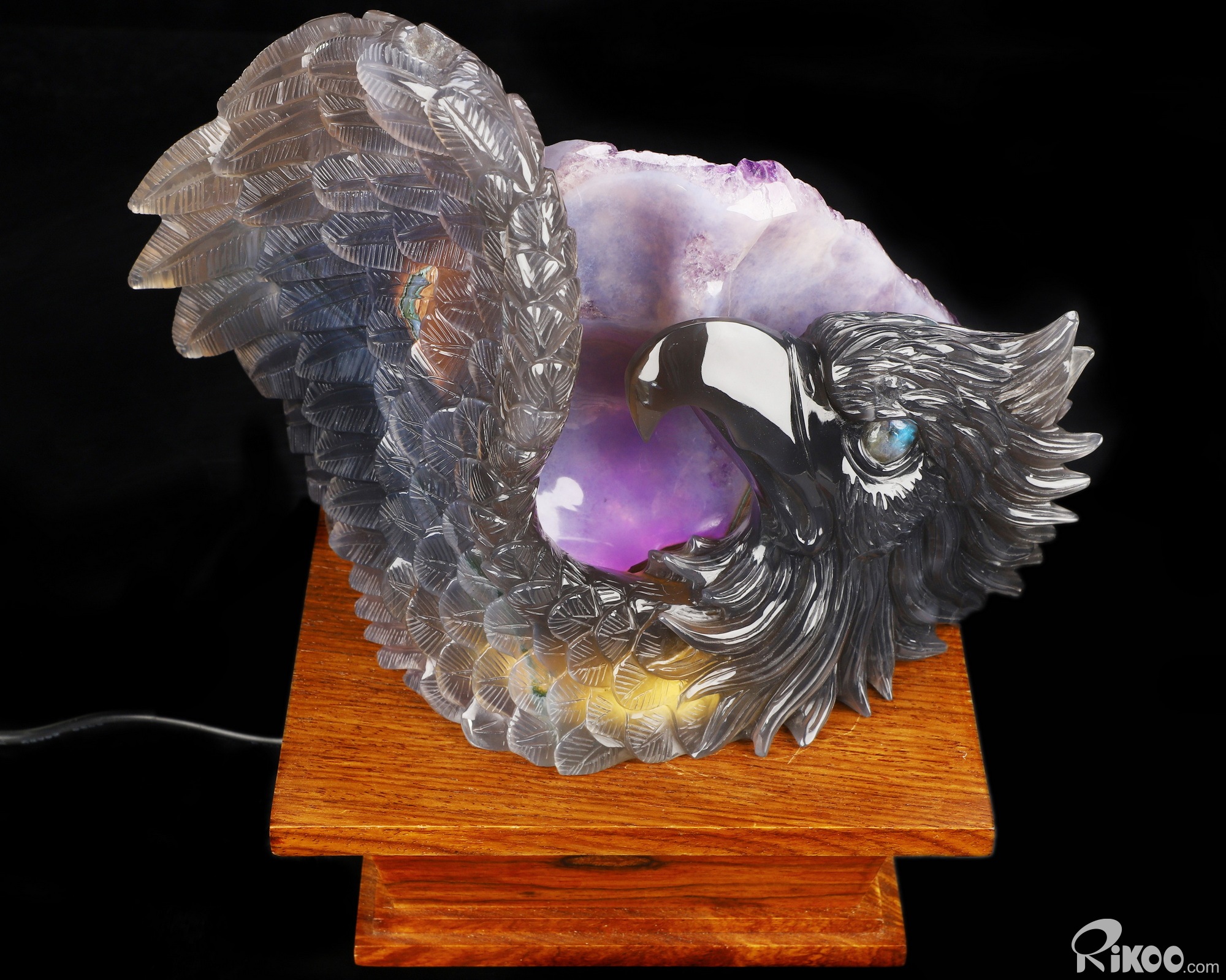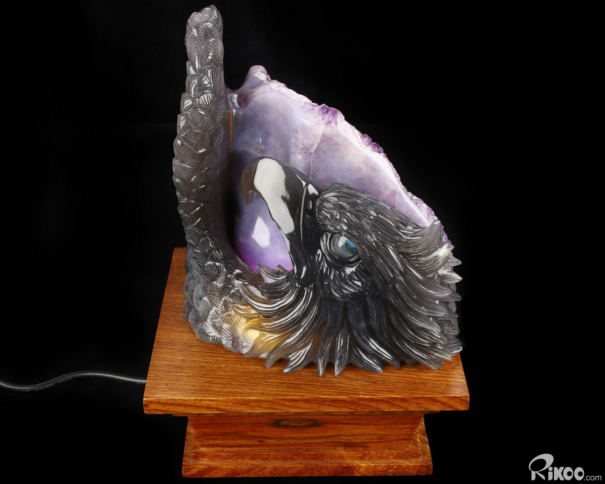 8.4" Agate Amethyst Geode Hand Carved Crystal Eagle Sculpture with LED Stand, Crystal Healing