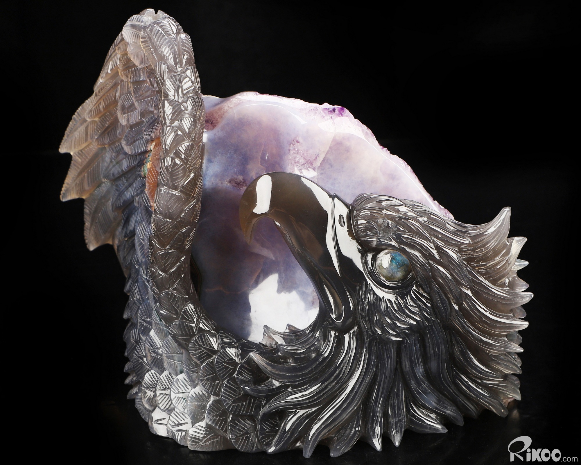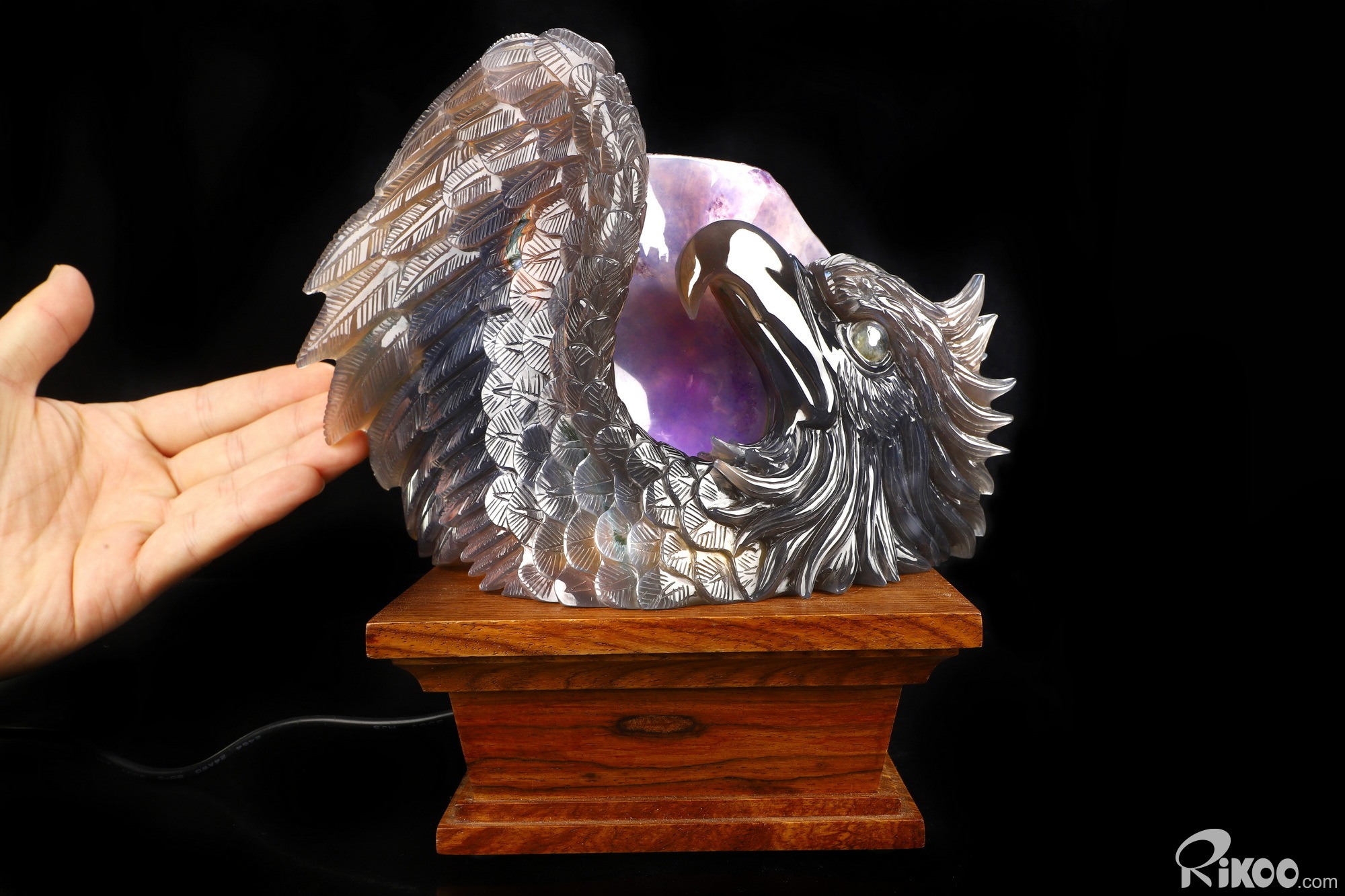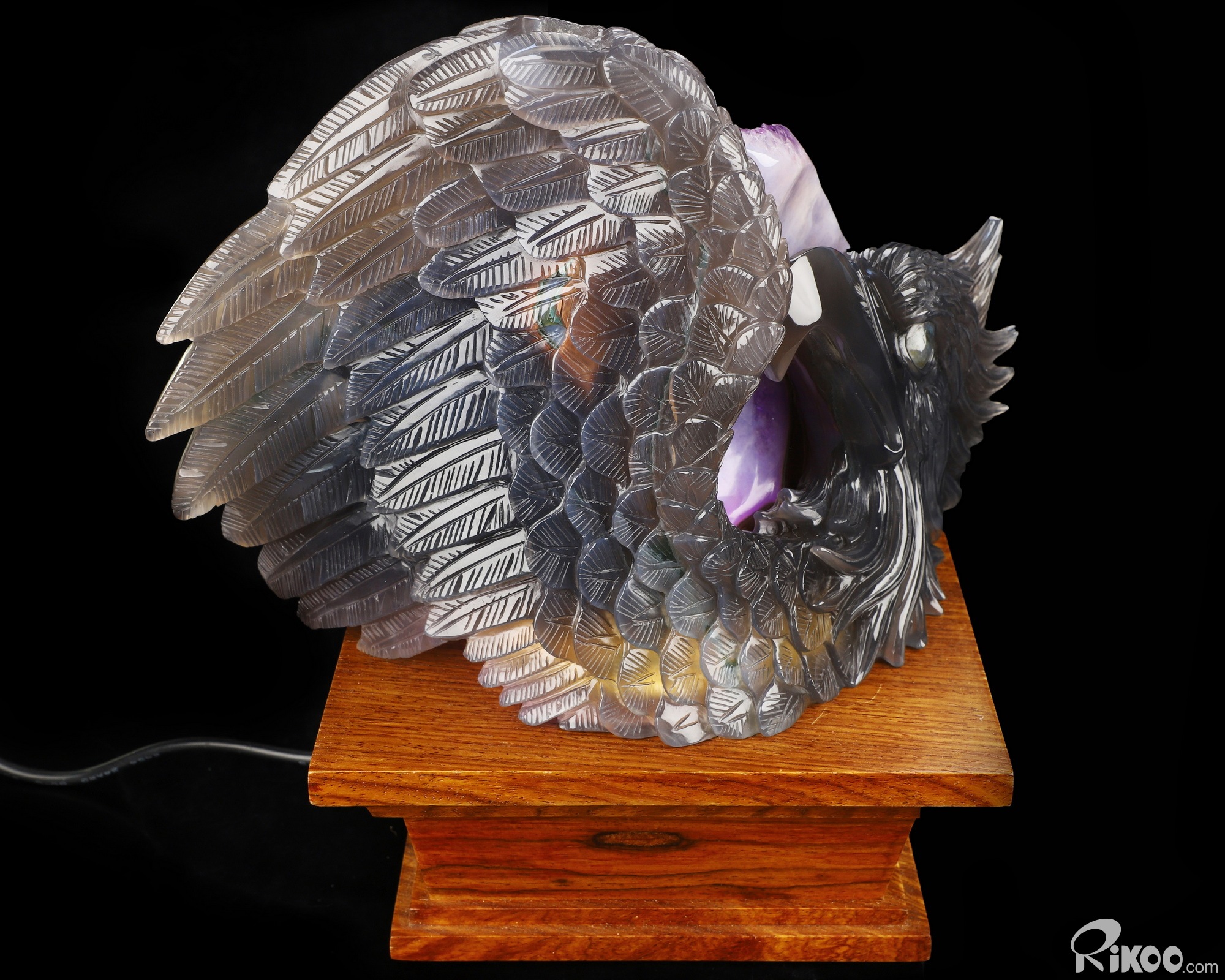 8.4" Agate Amethyst Geode Hand Carved Crystal Eagle Sculpture with LED Stand, Crystal Healing