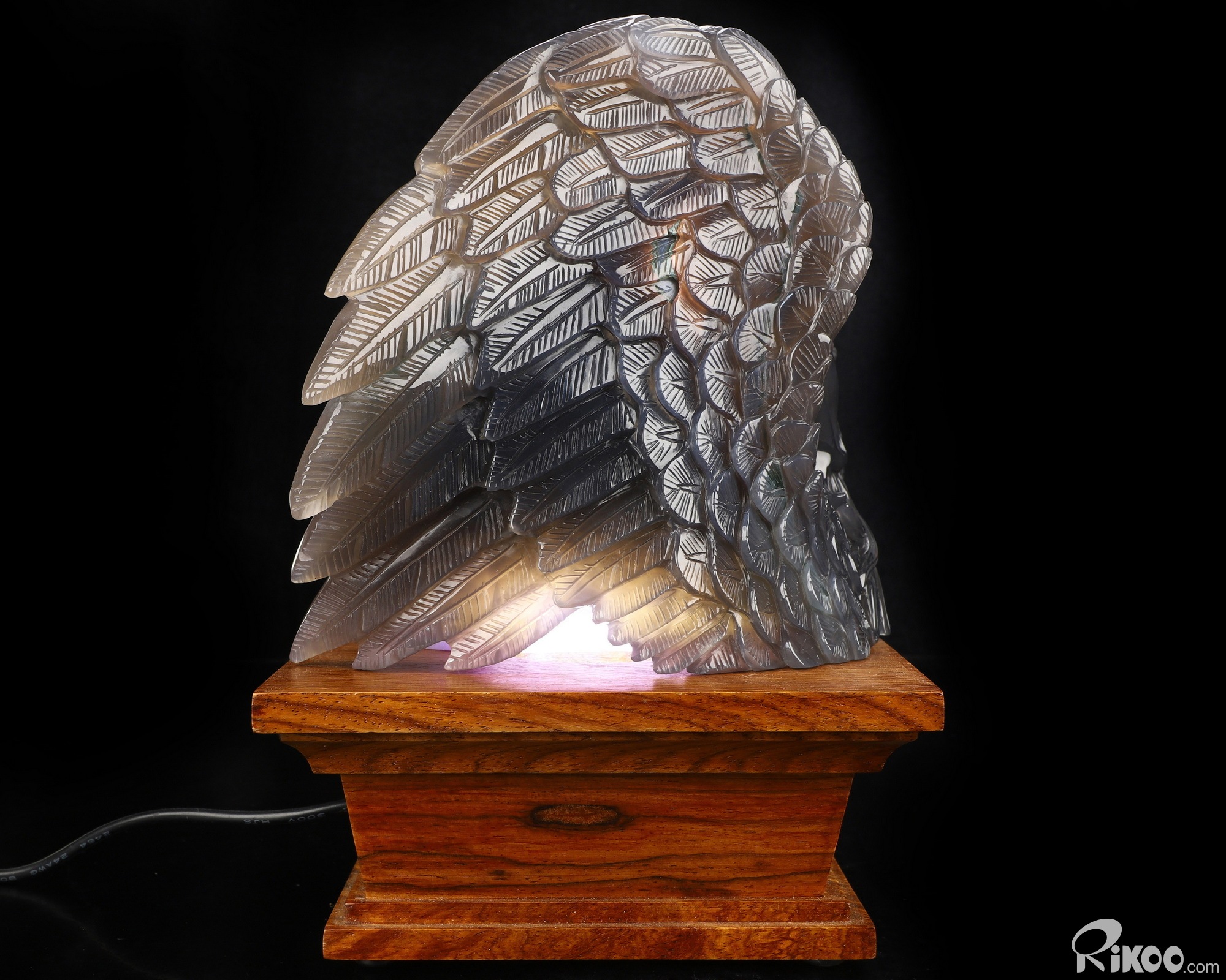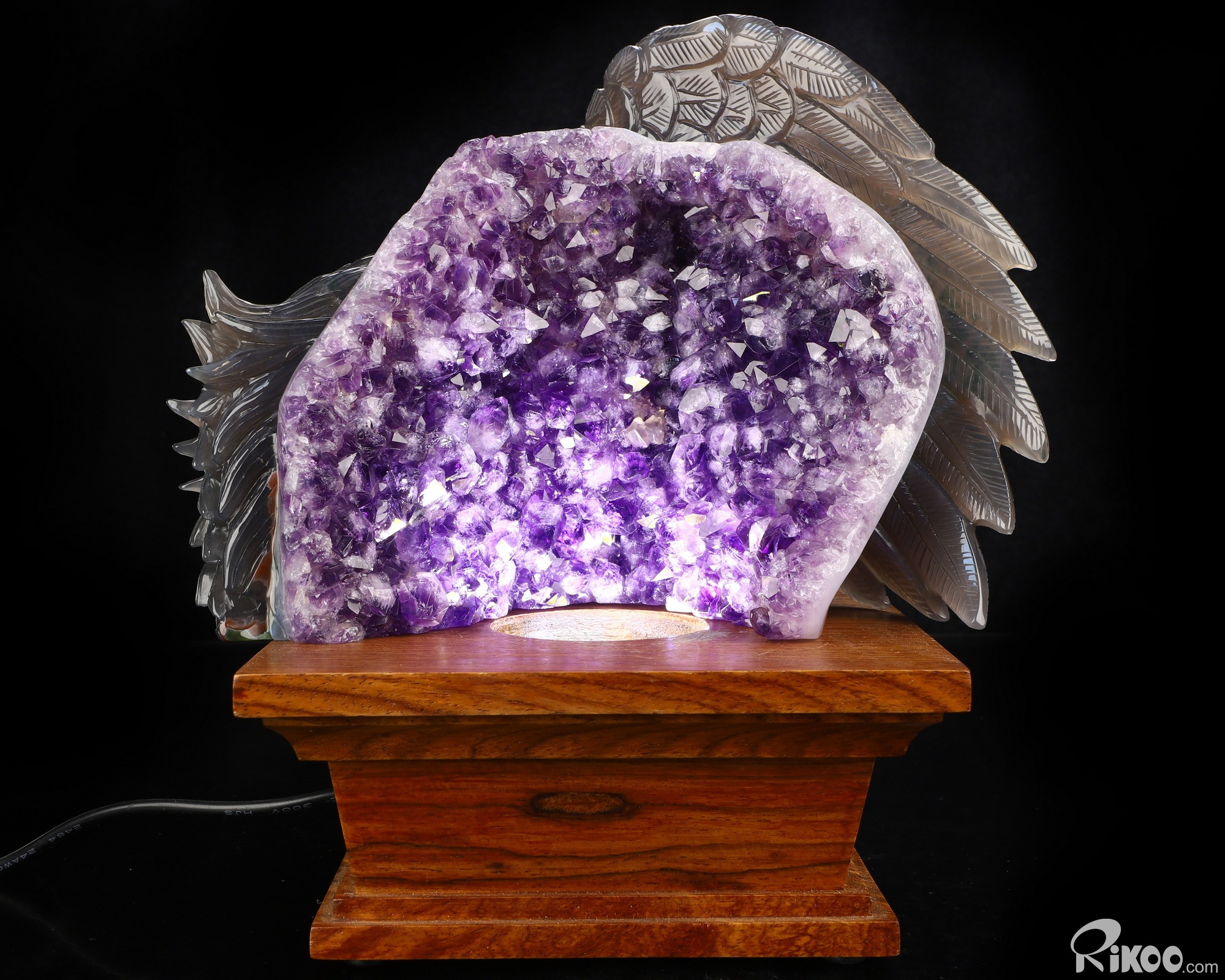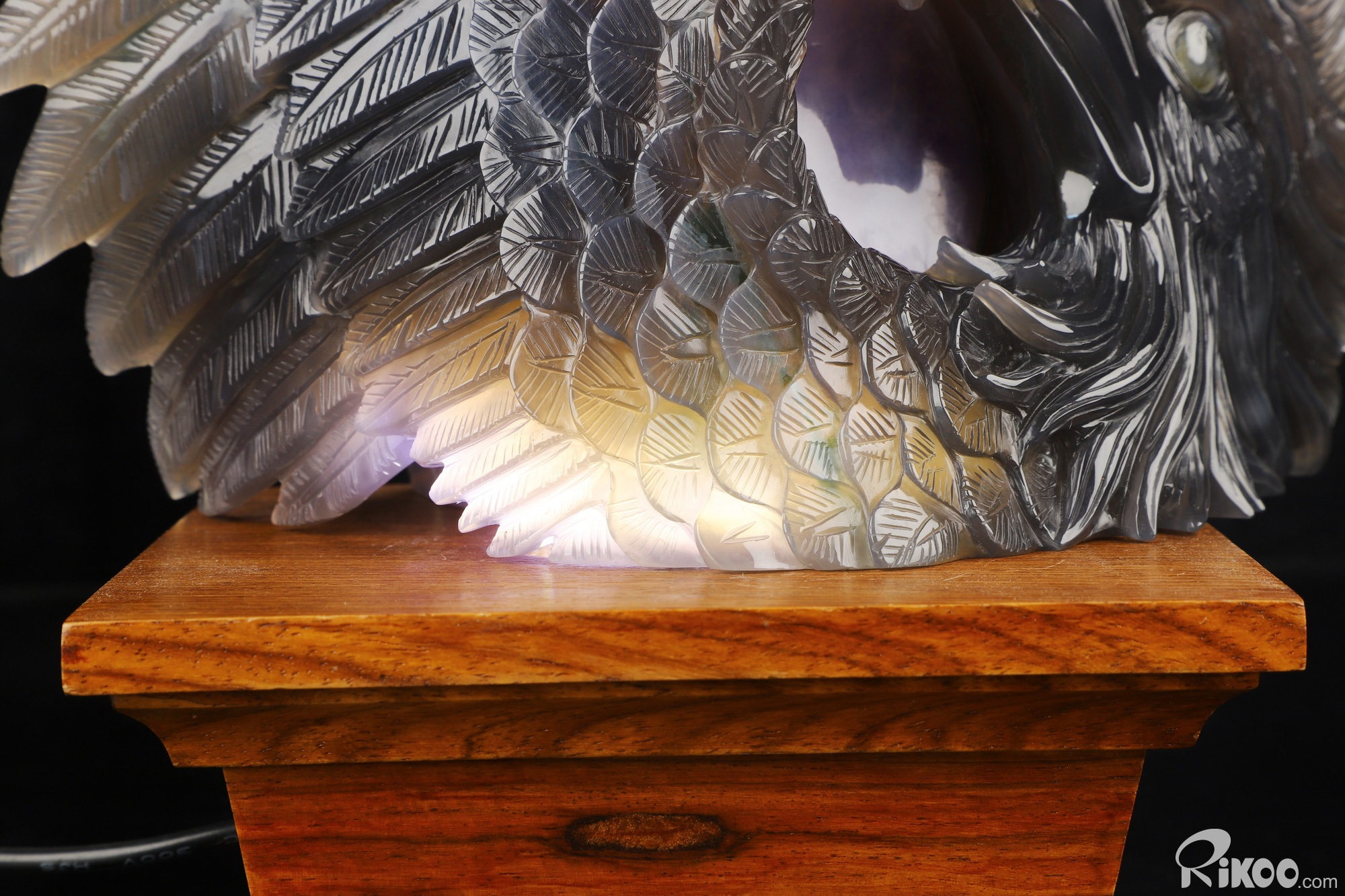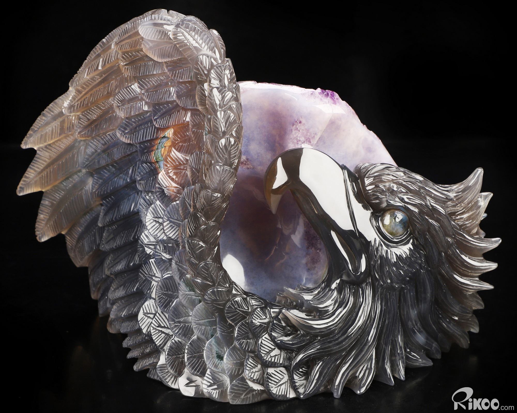 8.4" Agate Amethyst Geode Hand Carved Crystal Eagle Sculpture with LED Stand, Crystal Healing