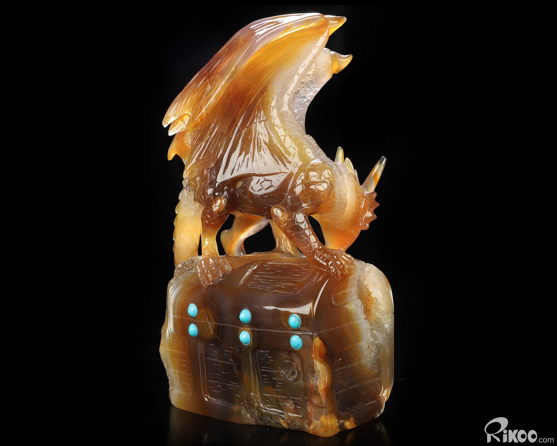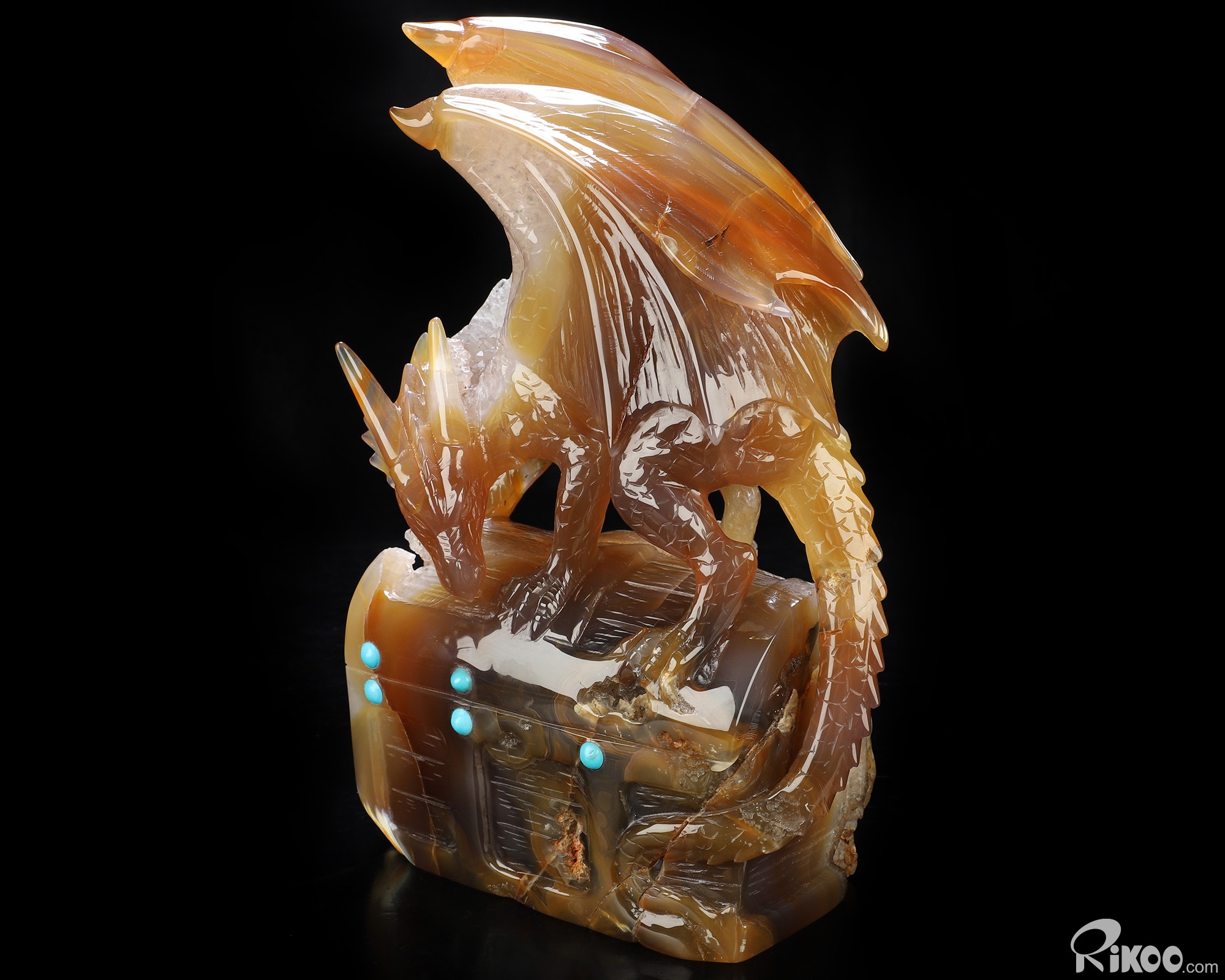 Guardian Dragon Chest, 8.4" Premium Brazilian Agate Hand Carved Crystal Dragon Sculpture, Crystal Healing