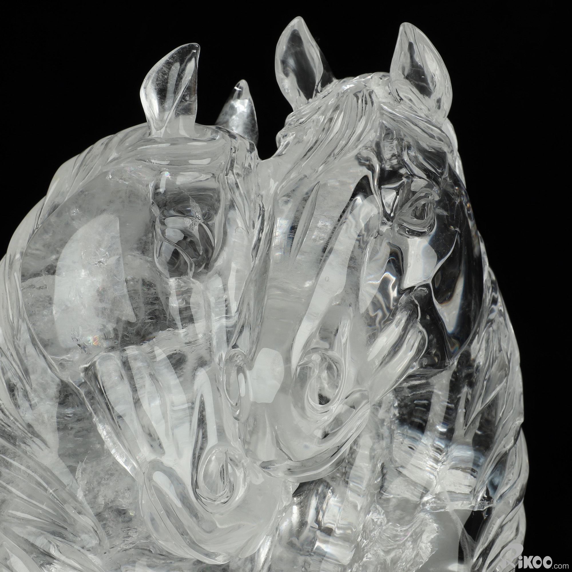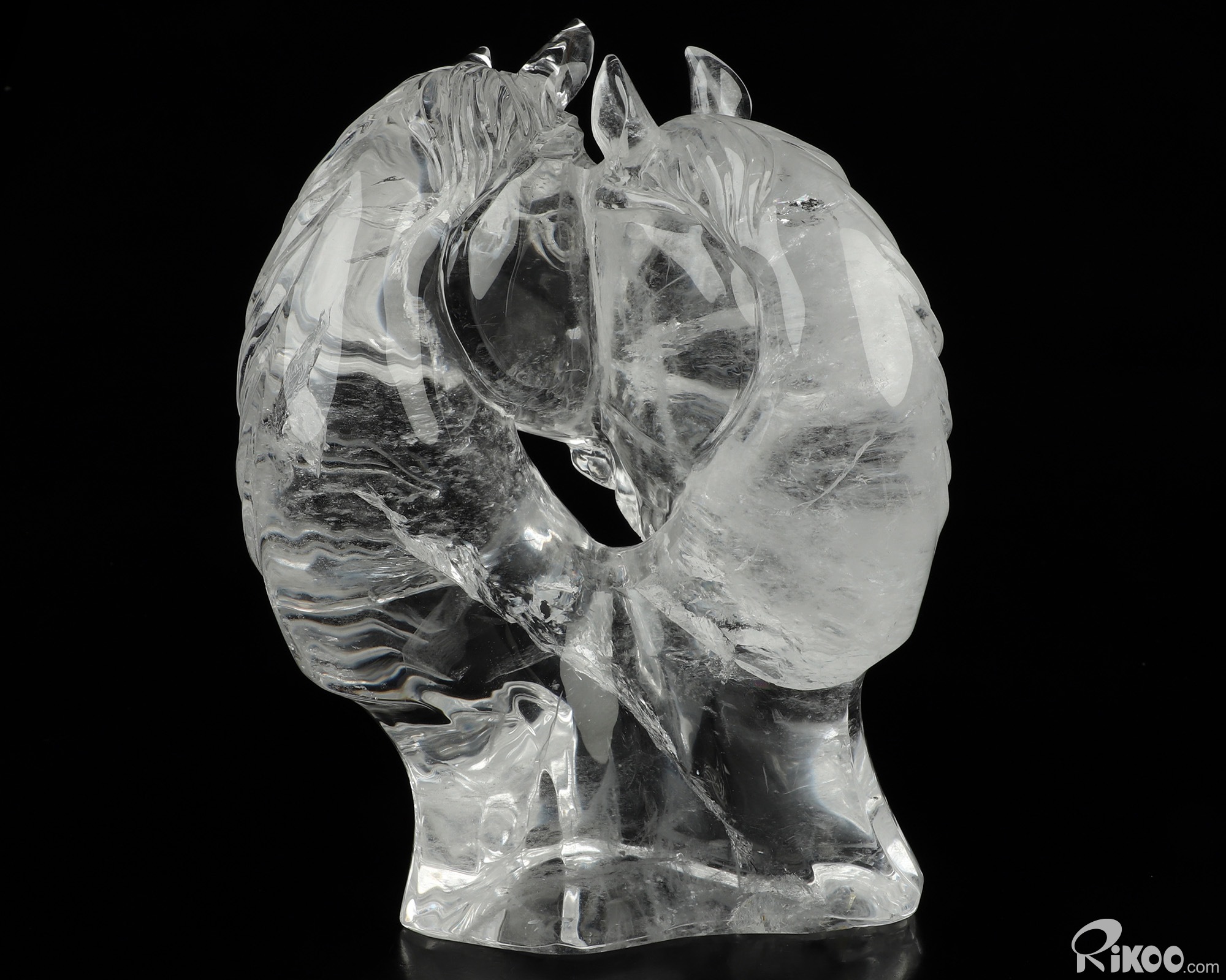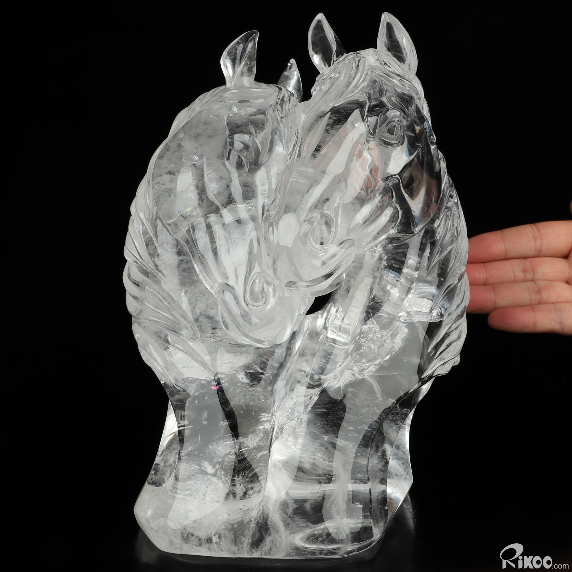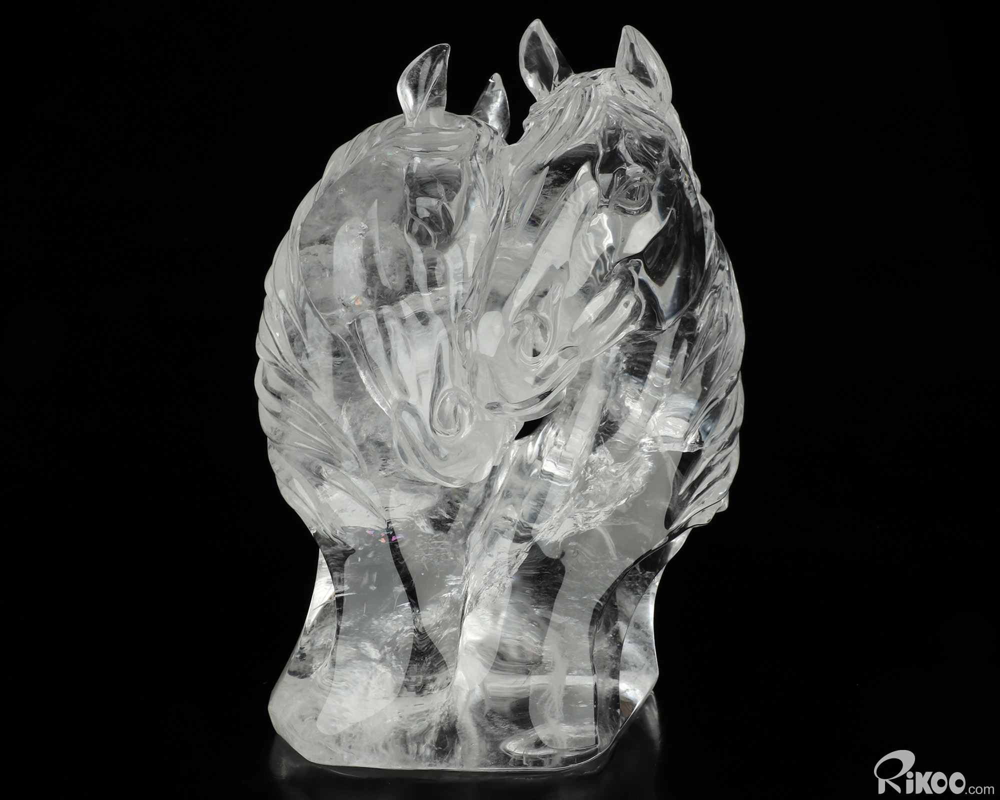 8.4" Quartz Rock Crystal Hand Carved Twin Crystal Horses Sculpture, Crystal Healing