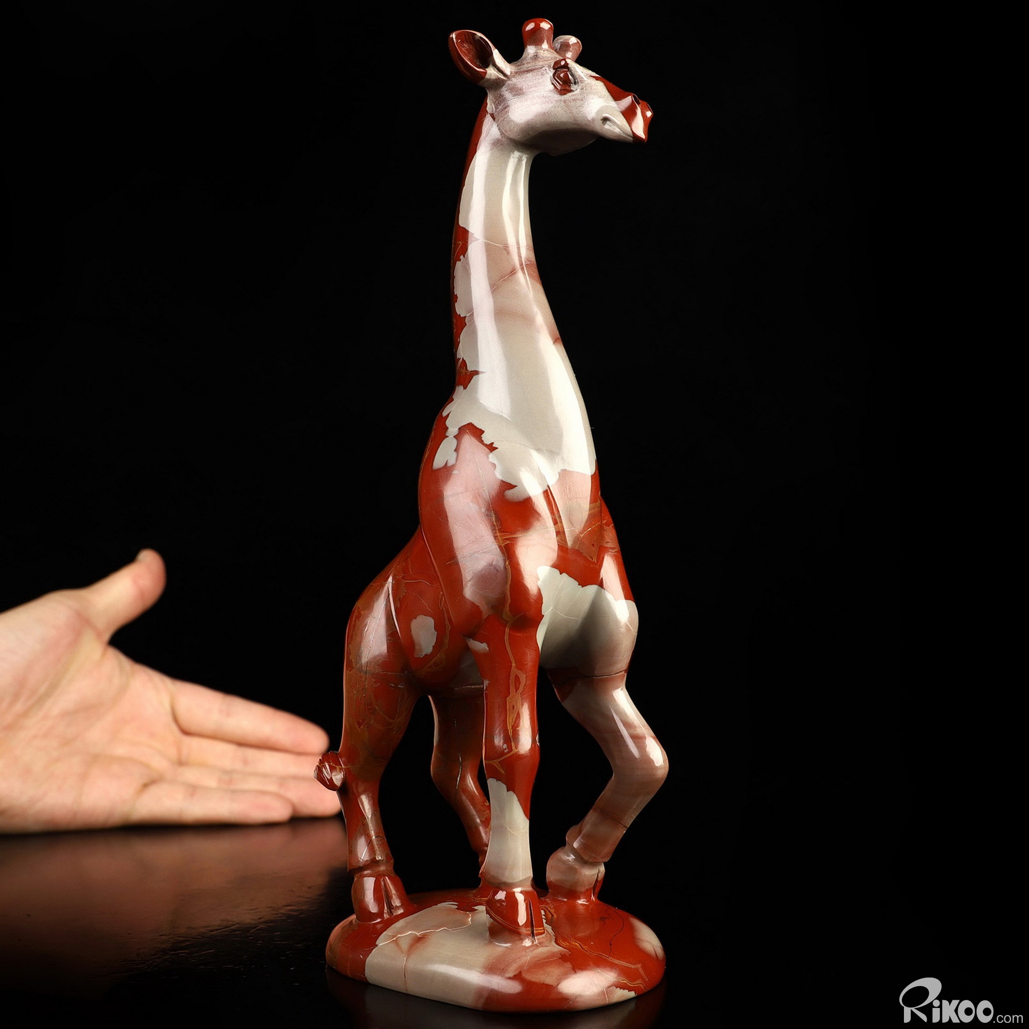 8.4" Red Noreena Jasper Hand Carved Crystal Giraffe Sculpture, Crystal Healing