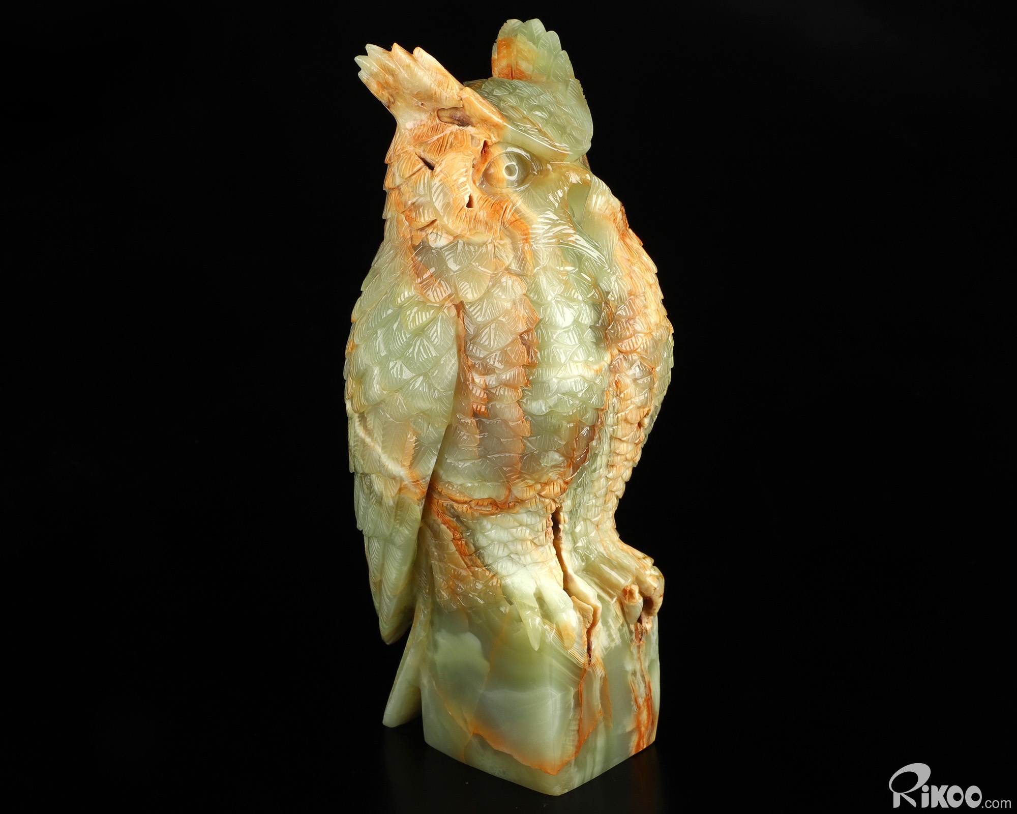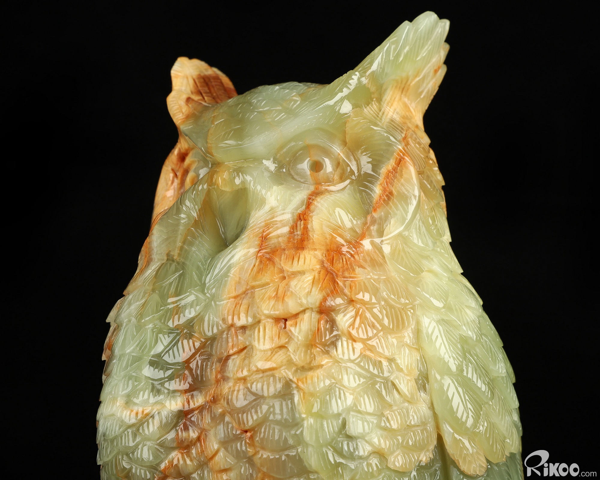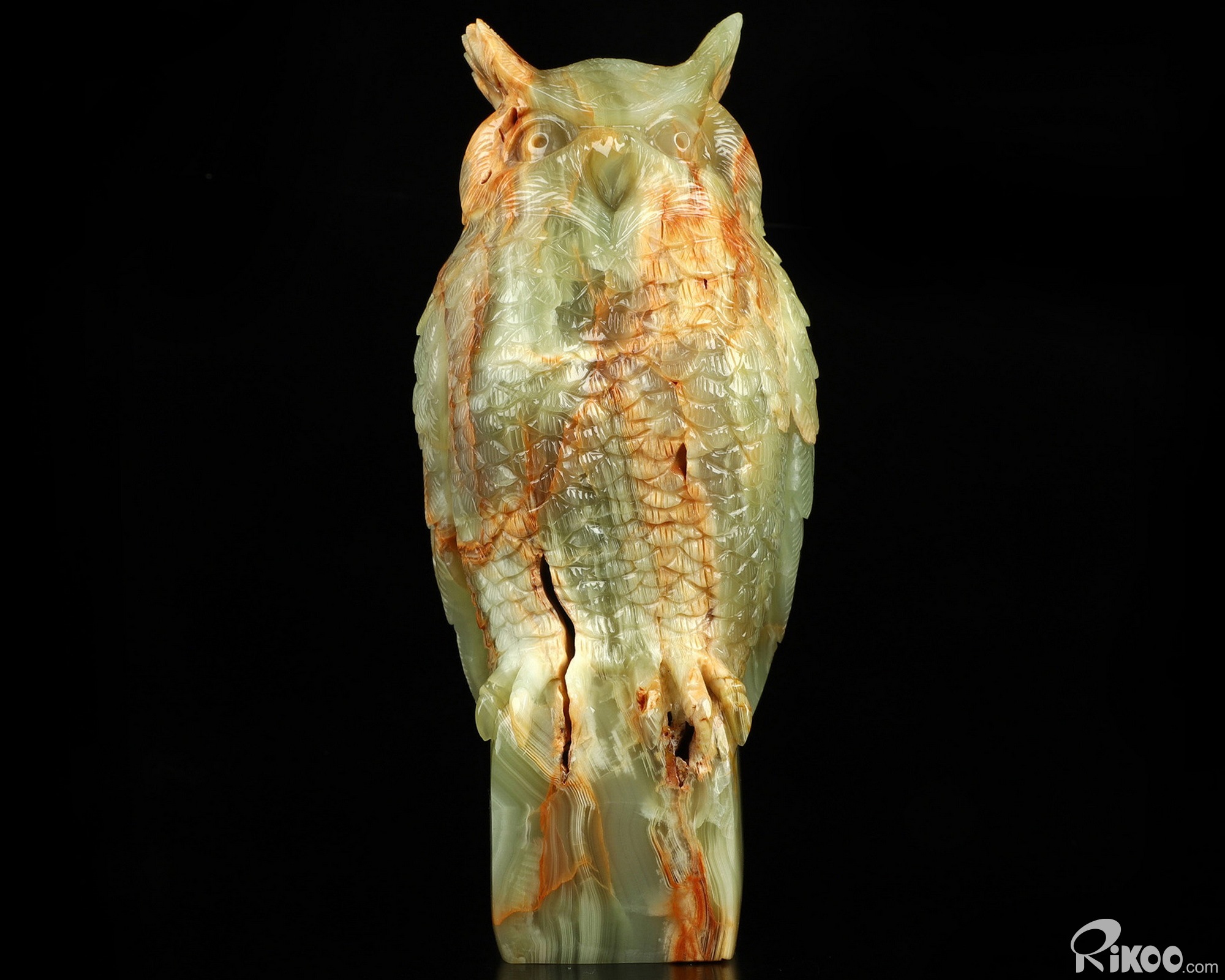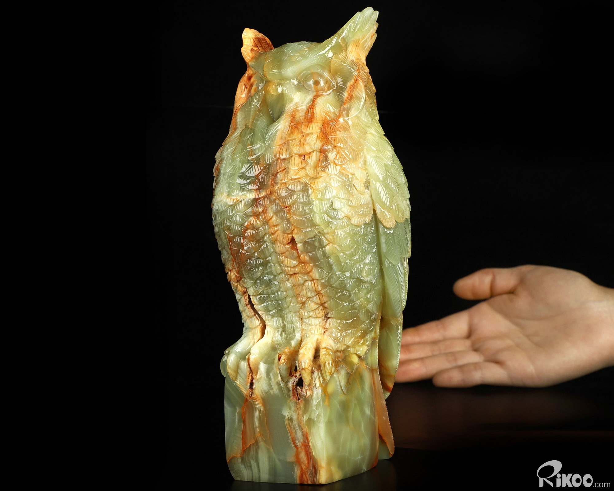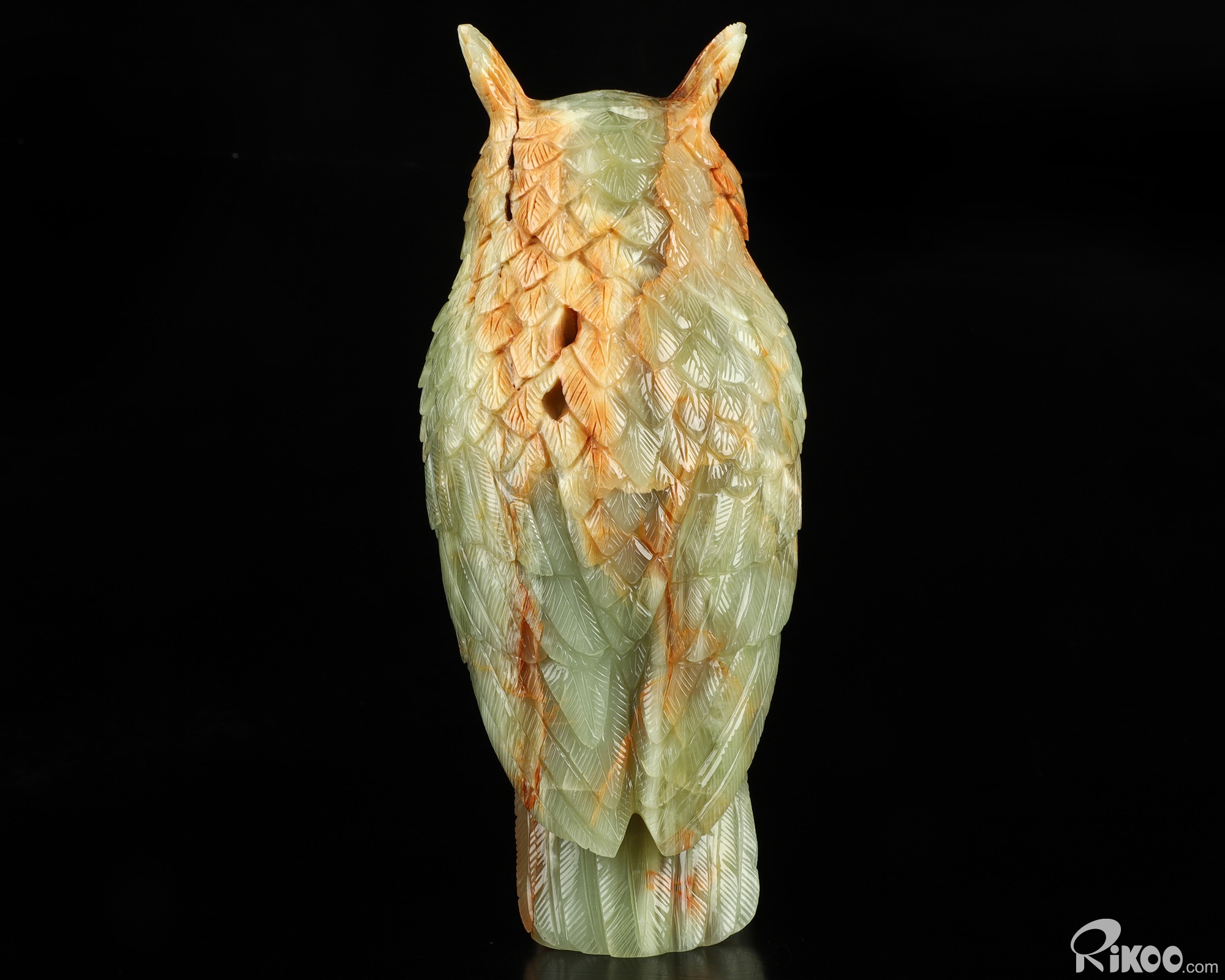 You are looking at an Afghanistan Jade owl. The owl is 8.5 inches long from top to bottom.