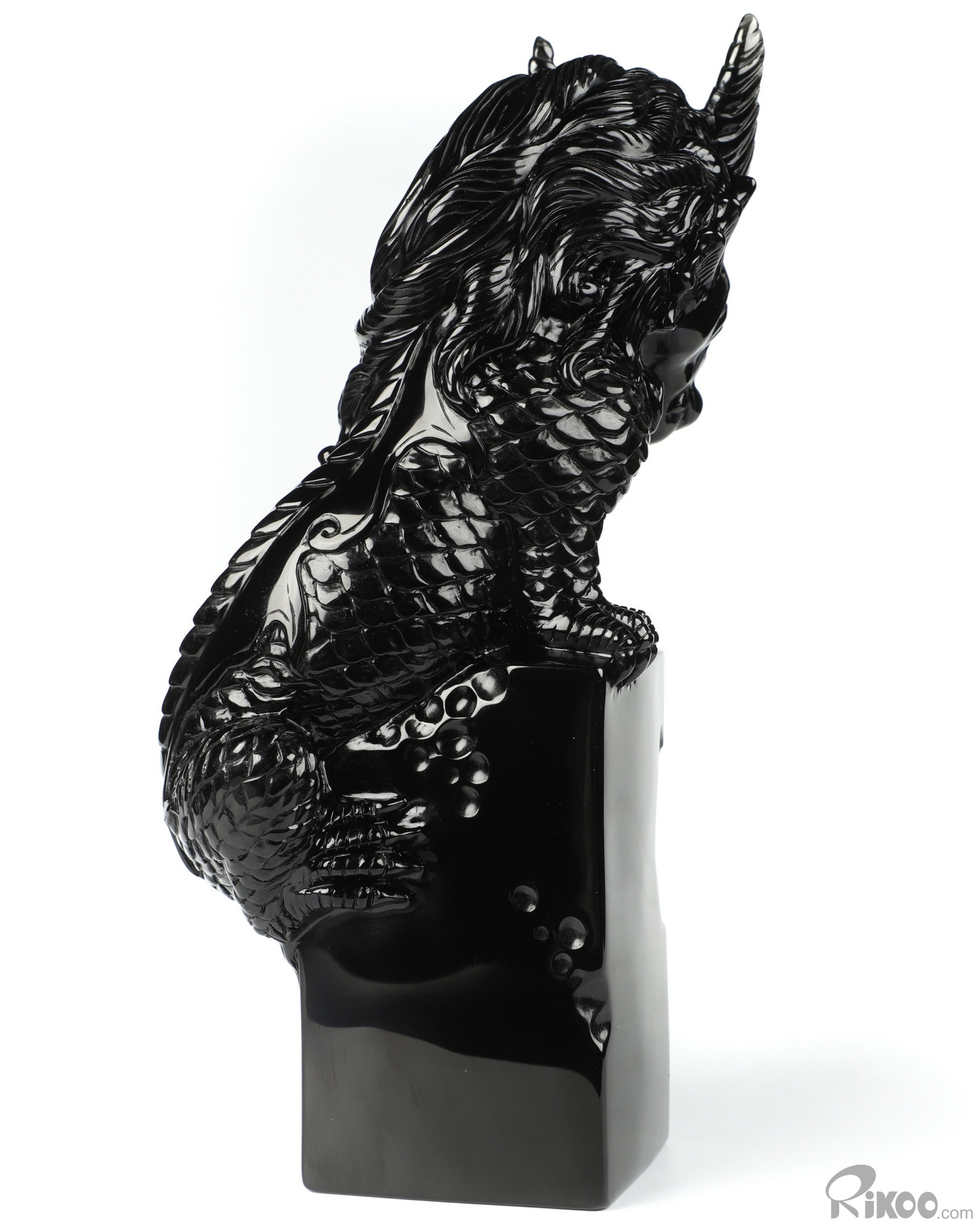 8.5" Black Obsidian Carved Crystal Eastern Dragon, Crystal Healing