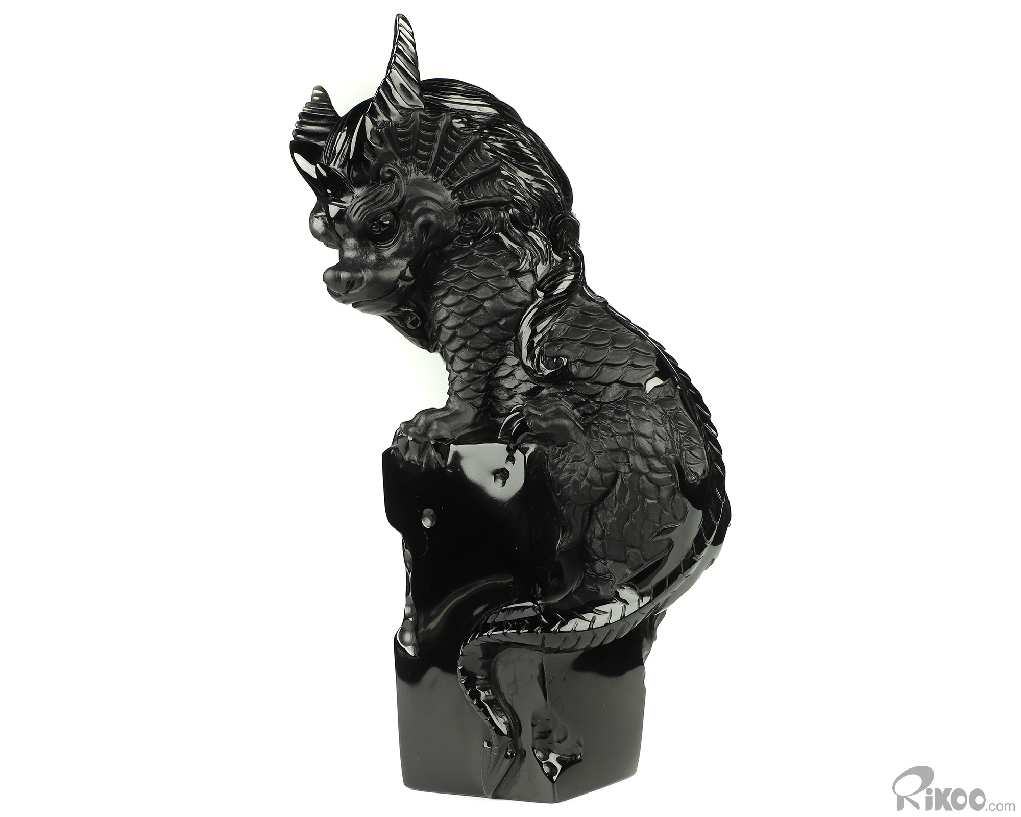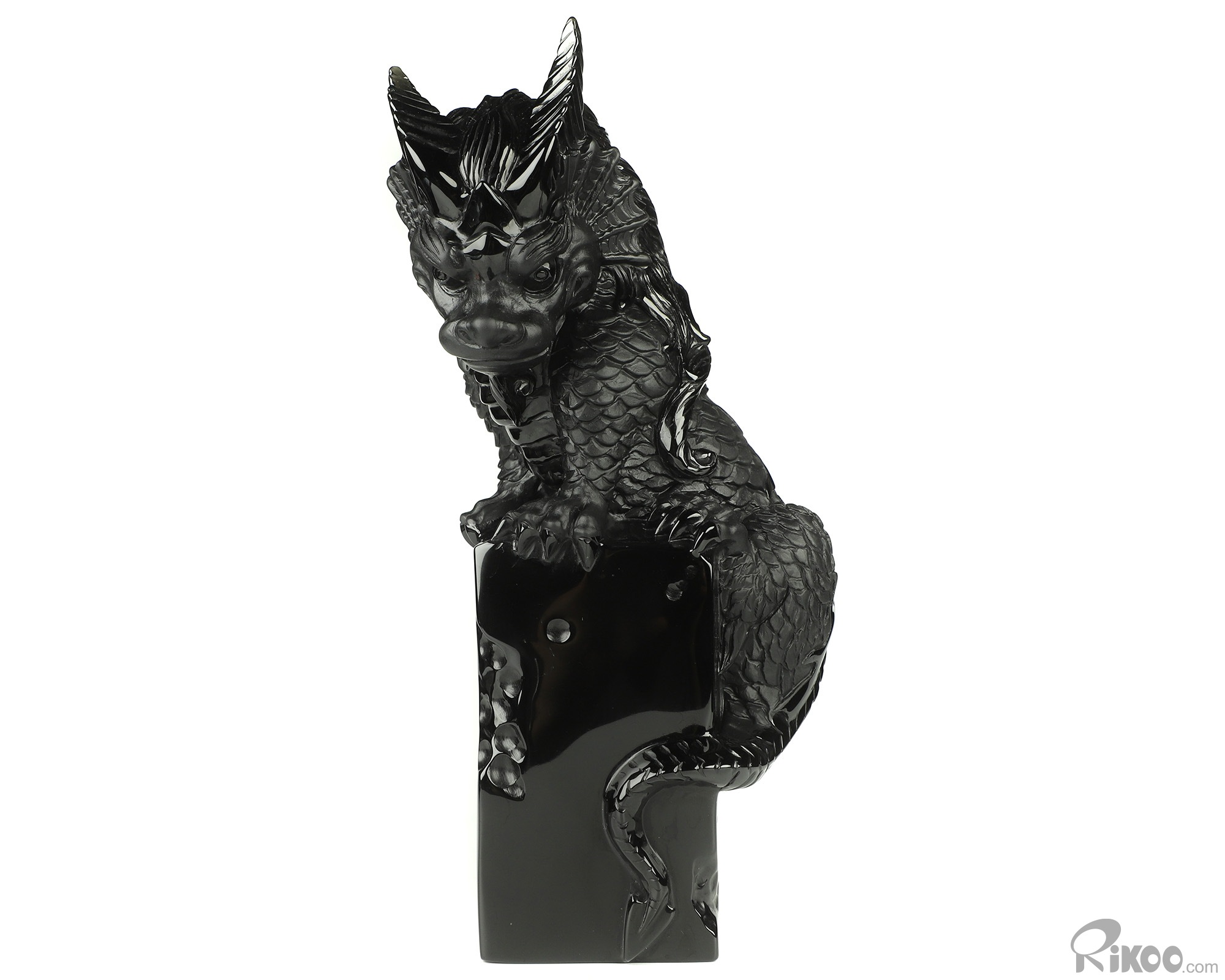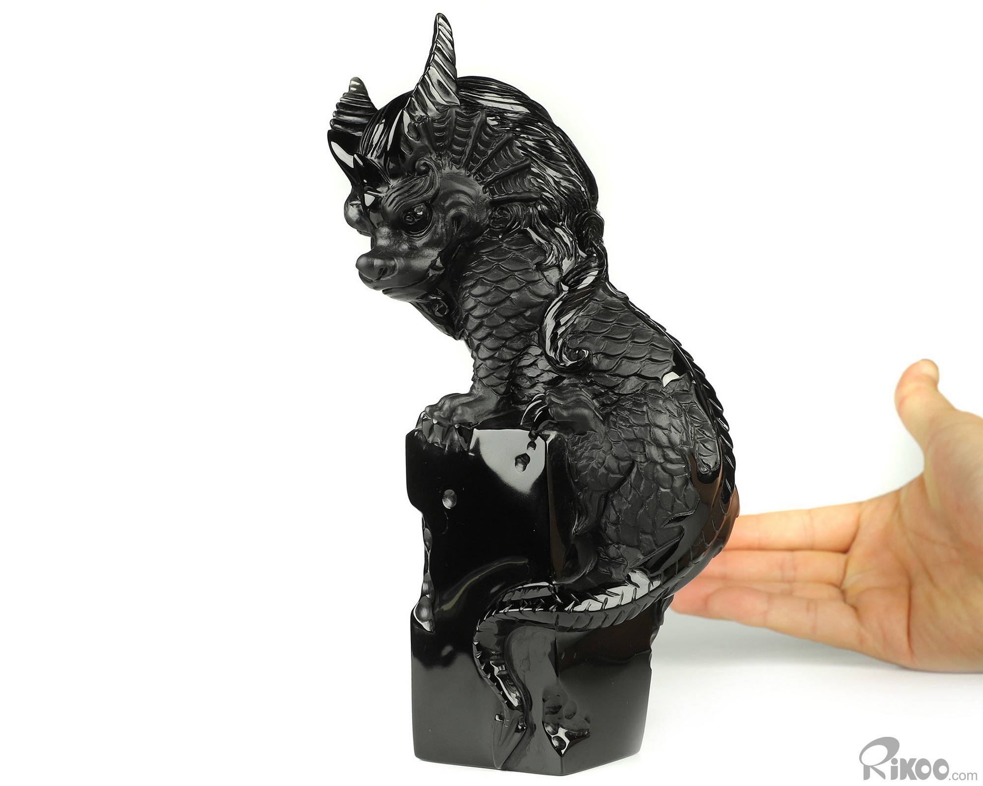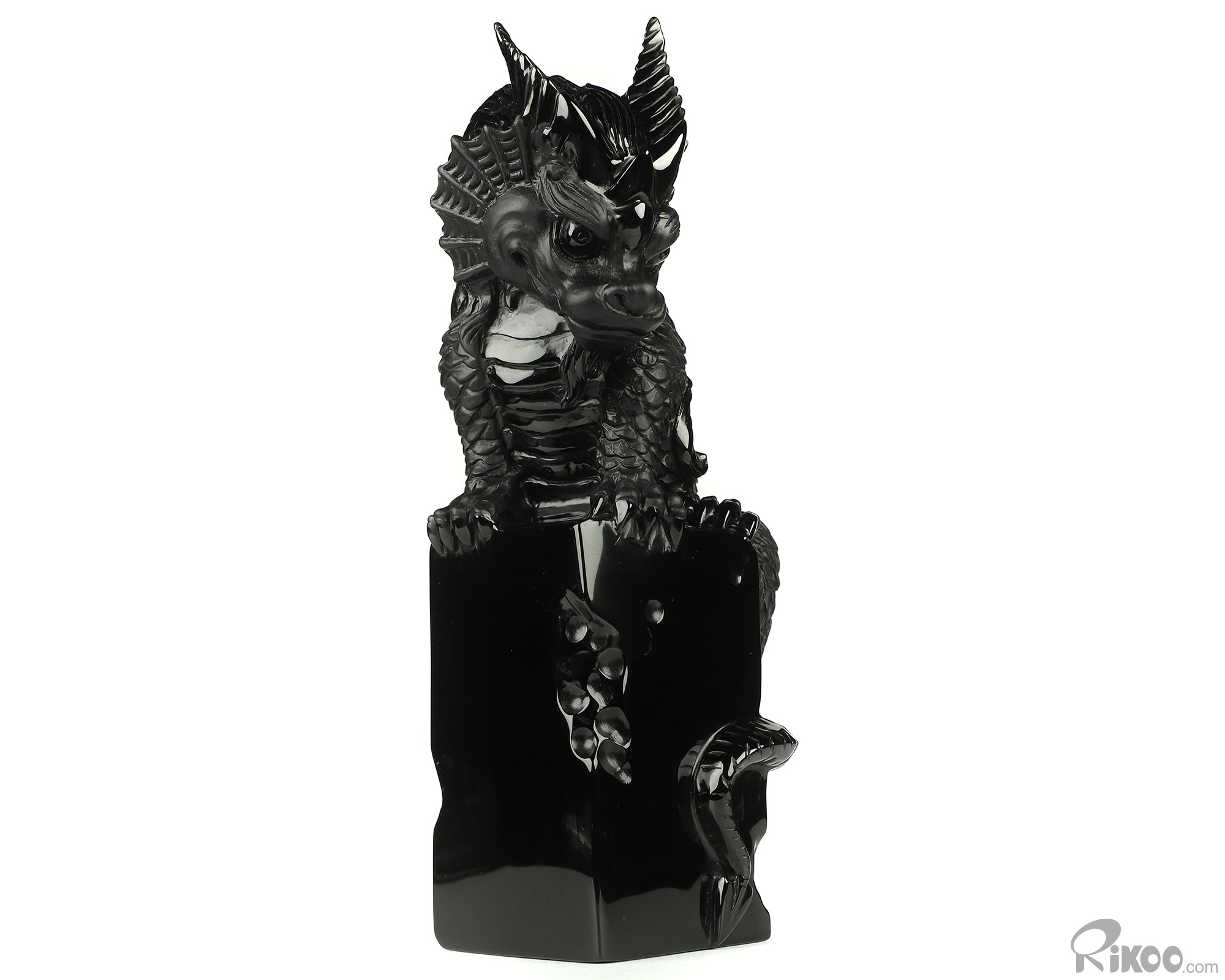 You are looking at a Black Obsidian dragon. The dragon is 8.5 inches long from top to bottom.