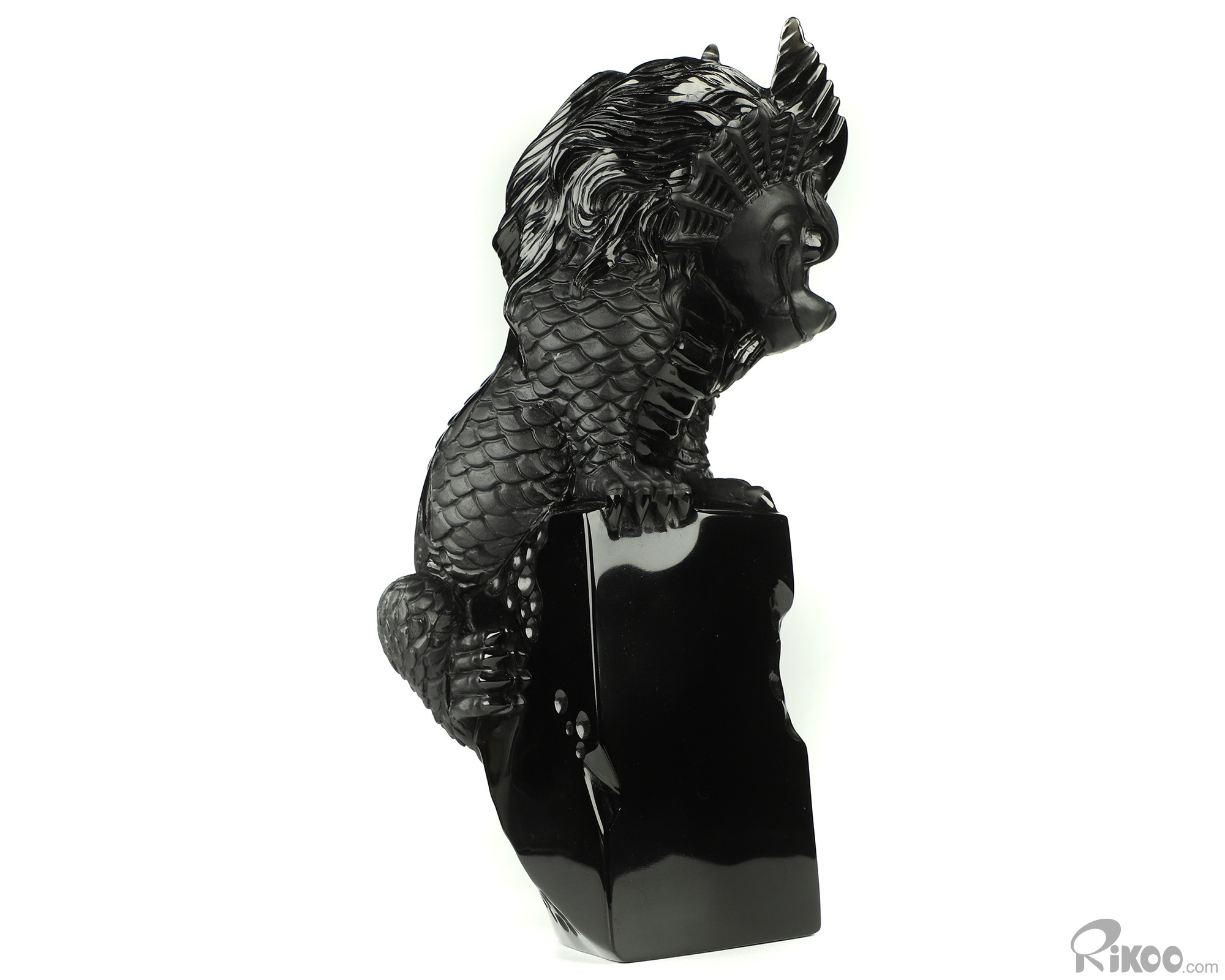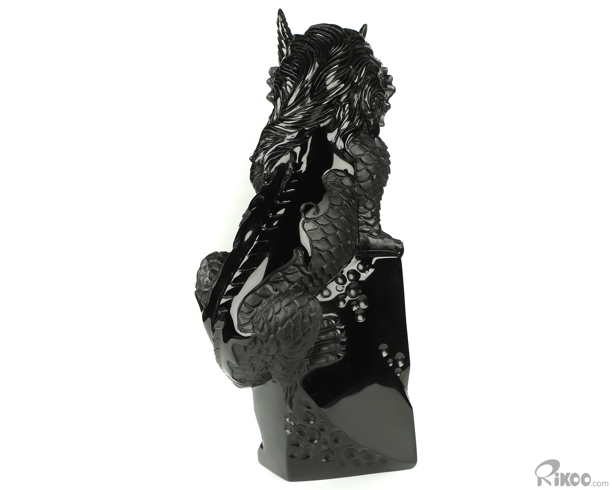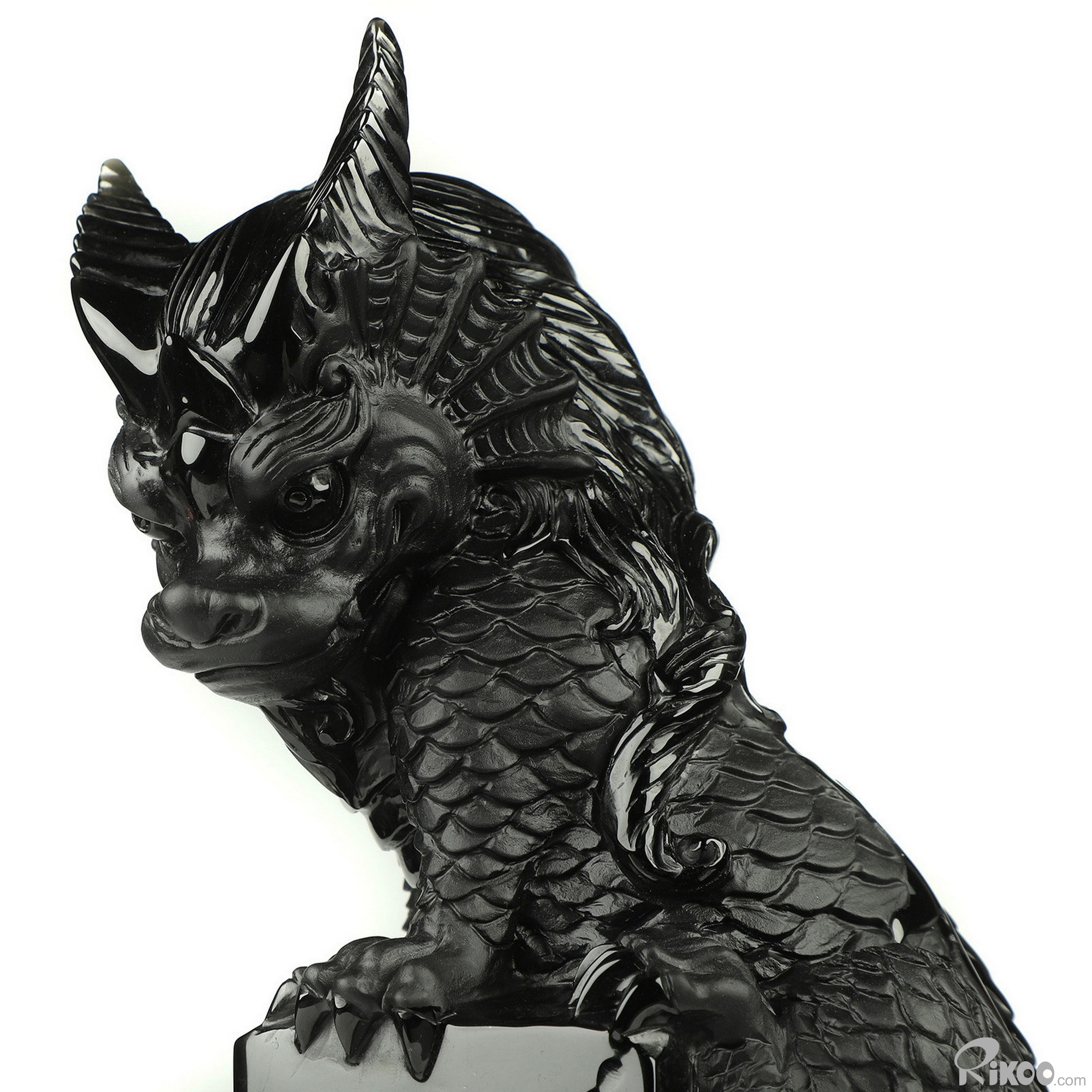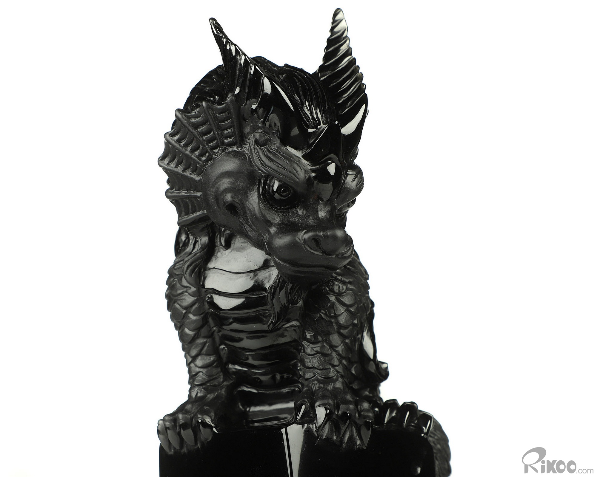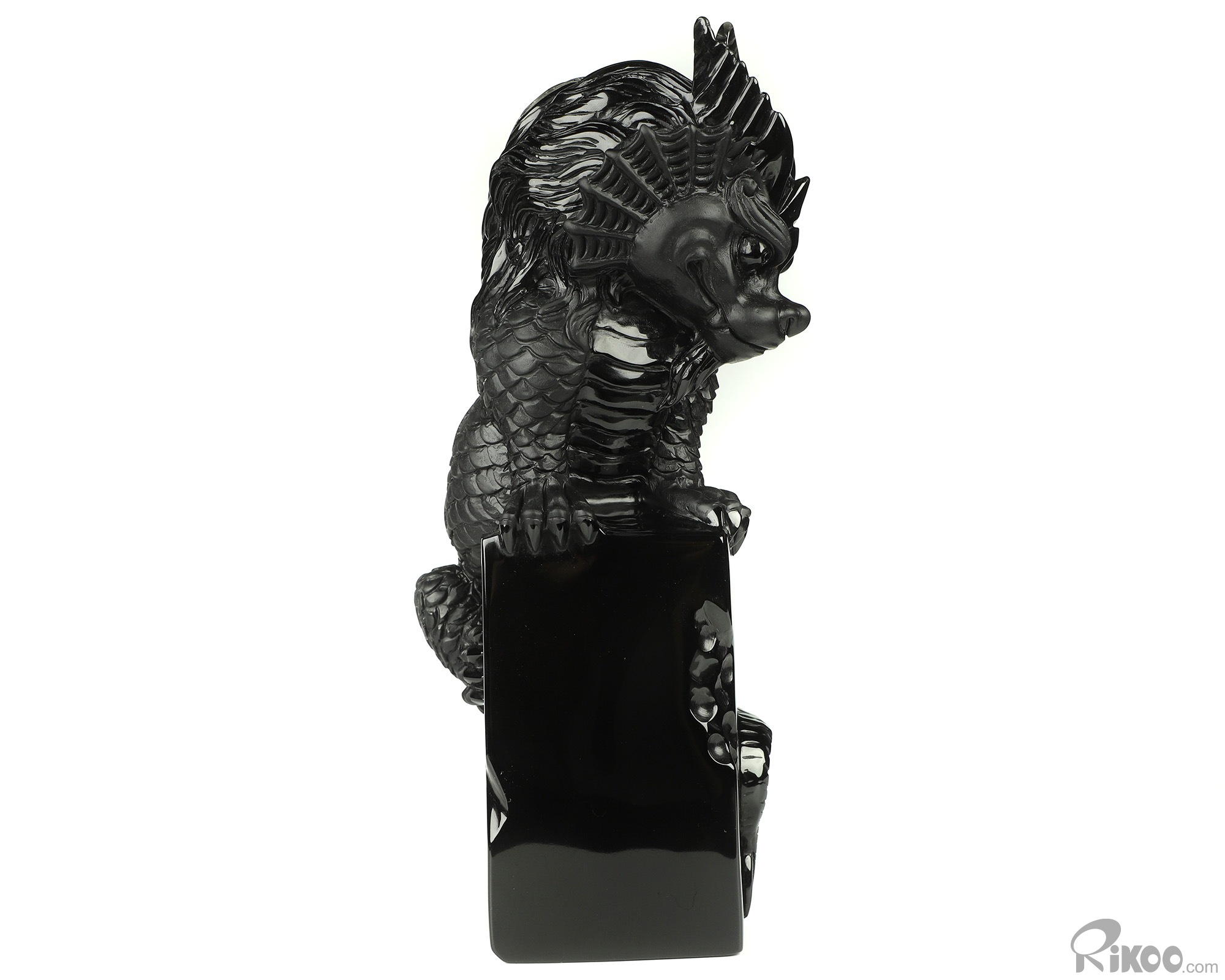 You are looking at a Black Obsidian dragon. The dragon is 8.5 inches long from top to bottom.