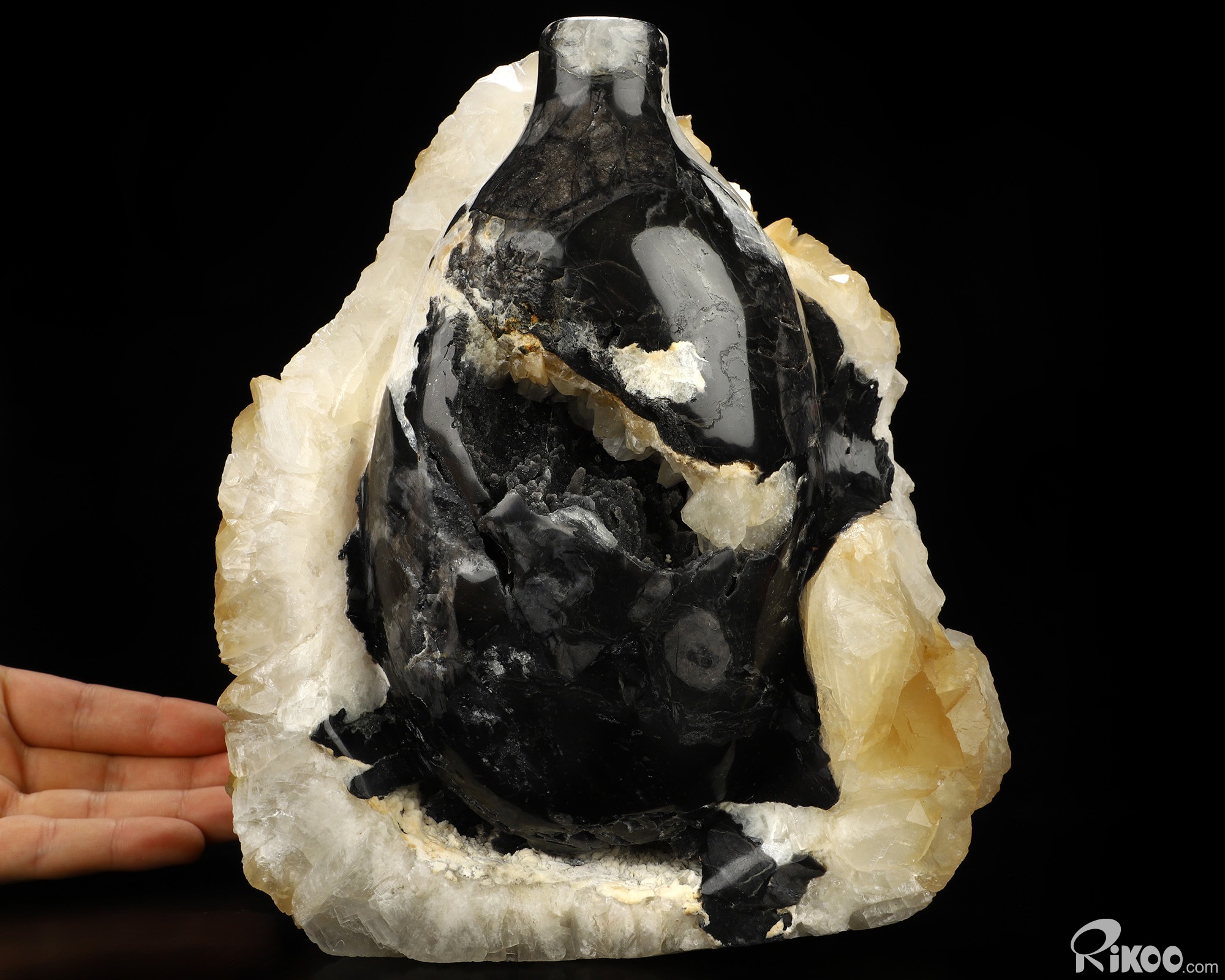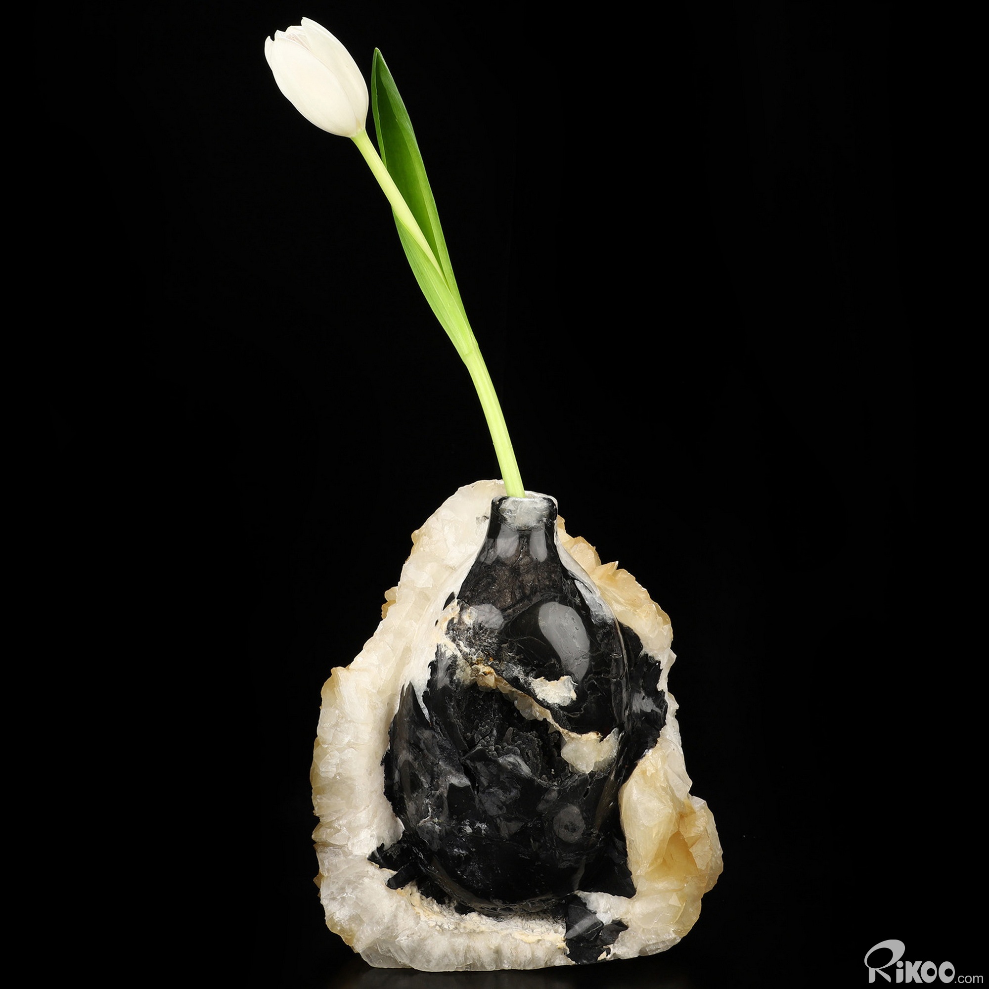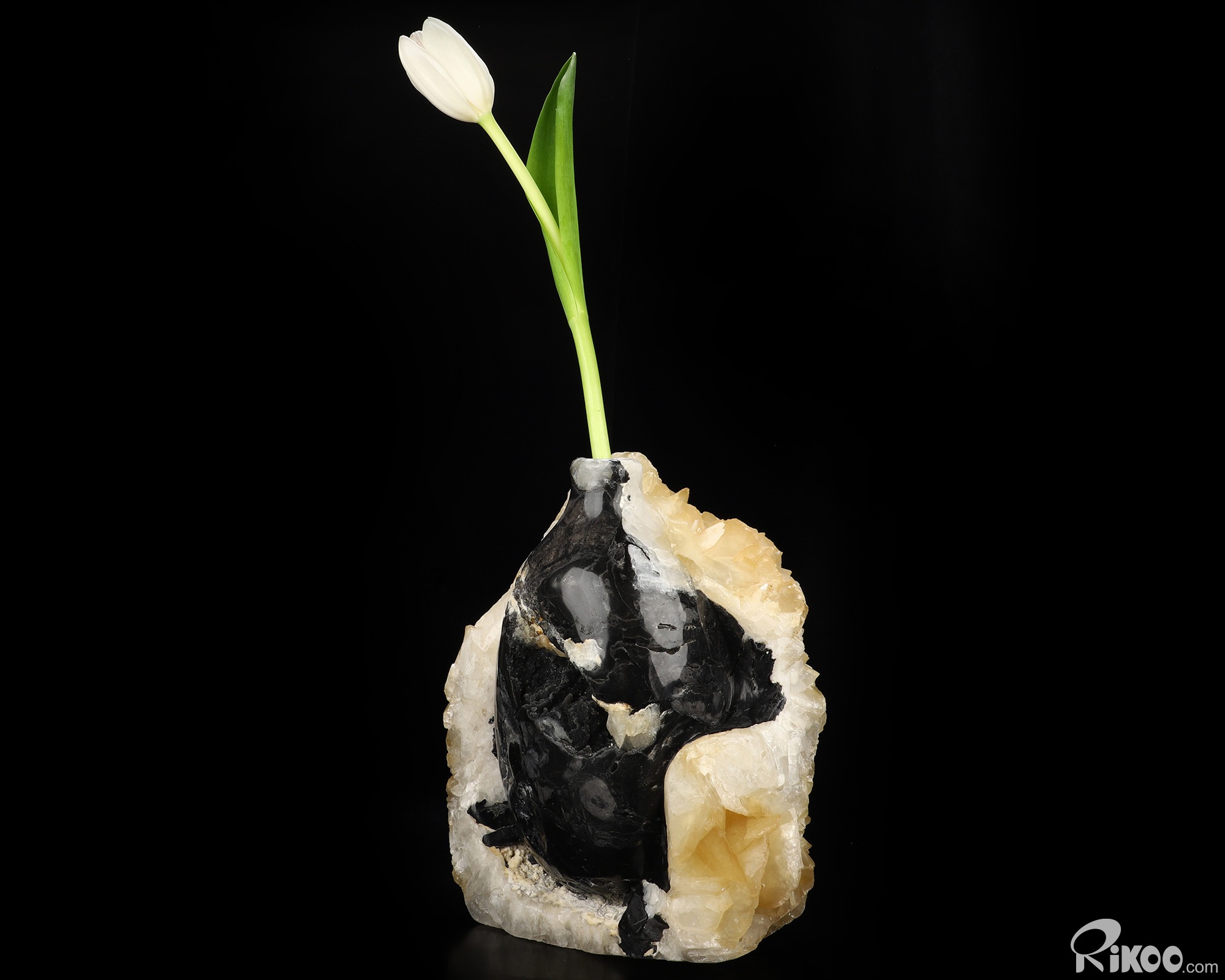 This vase with limited functionality is mainly for display.Abundant crystal that comes in shades of white, gray, black, green, yellow, blue, brown, or red. Beneficial for the cleansing organs, bones, joints, and for sharpening mental clarity. Helps boost memory. Helps one draw more insight from books or personal experience by making important information easier to remember. Soft. Athletes use Calcite because they feel it can aid the bones and joints that are stressed or injured during practice or competition. Calcite is strongly recommended for those involved in the healing professions.