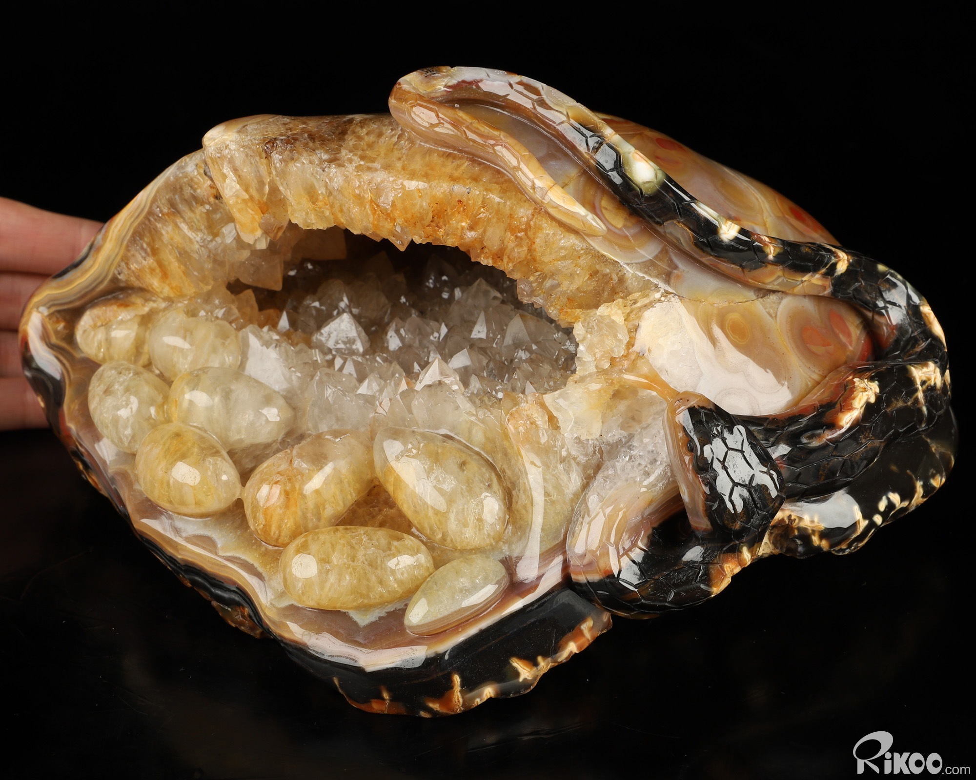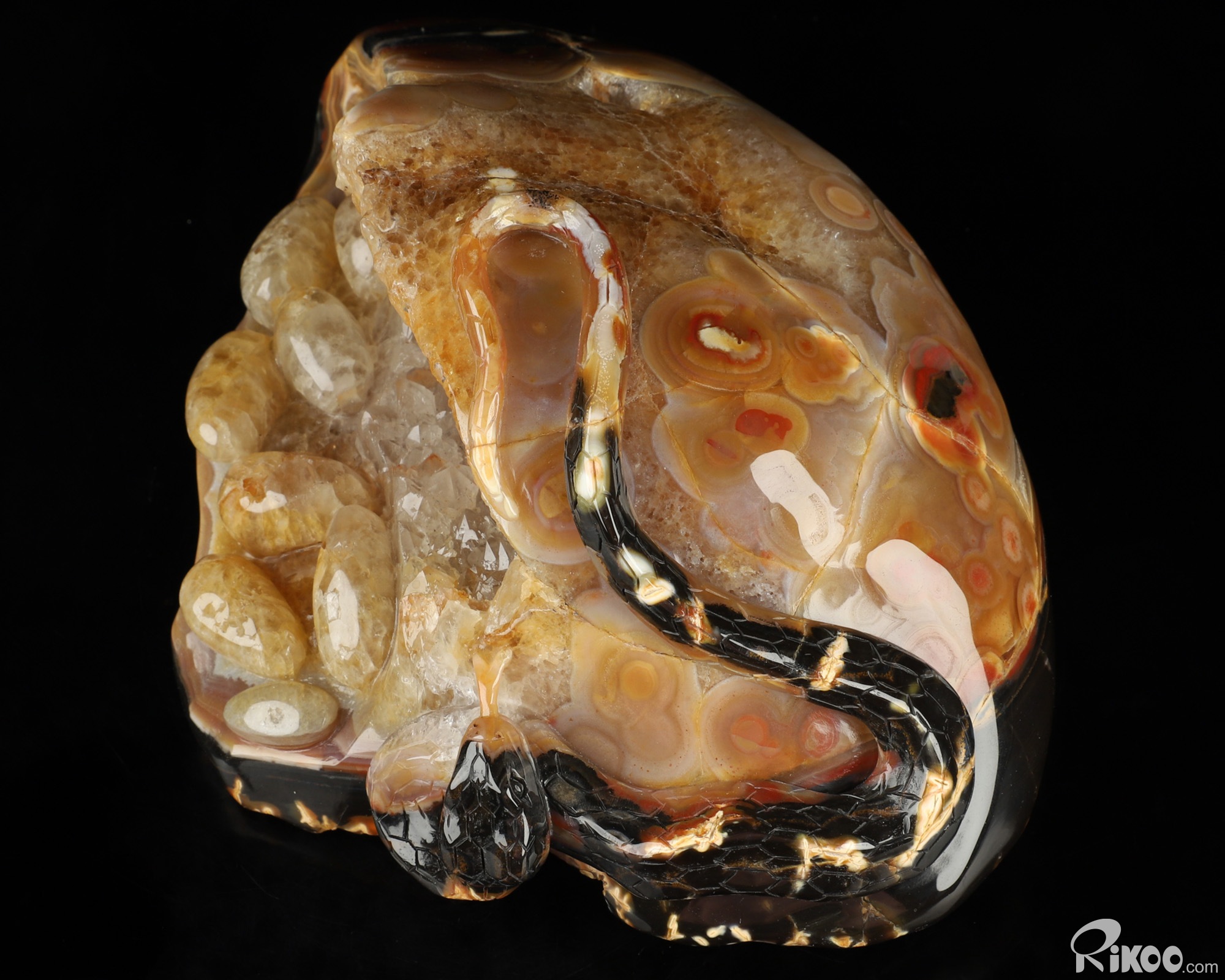 8.5" Premium Brazilian Agate Hand Carved Crystal Snake Sculpture, Crystal Healing