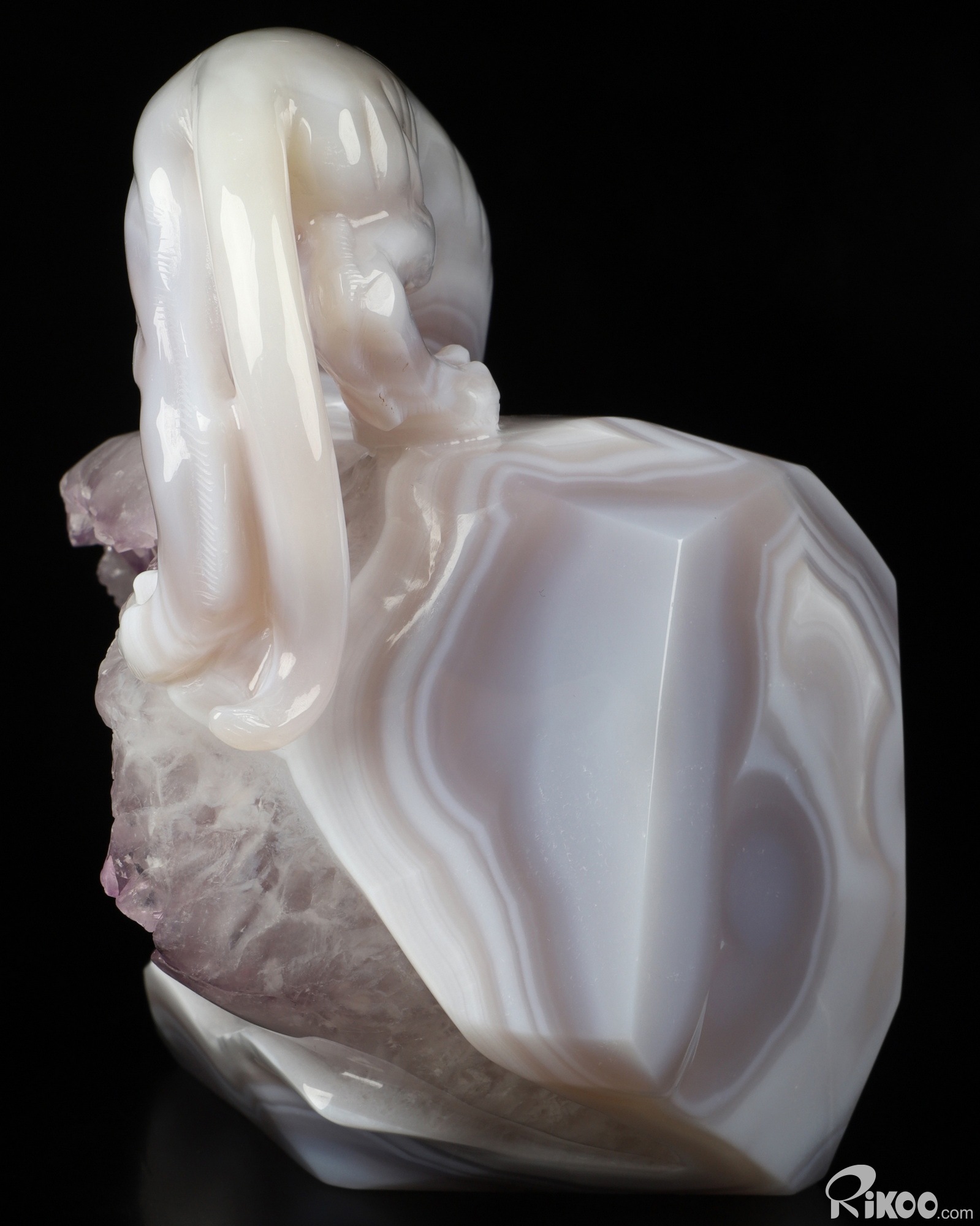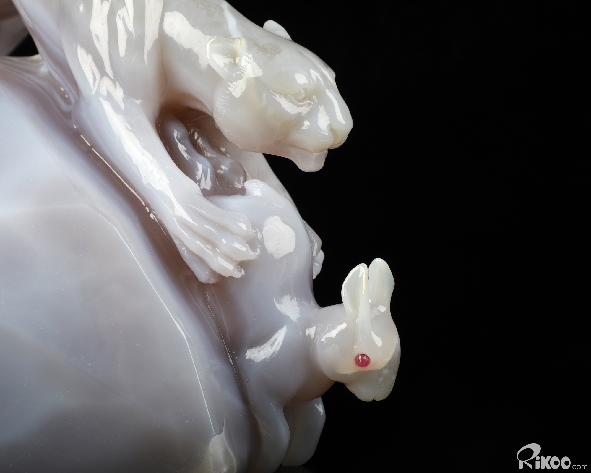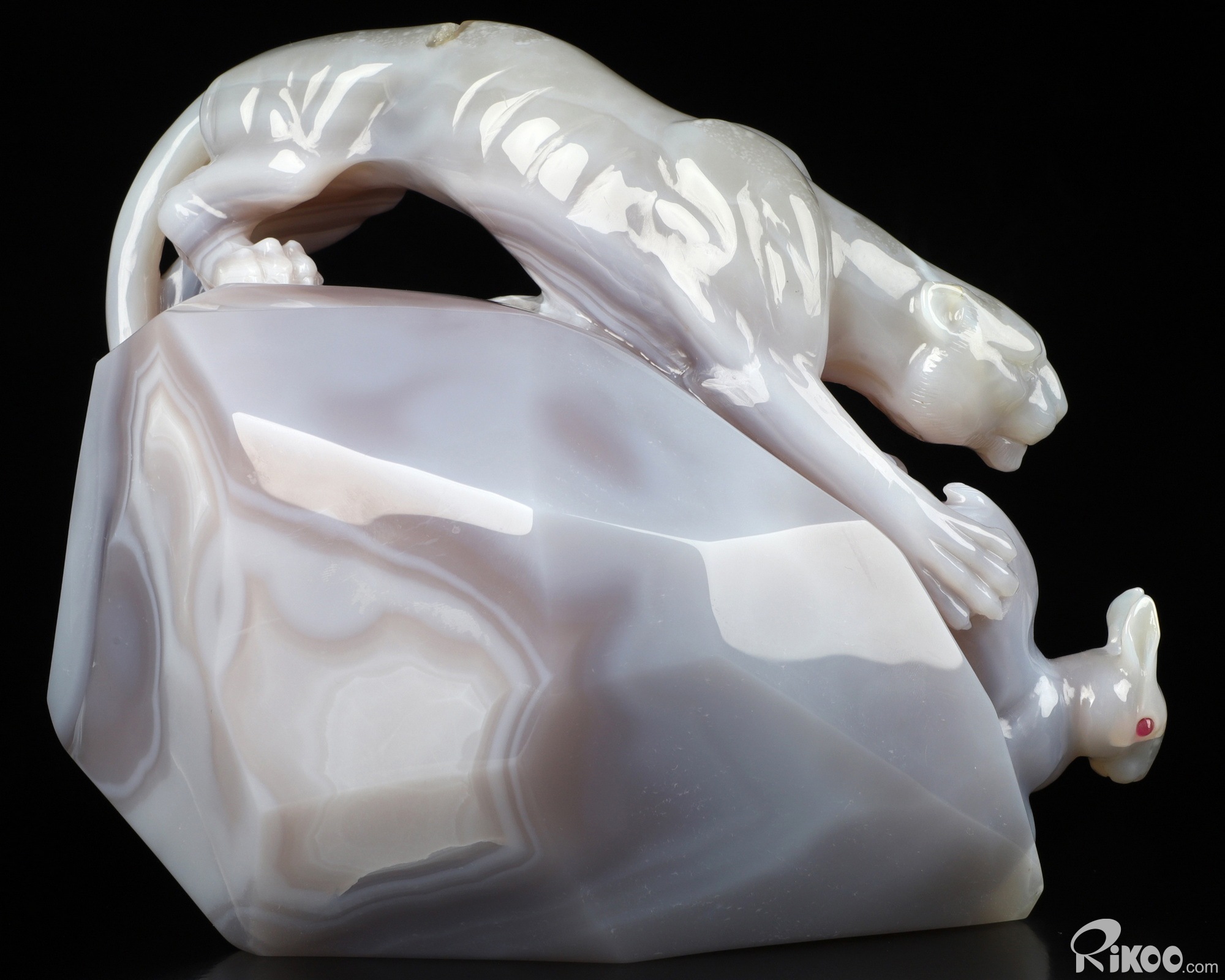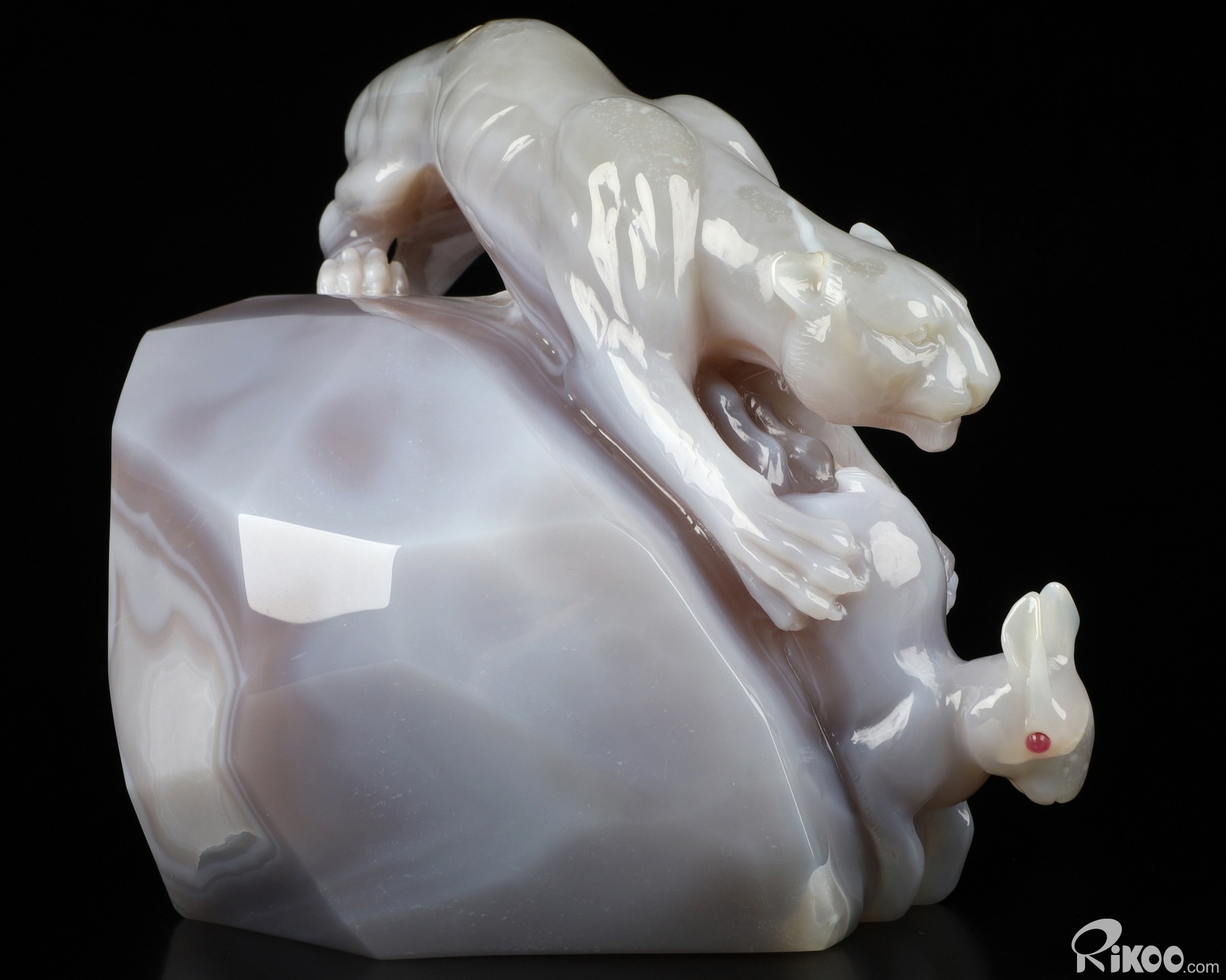 8.6" Agate Amethyst Geode Hand Carved Crystal Leopard and Rabbit Sculpture, Crystal Healing