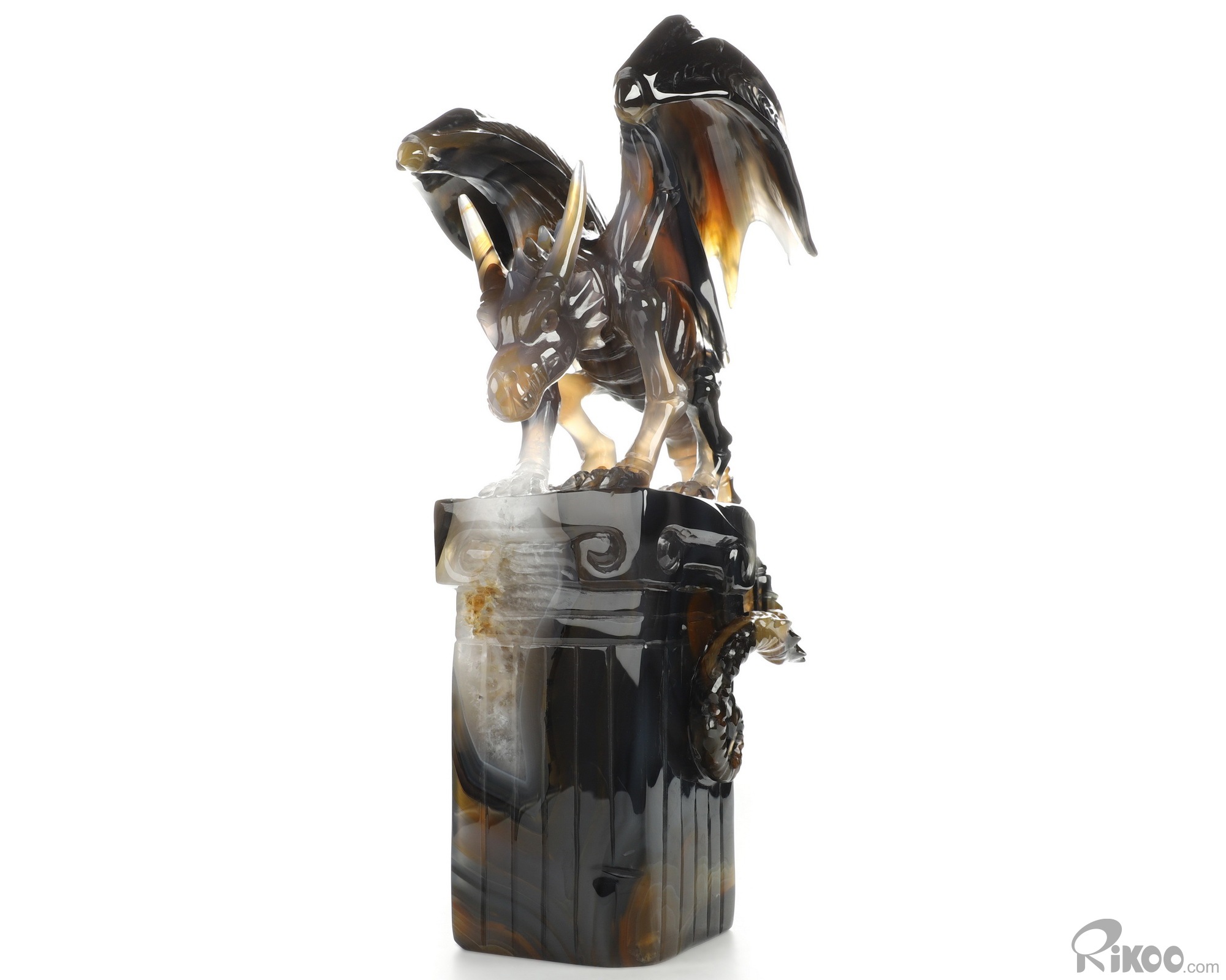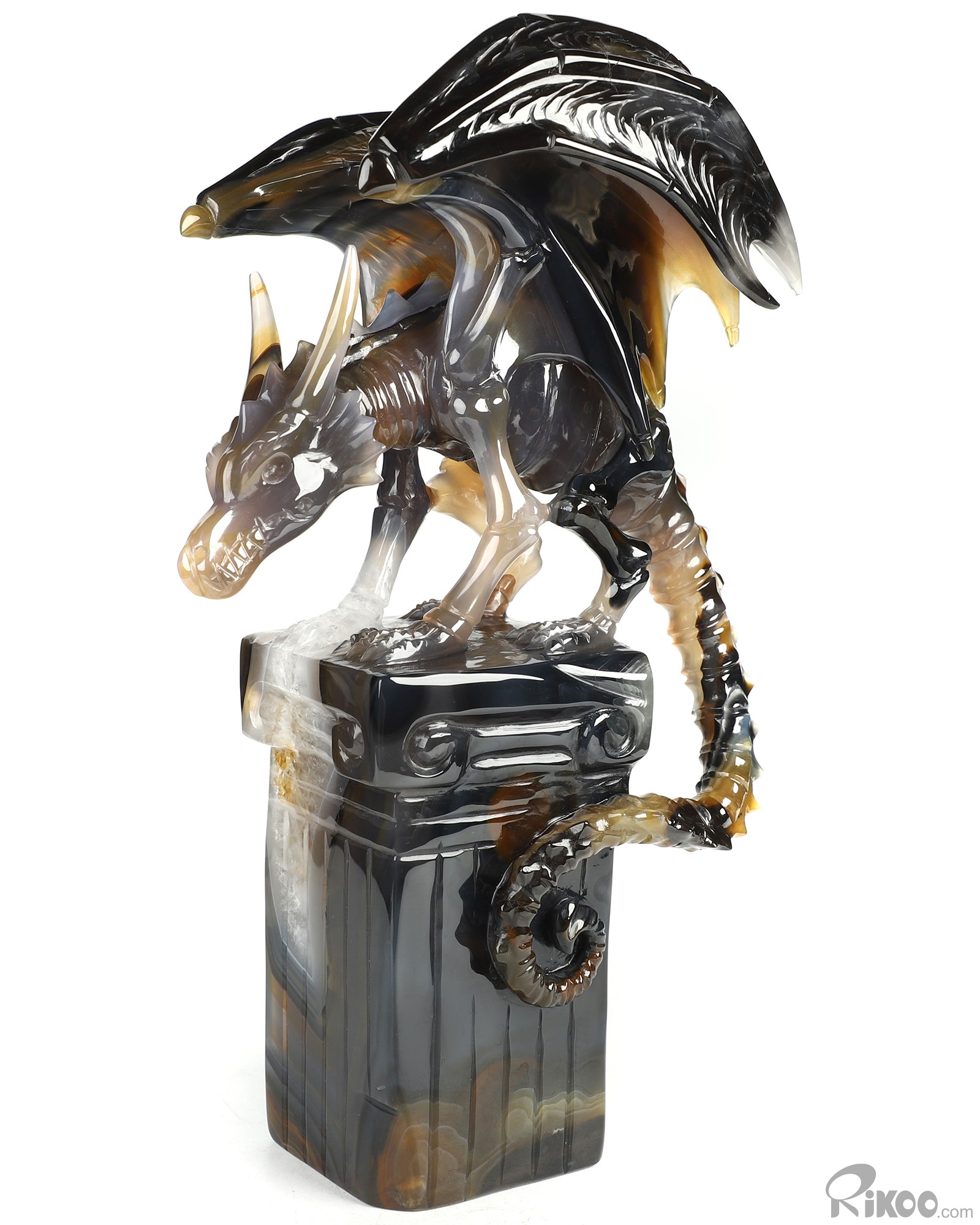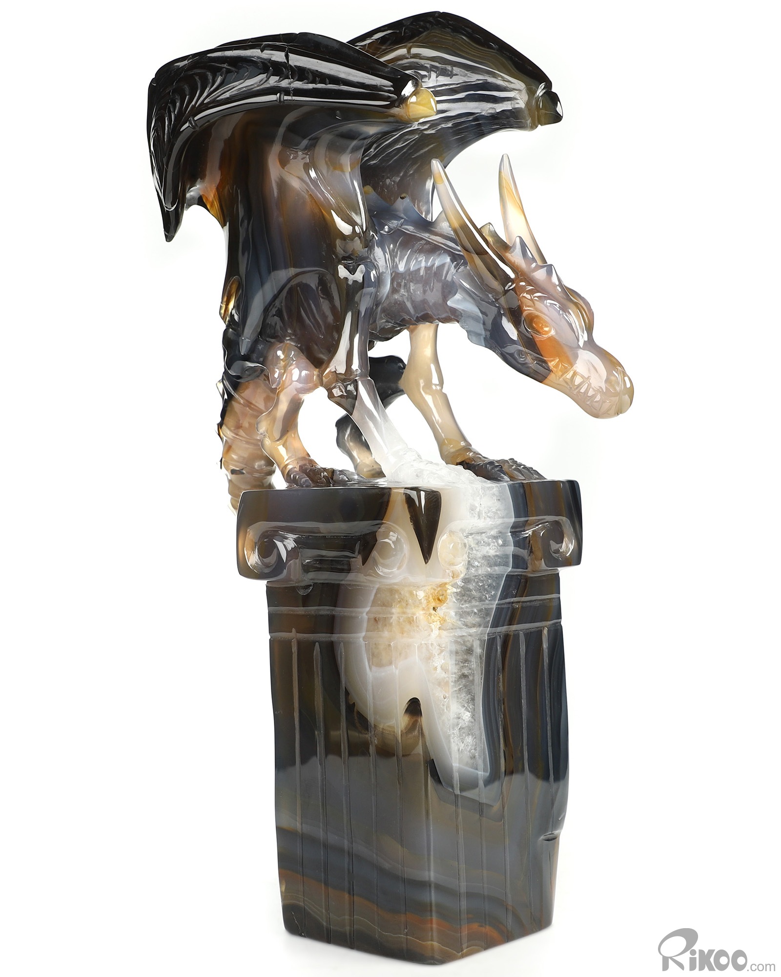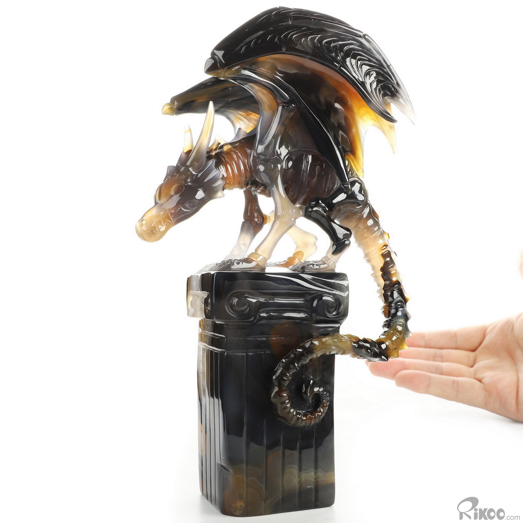 8.6" Premium Brazilian Agate Hand Carved Crystal Dragon Sculpture, Crystal Healing