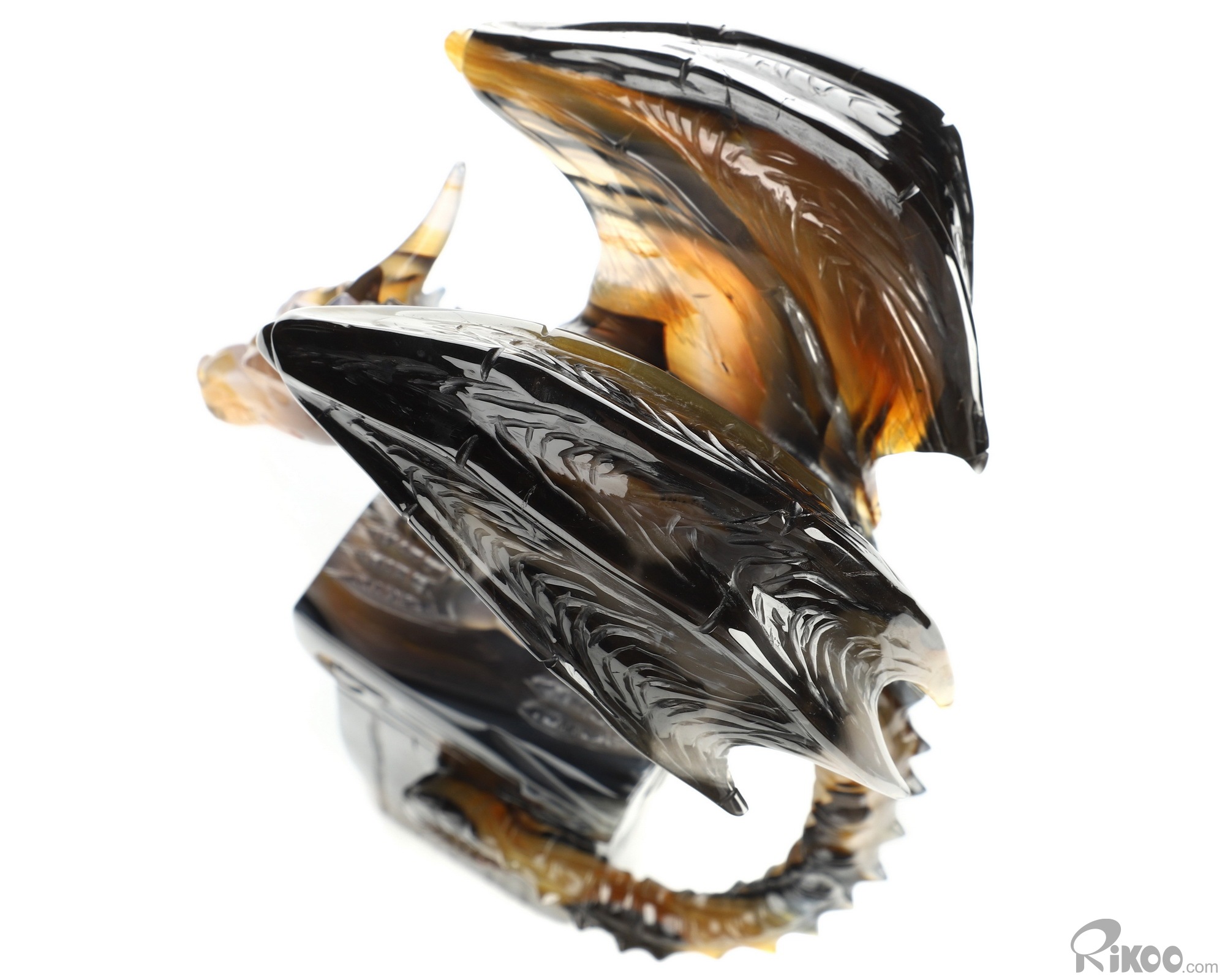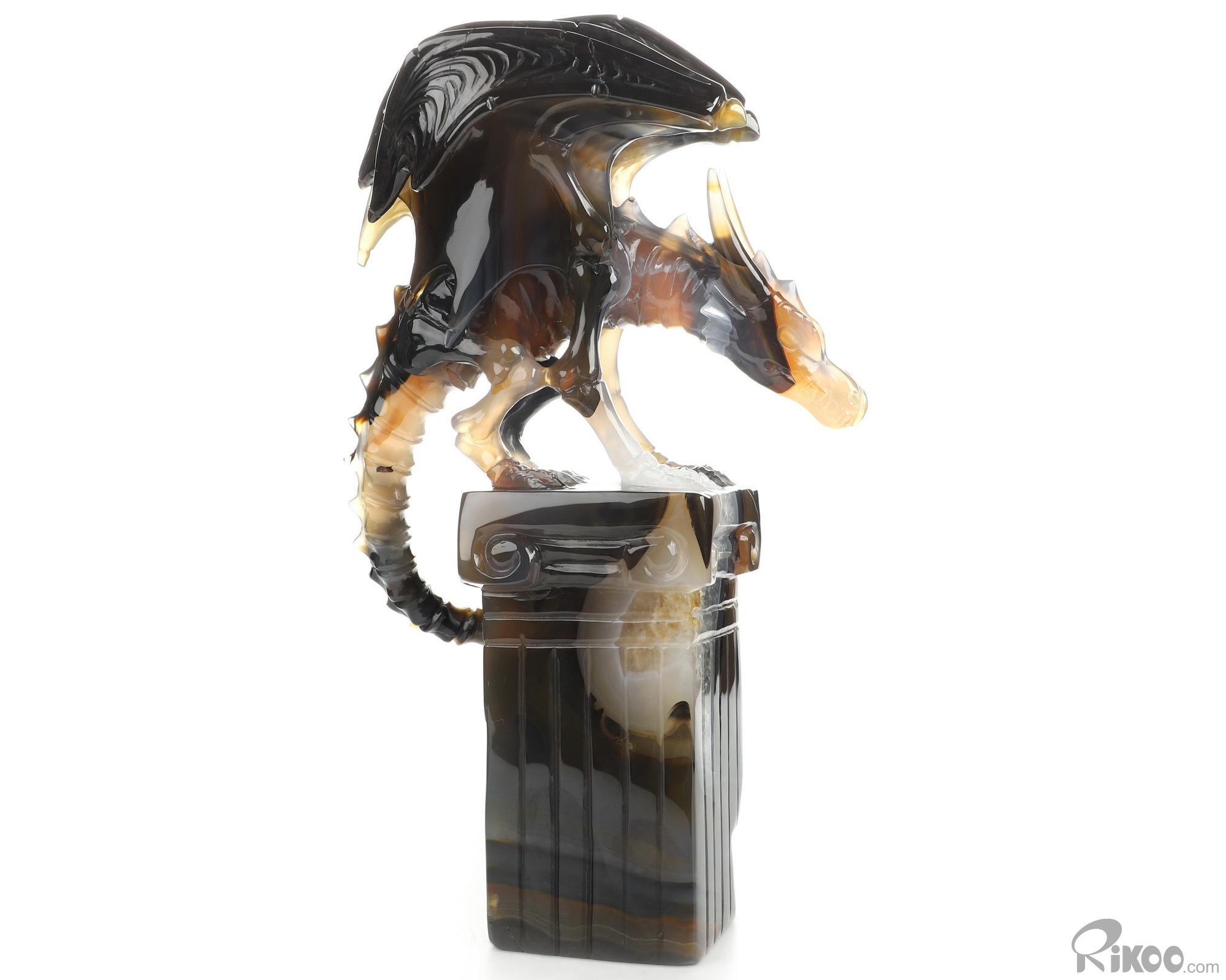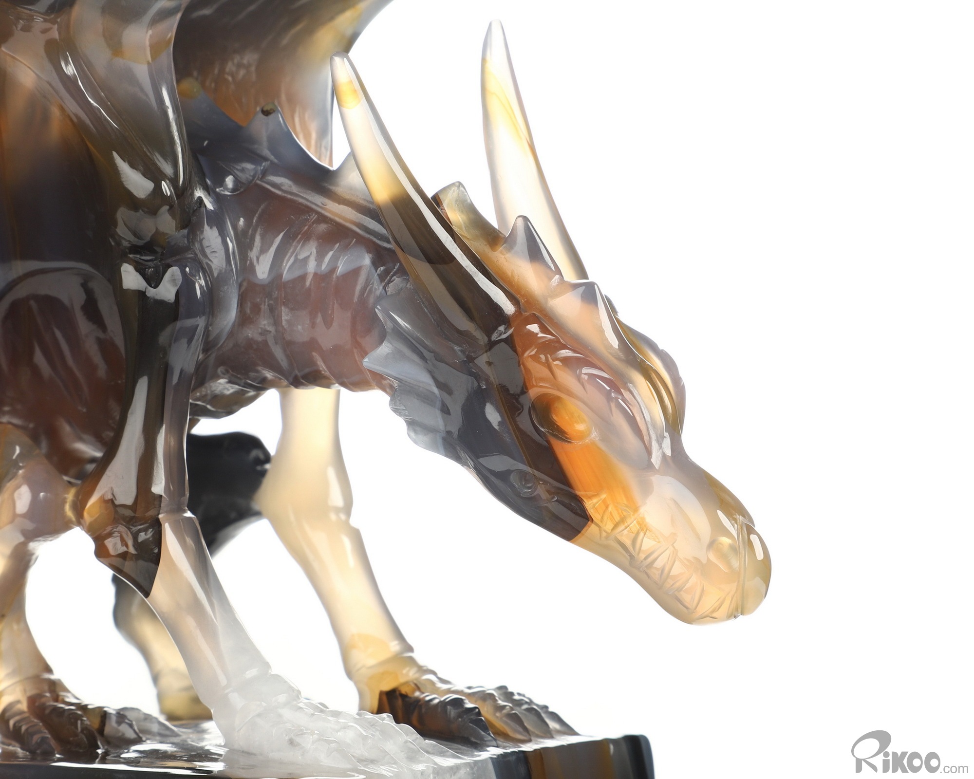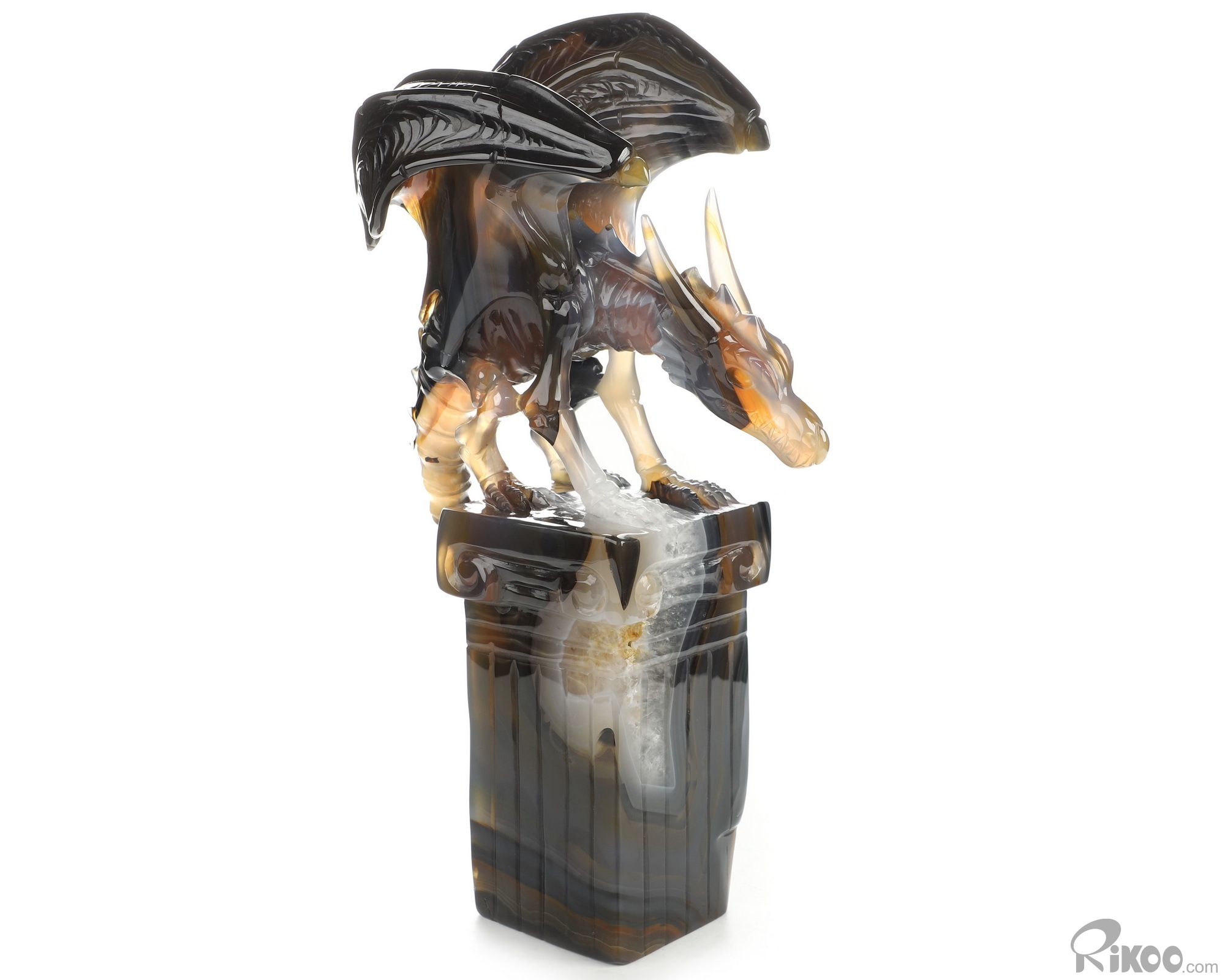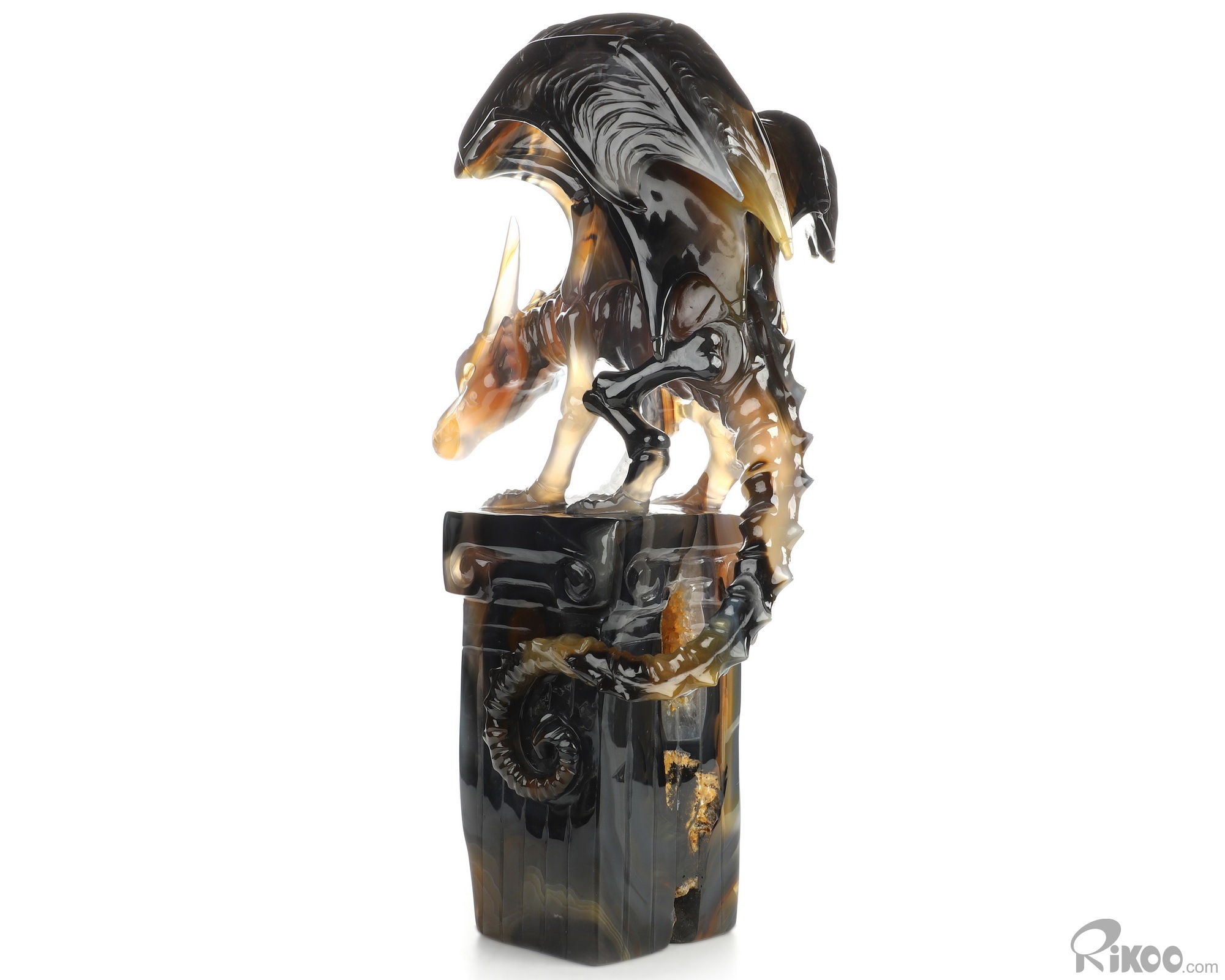8.6" Premium Brazilian Agate Hand Carved Crystal Dragon Sculpture, Crystal Healing