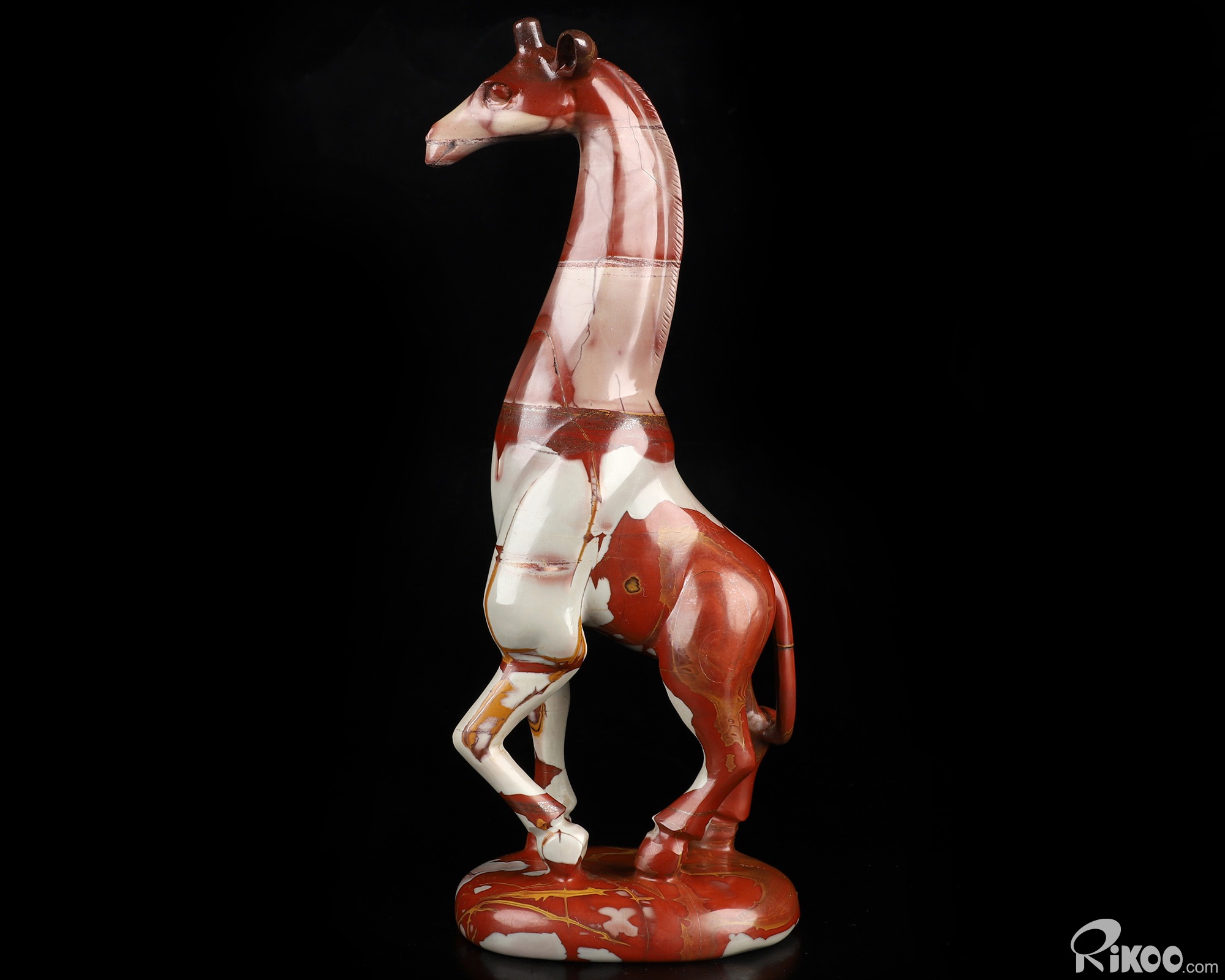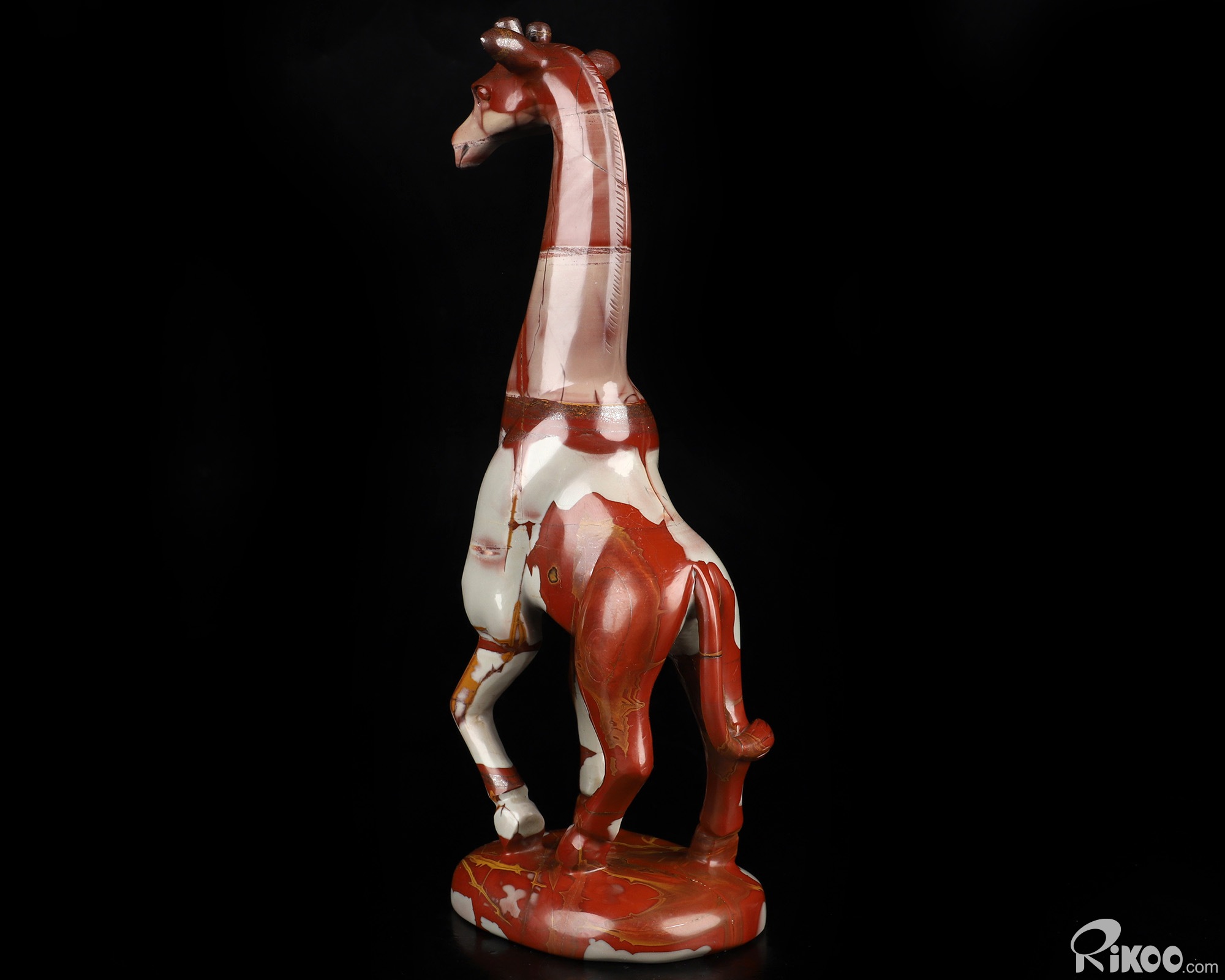 8.6" Red Noreena Jasper Hand Carved Crystal Giraffe Sculpture, Crystal Healing