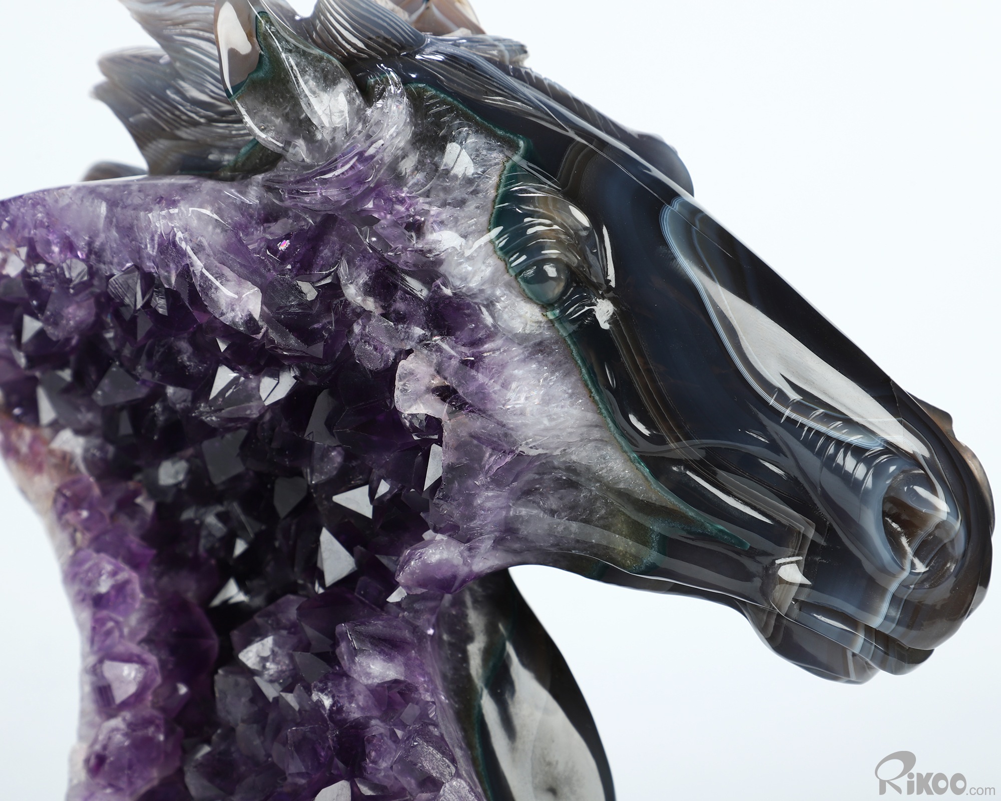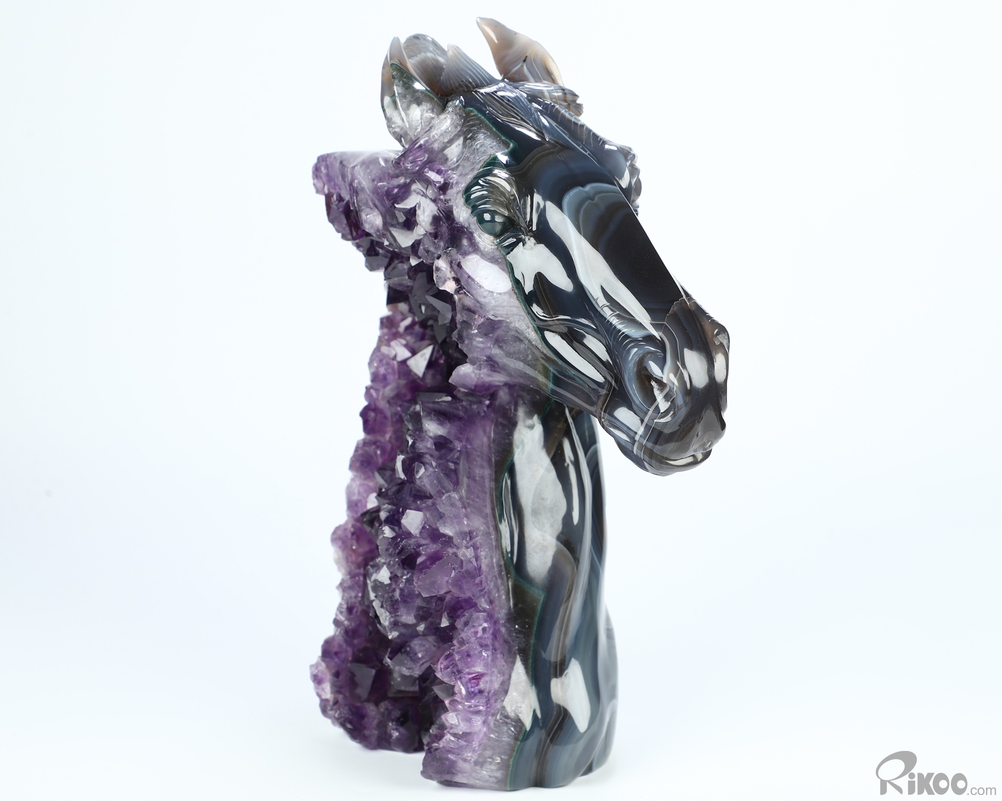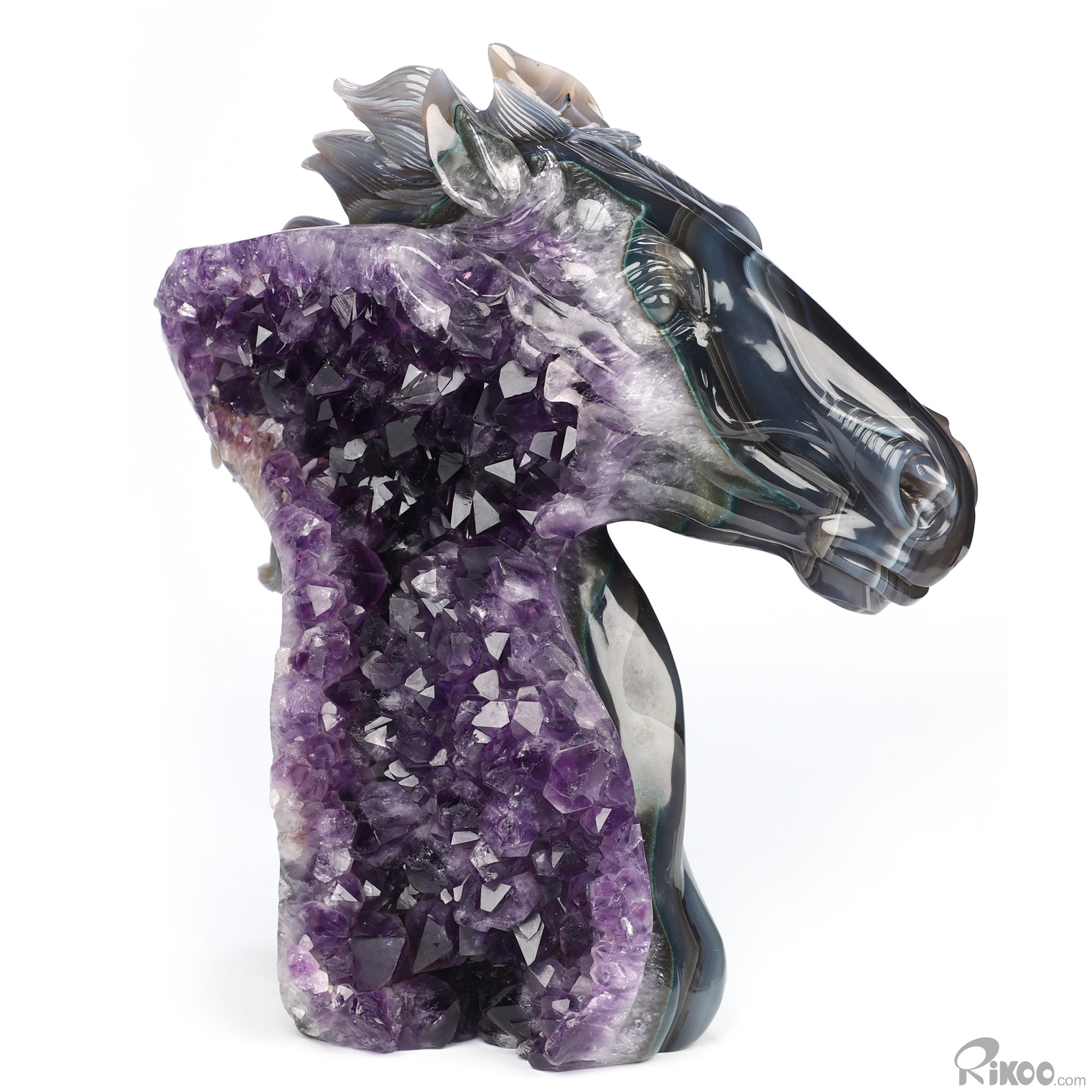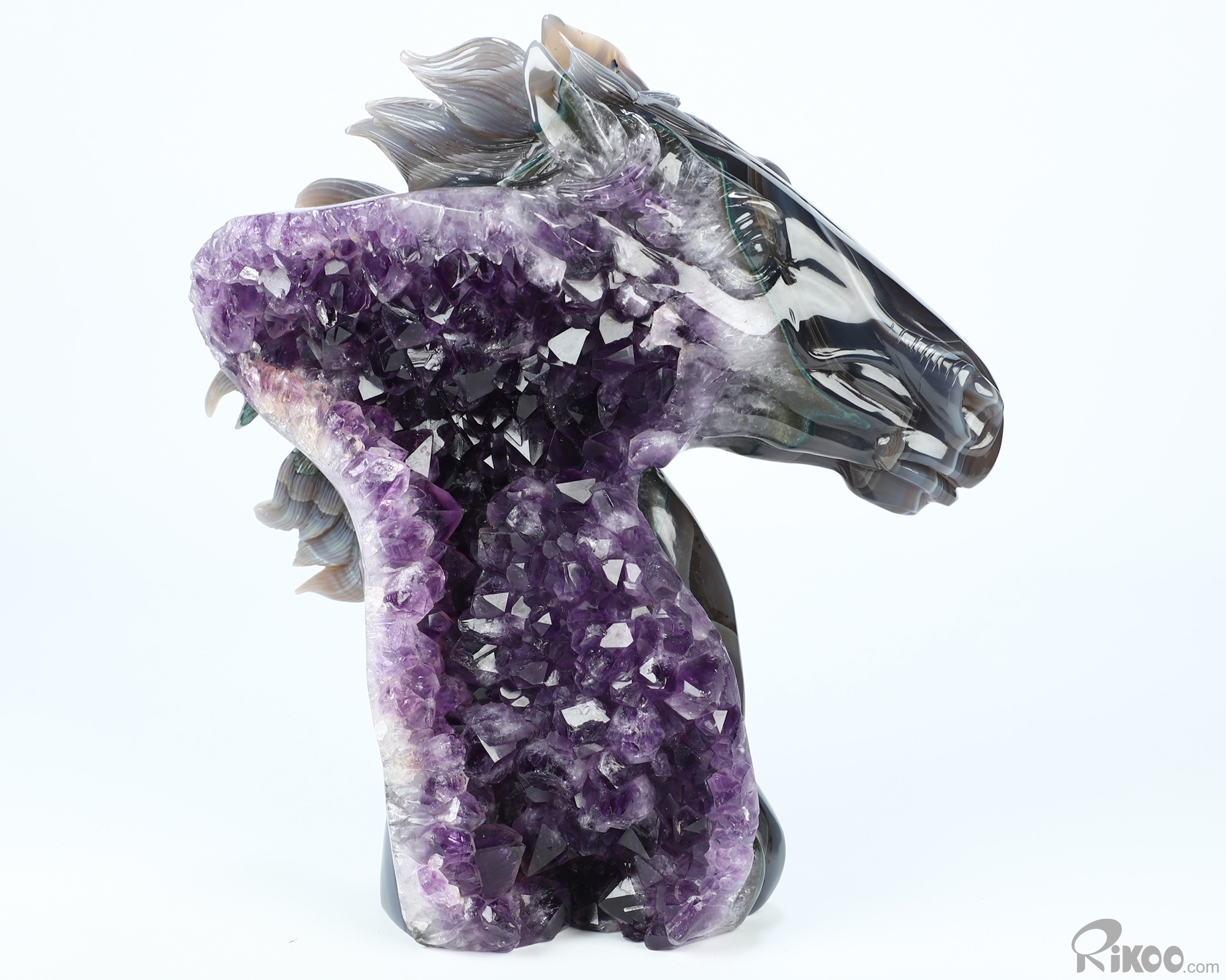 8.7" Agate Amethyst Druse Hand Carved Crystal Horse Sculpture, Crystal Healing