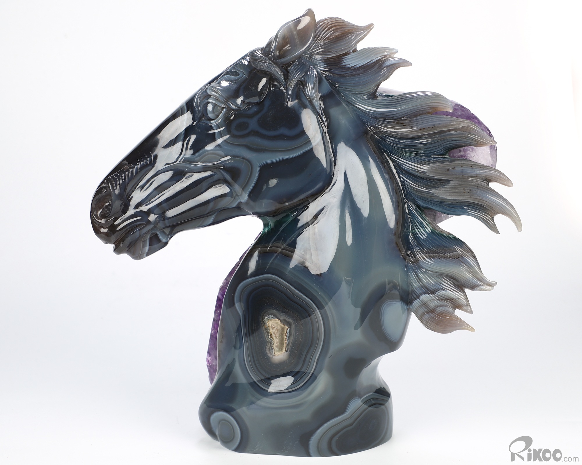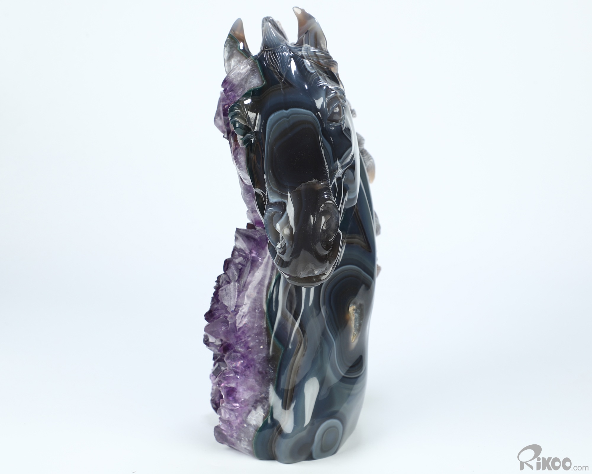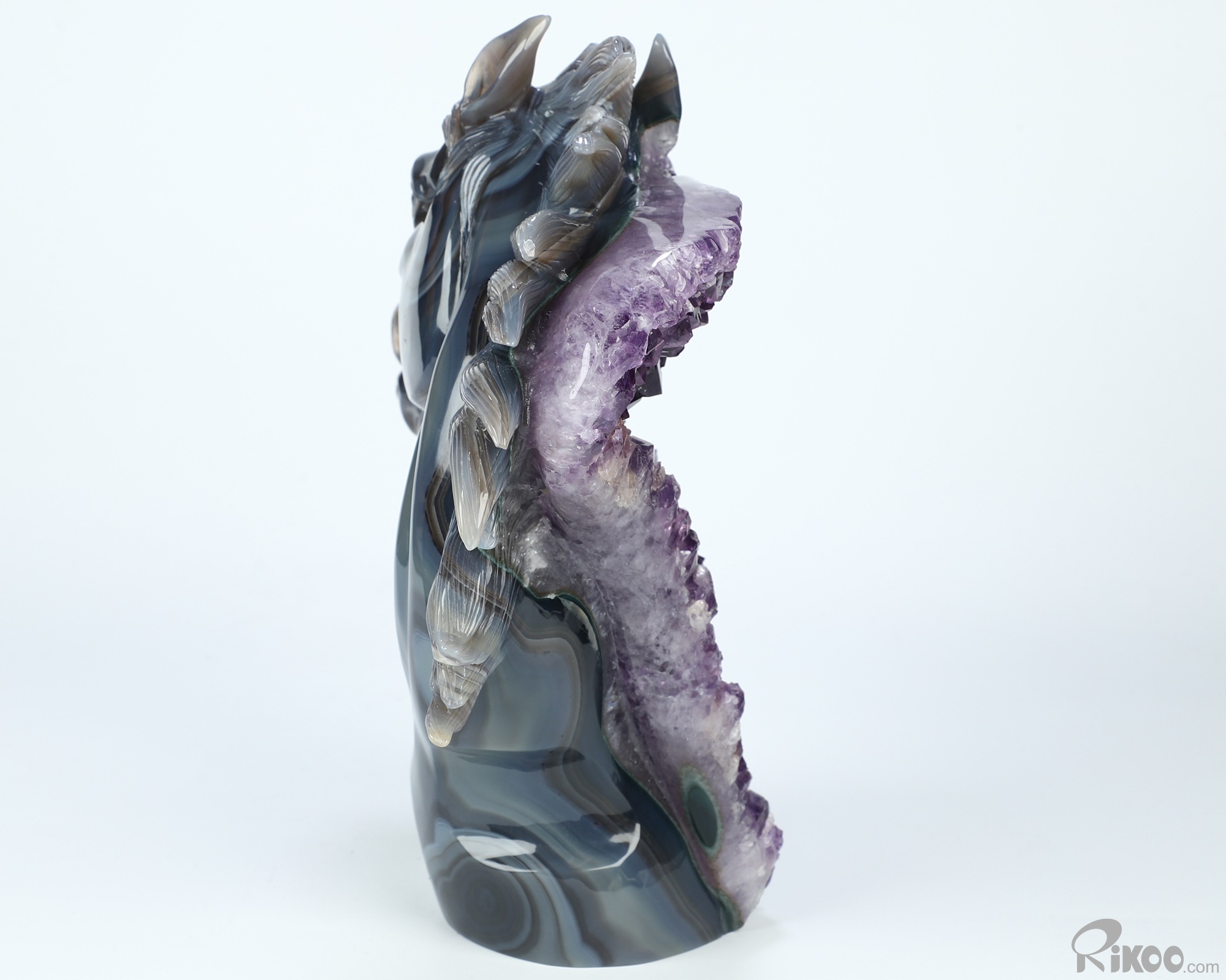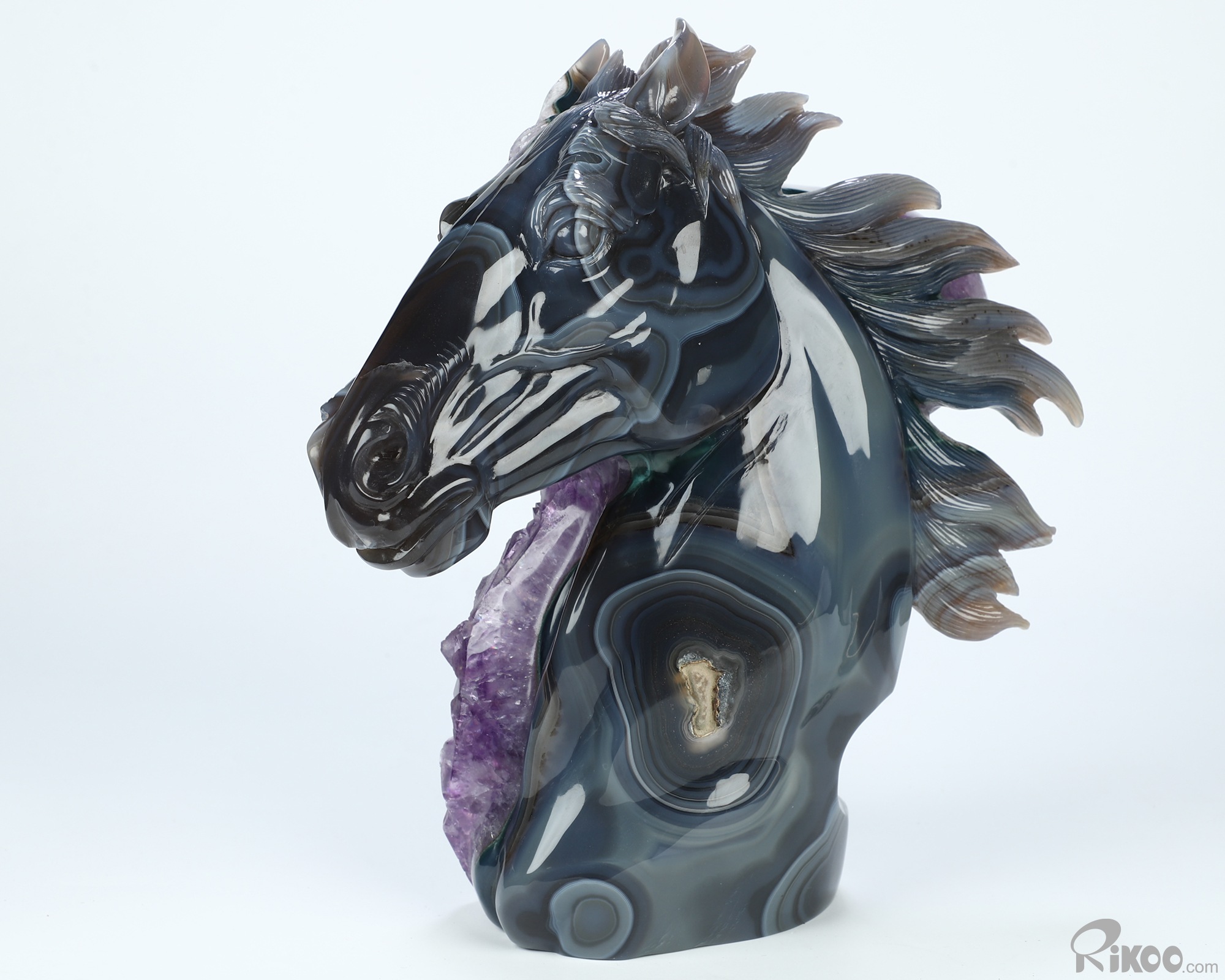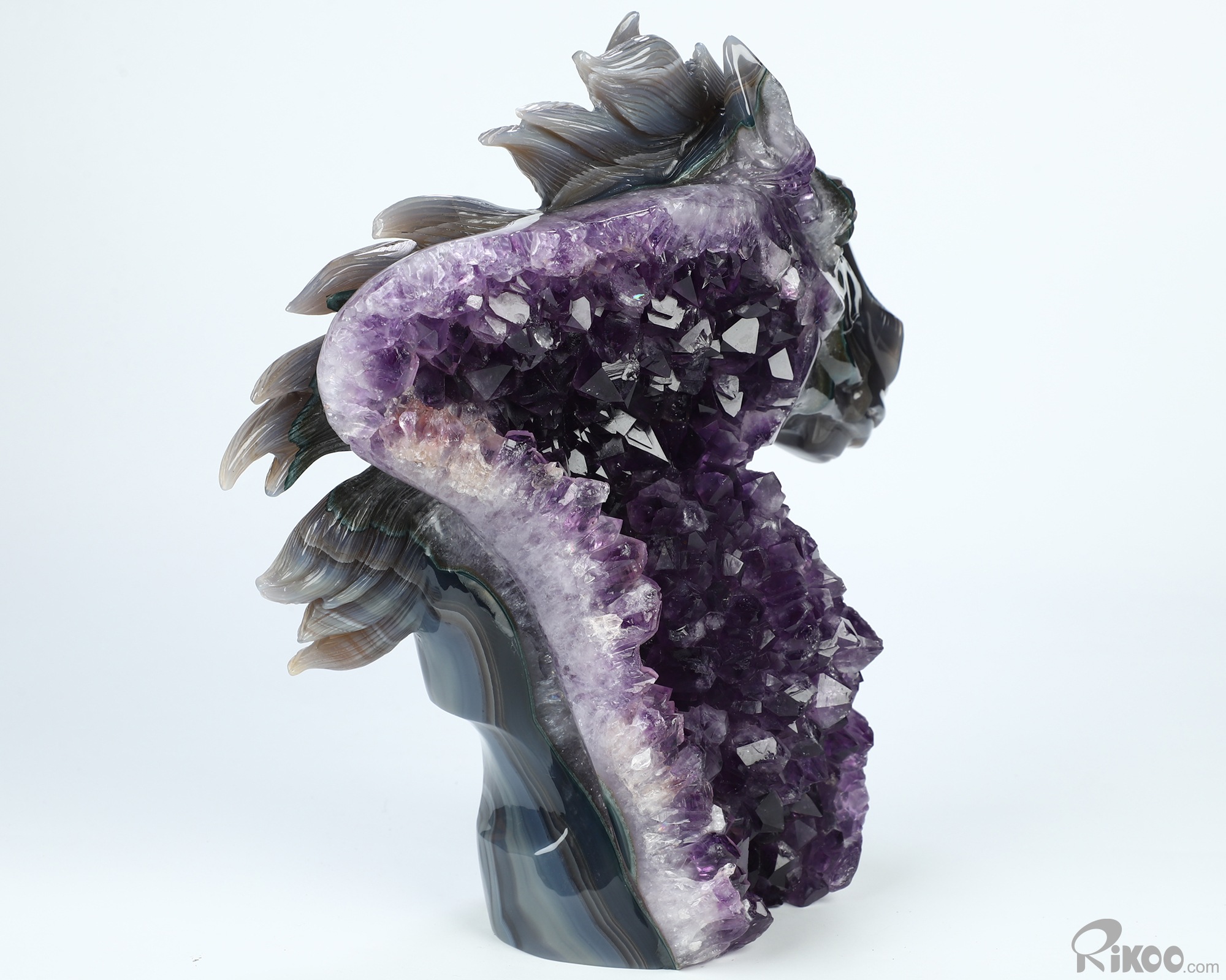 8.7" Agate Amethyst Druse Hand Carved Crystal Horse Sculpture, Crystal Healing