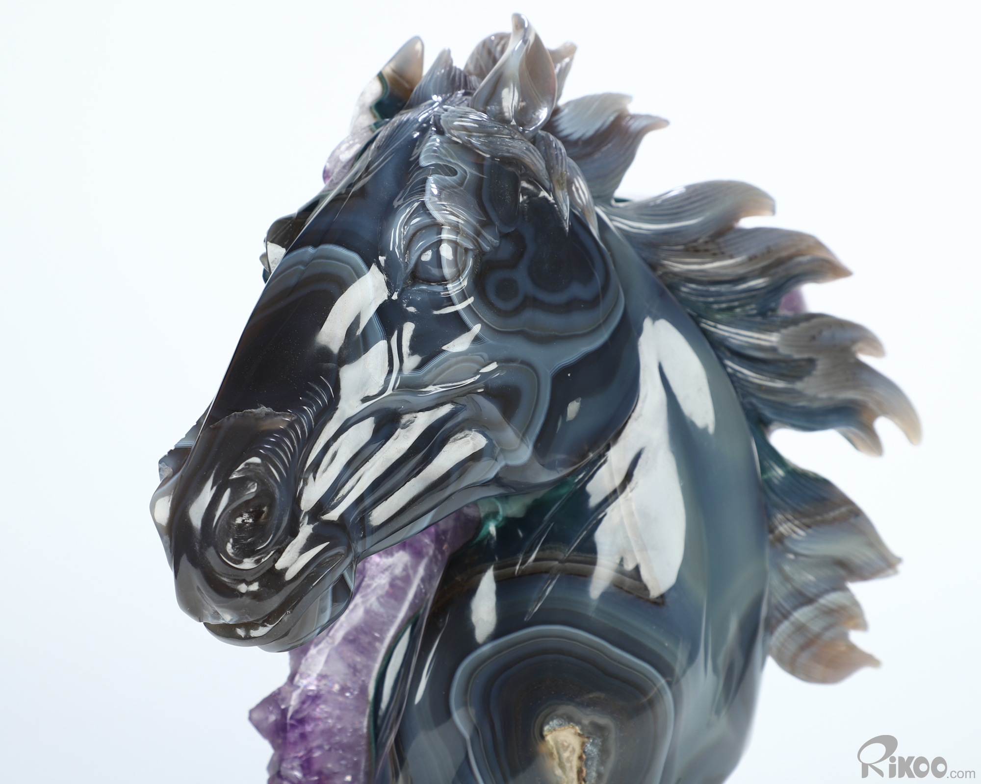 You are looking at an Agate Amethyst Druse Horse sculpture. The sculpture is 8.7 inches long.