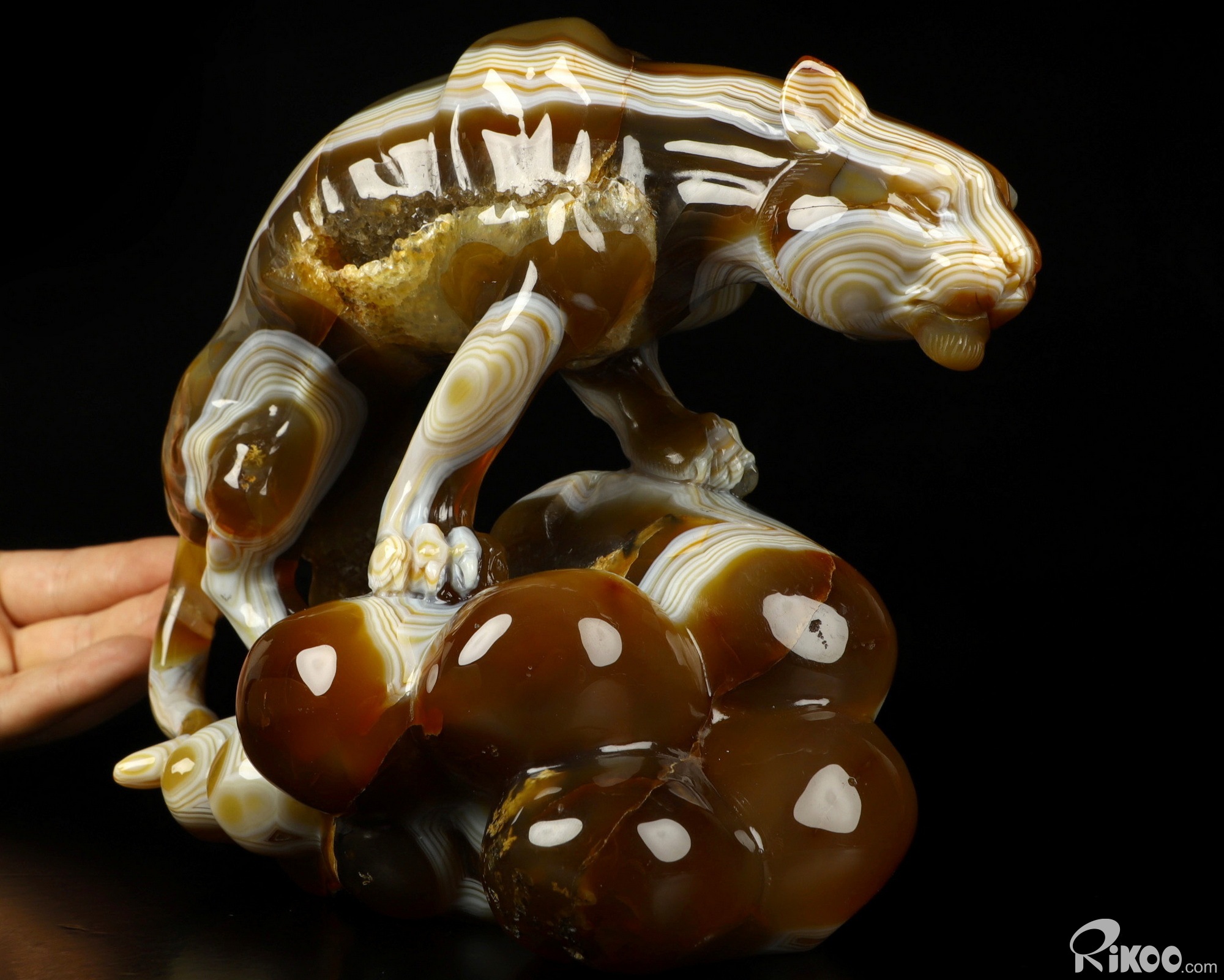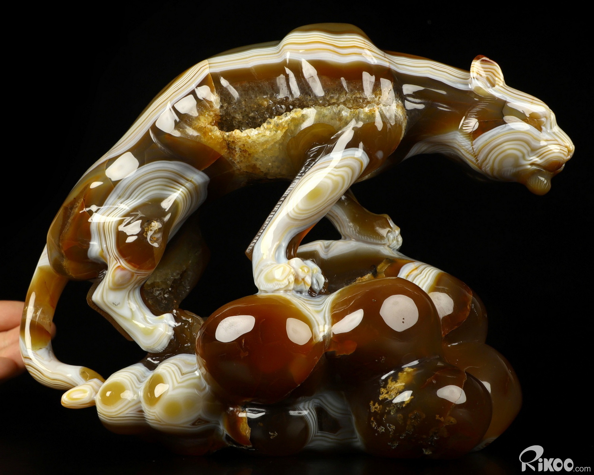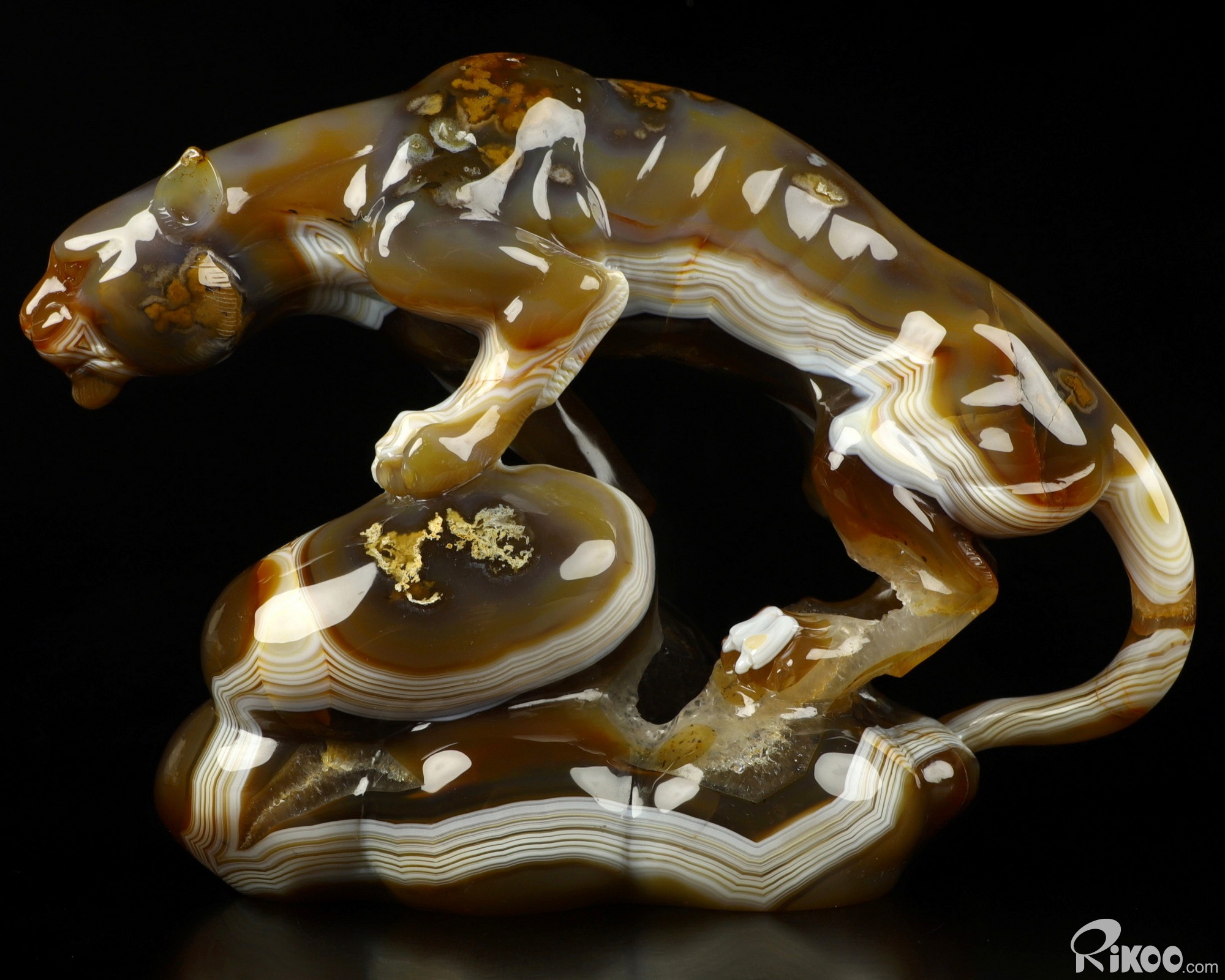 8.7" Agate Hand Carved Crystal Leopard Sculpture, Crystal Healing