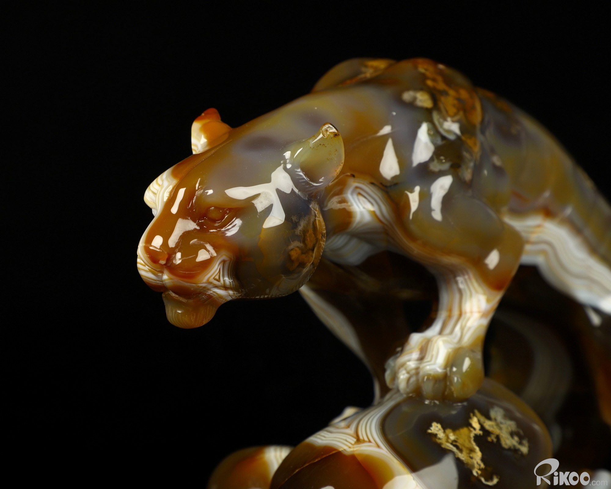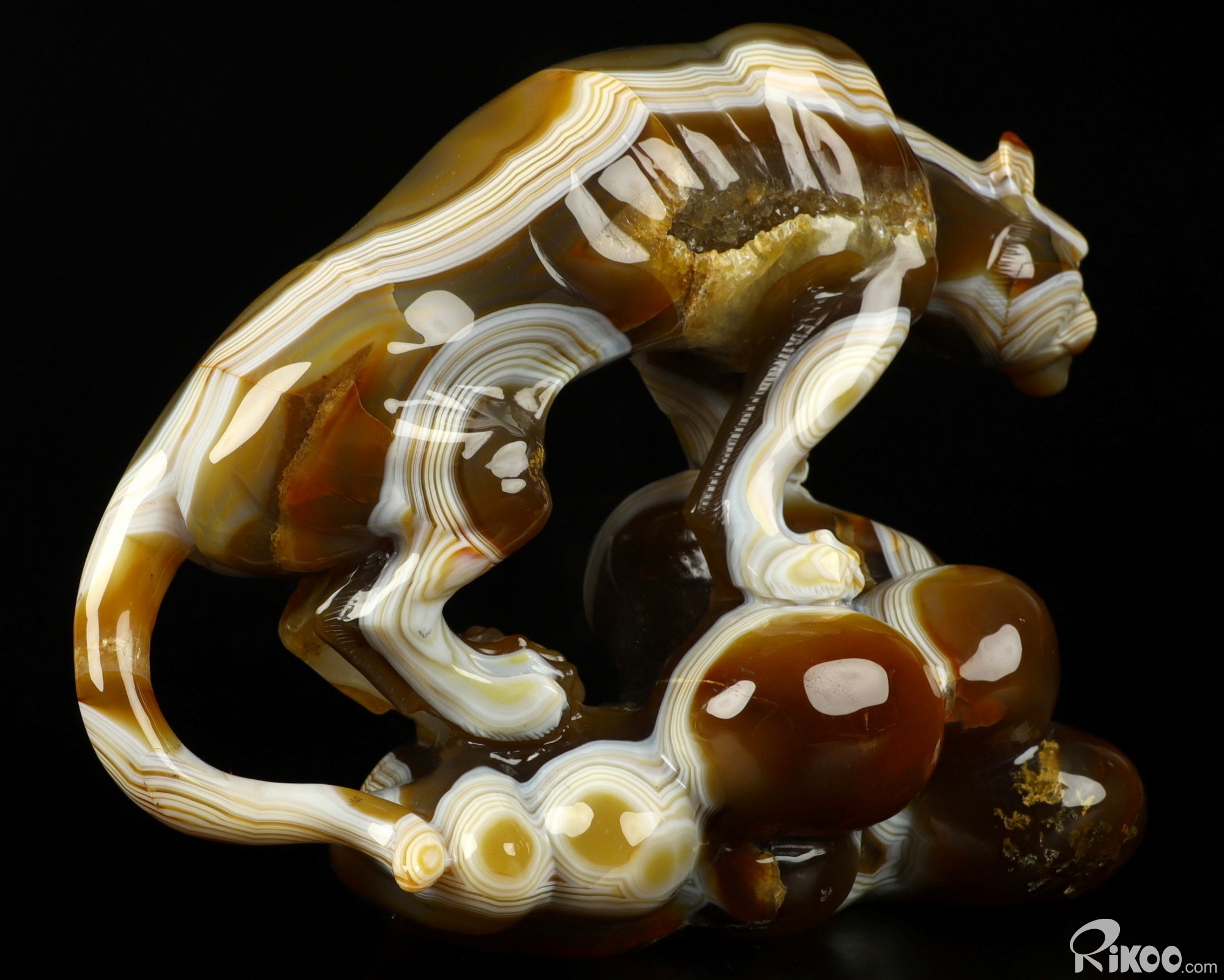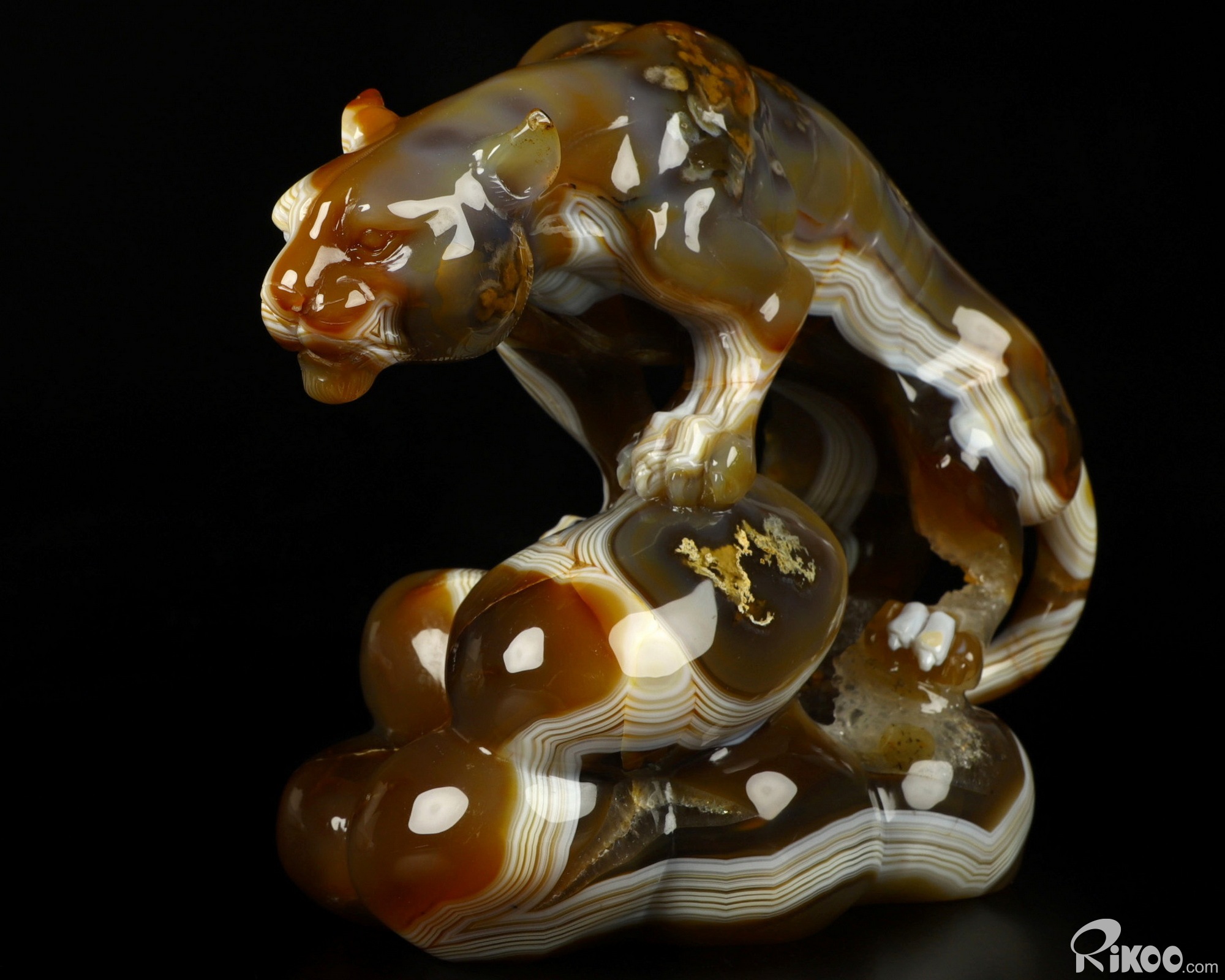 8.7" Agate Hand Carved Crystal Leopard Sculpture, Crystal Healing