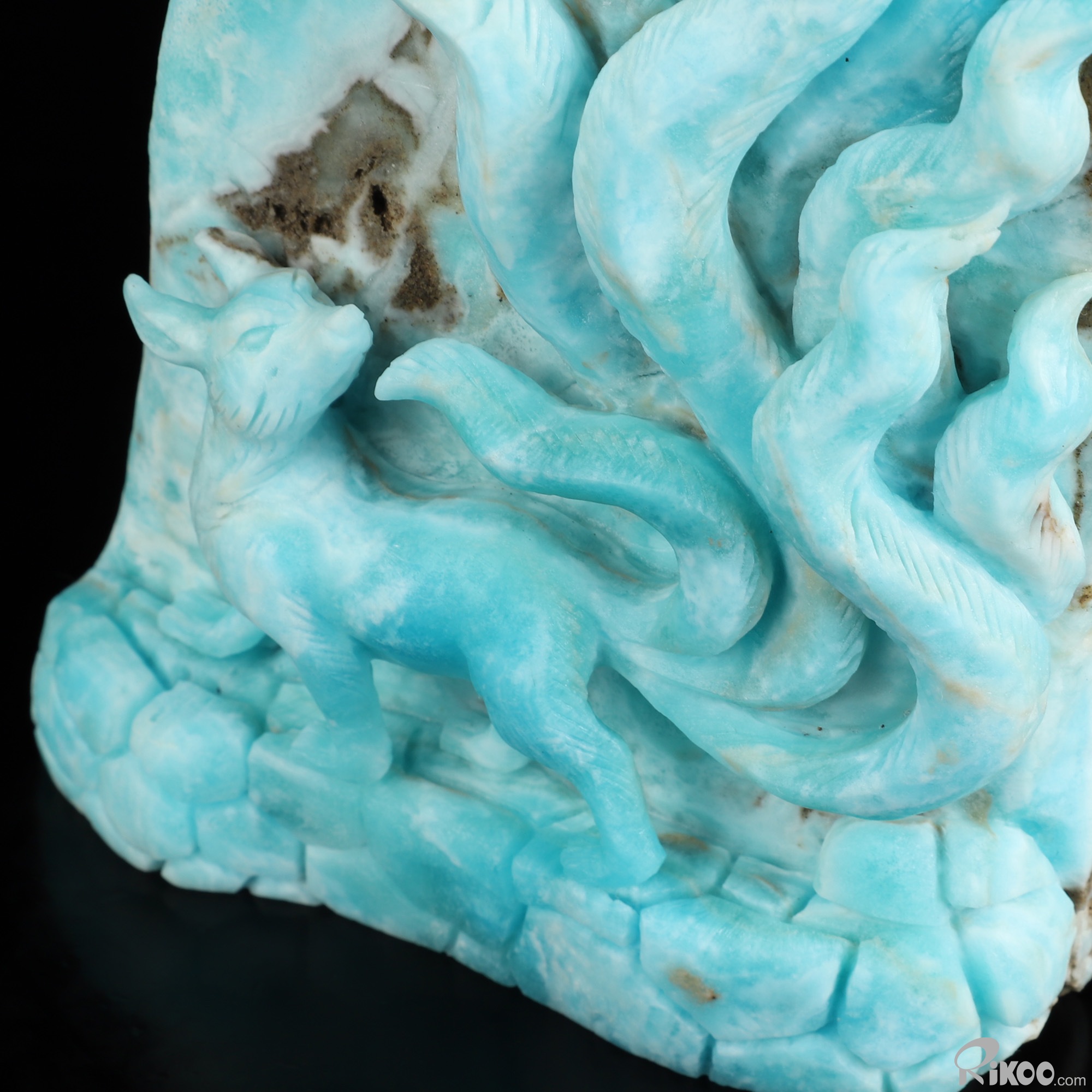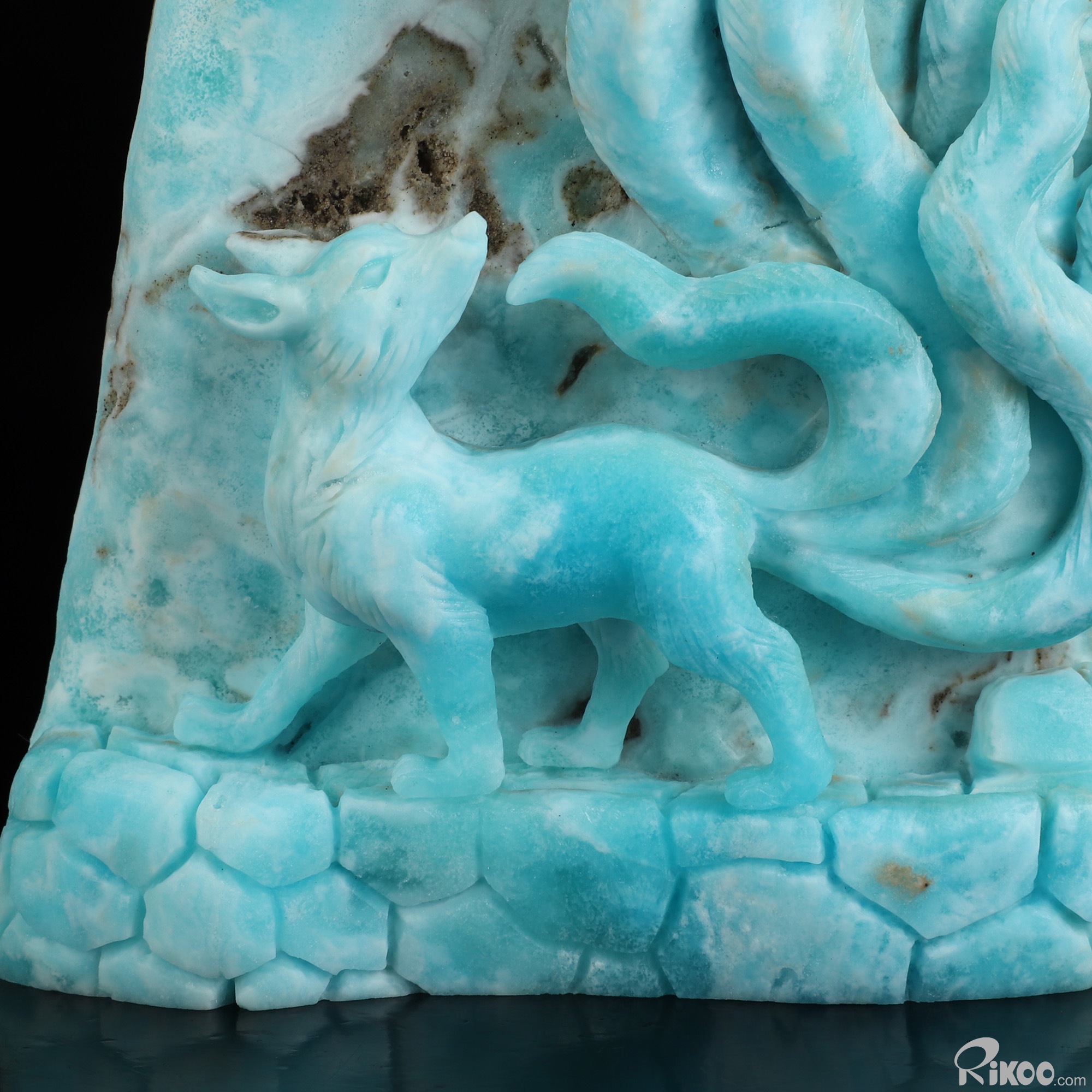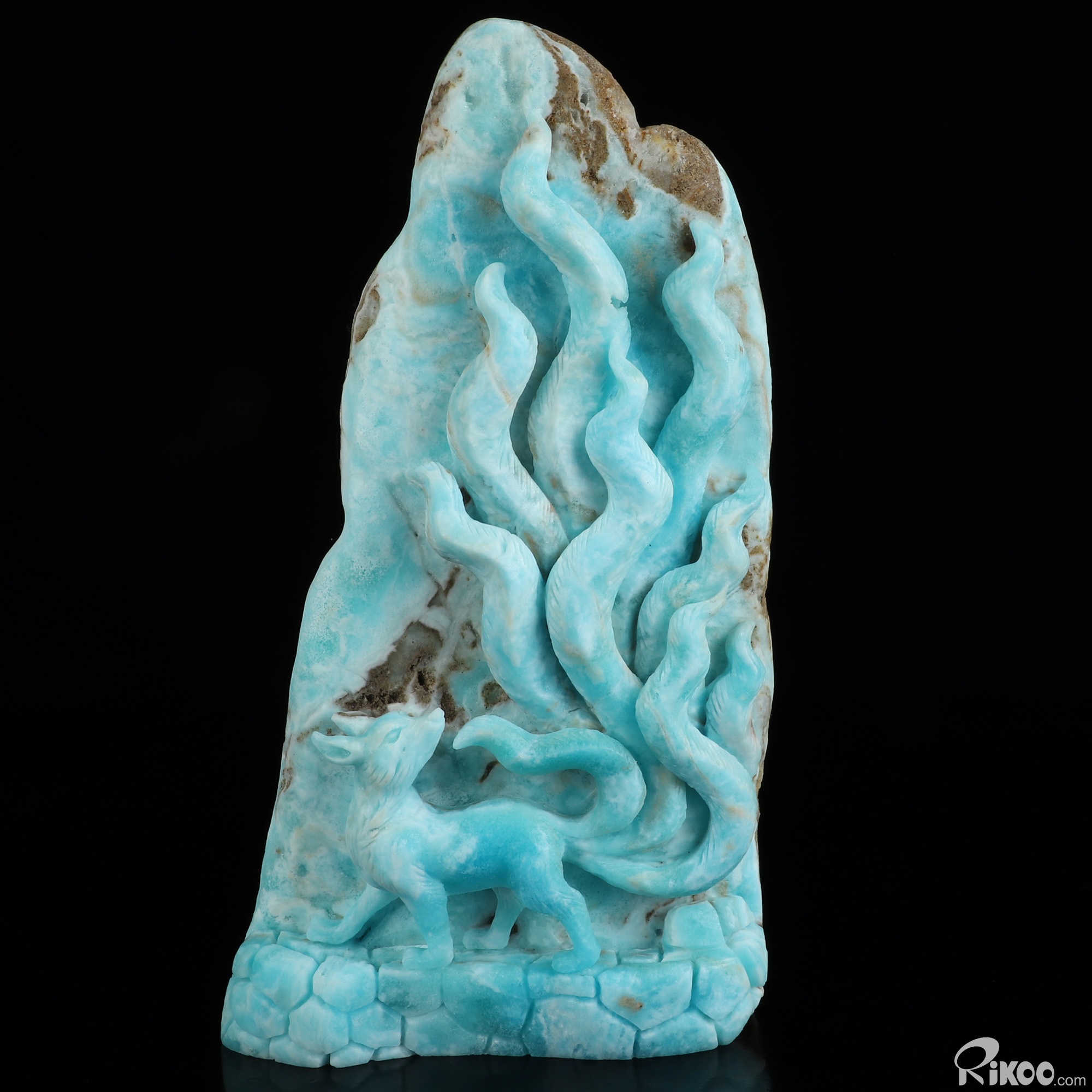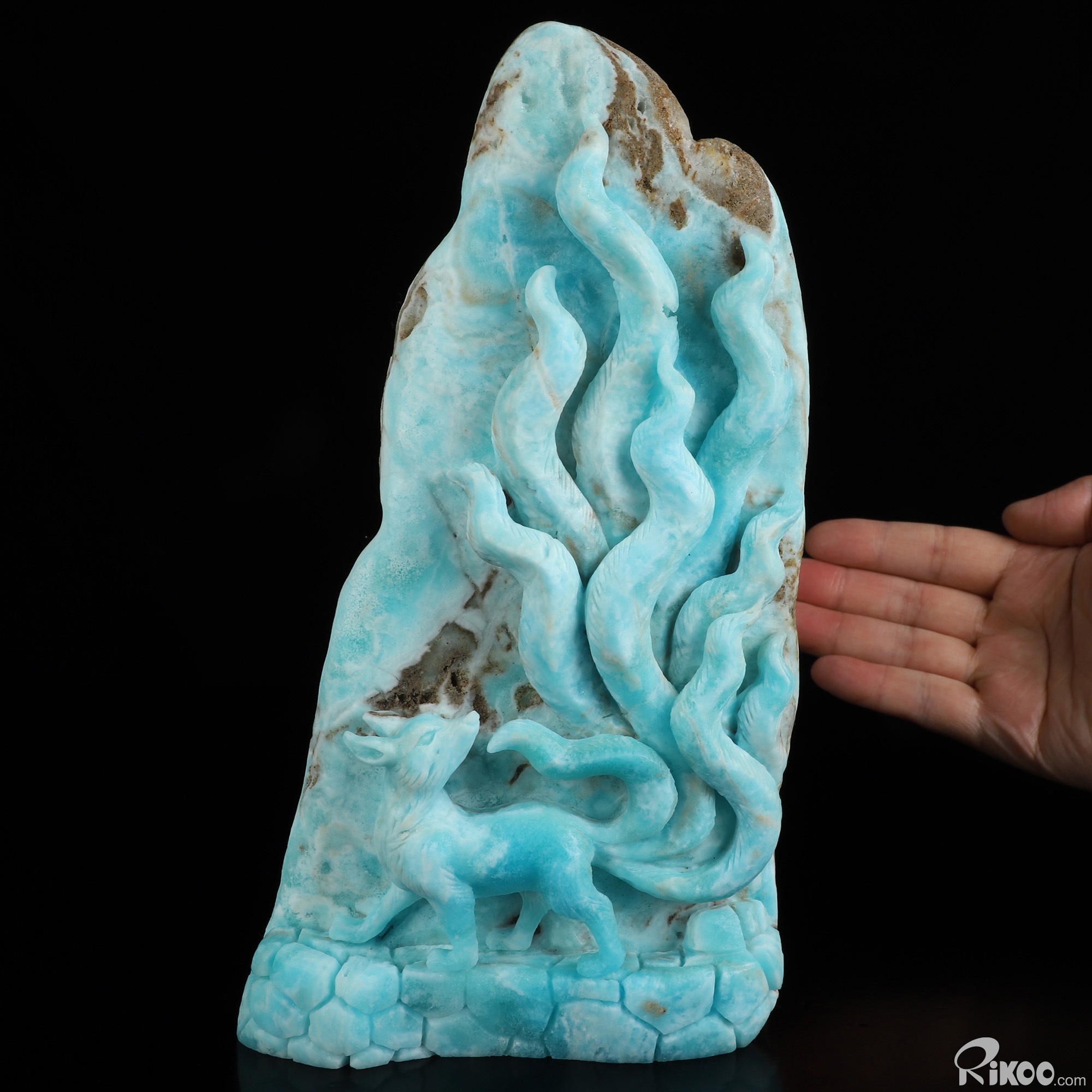 8.7" Blue Aragonite Hand Carved Crystal Nine-Tailed Fox Sculpture, Crystal Healing