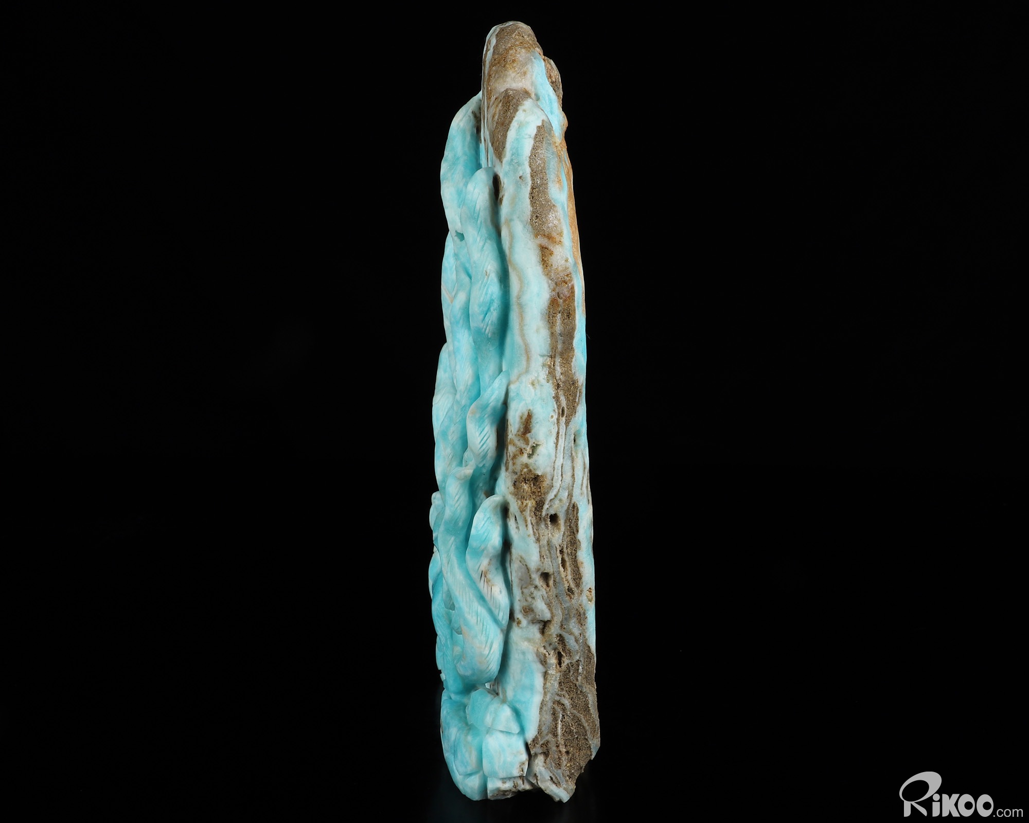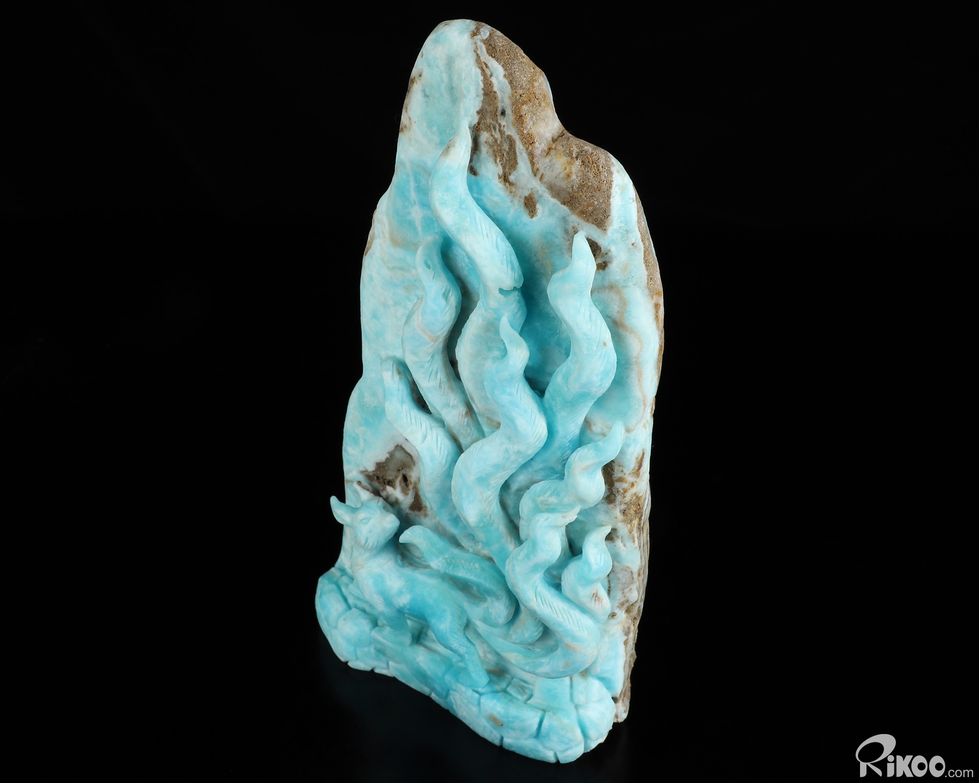 You are looking at a Blue Aragonite sculpture. The sculpture is 8.7 inches long.