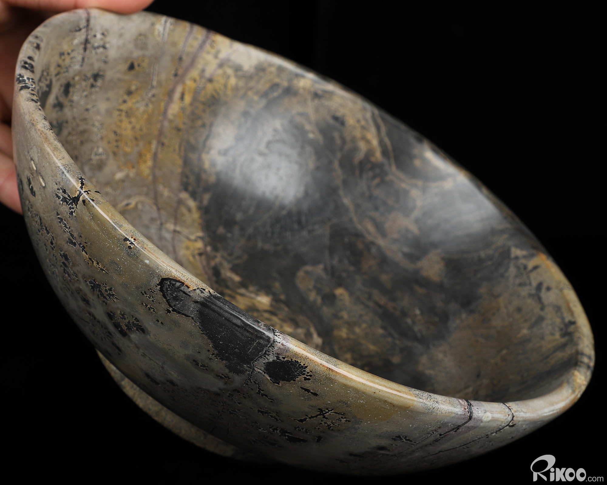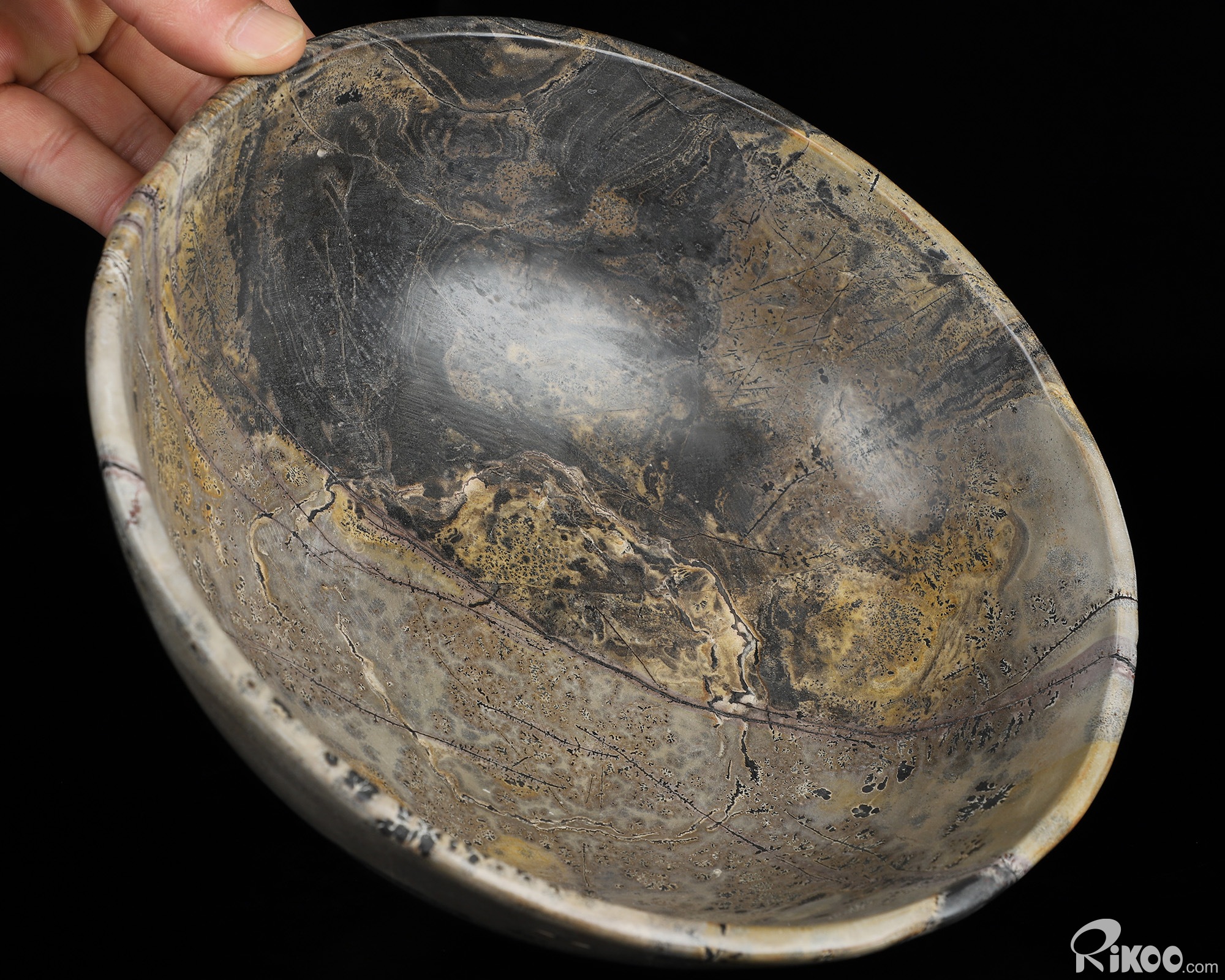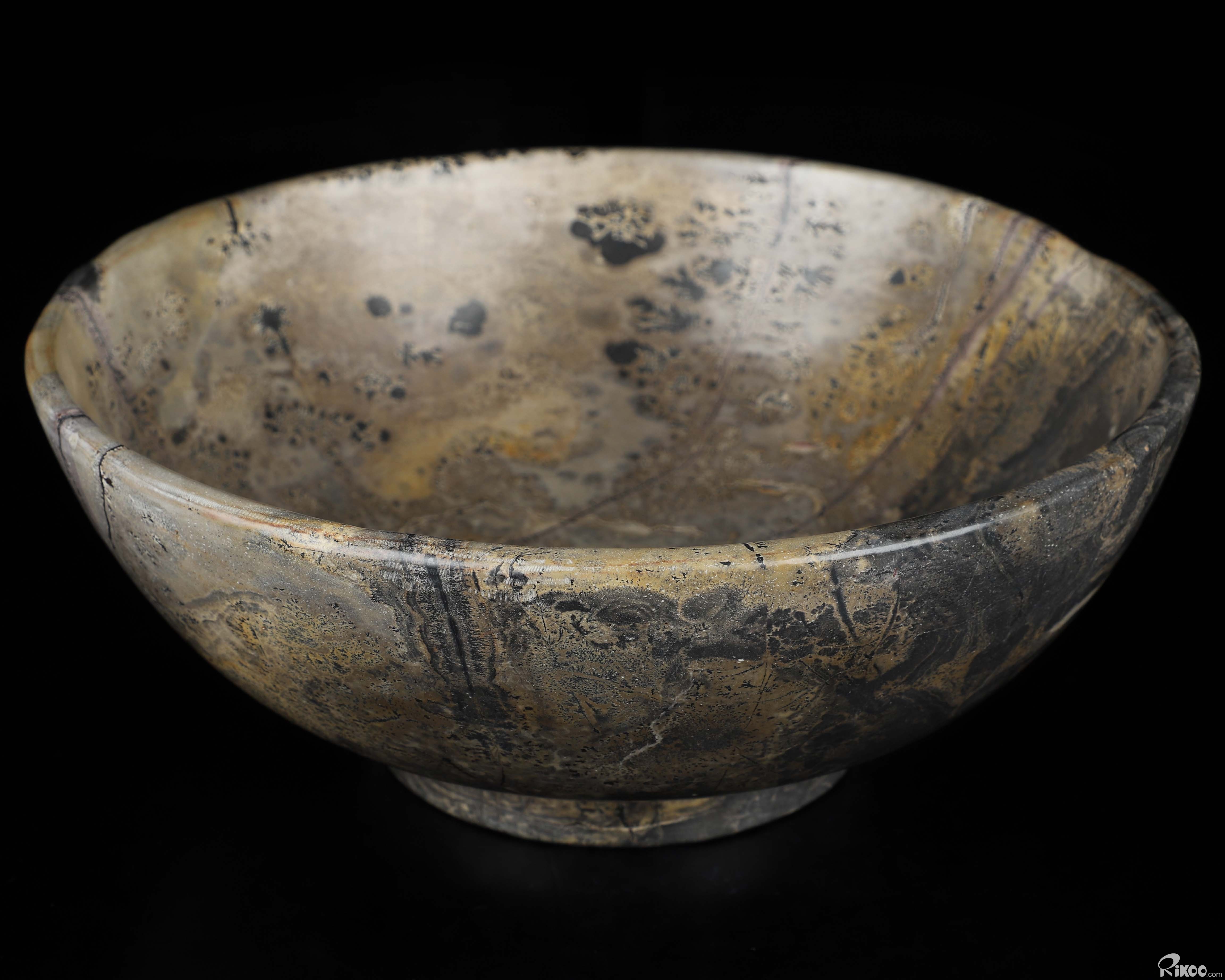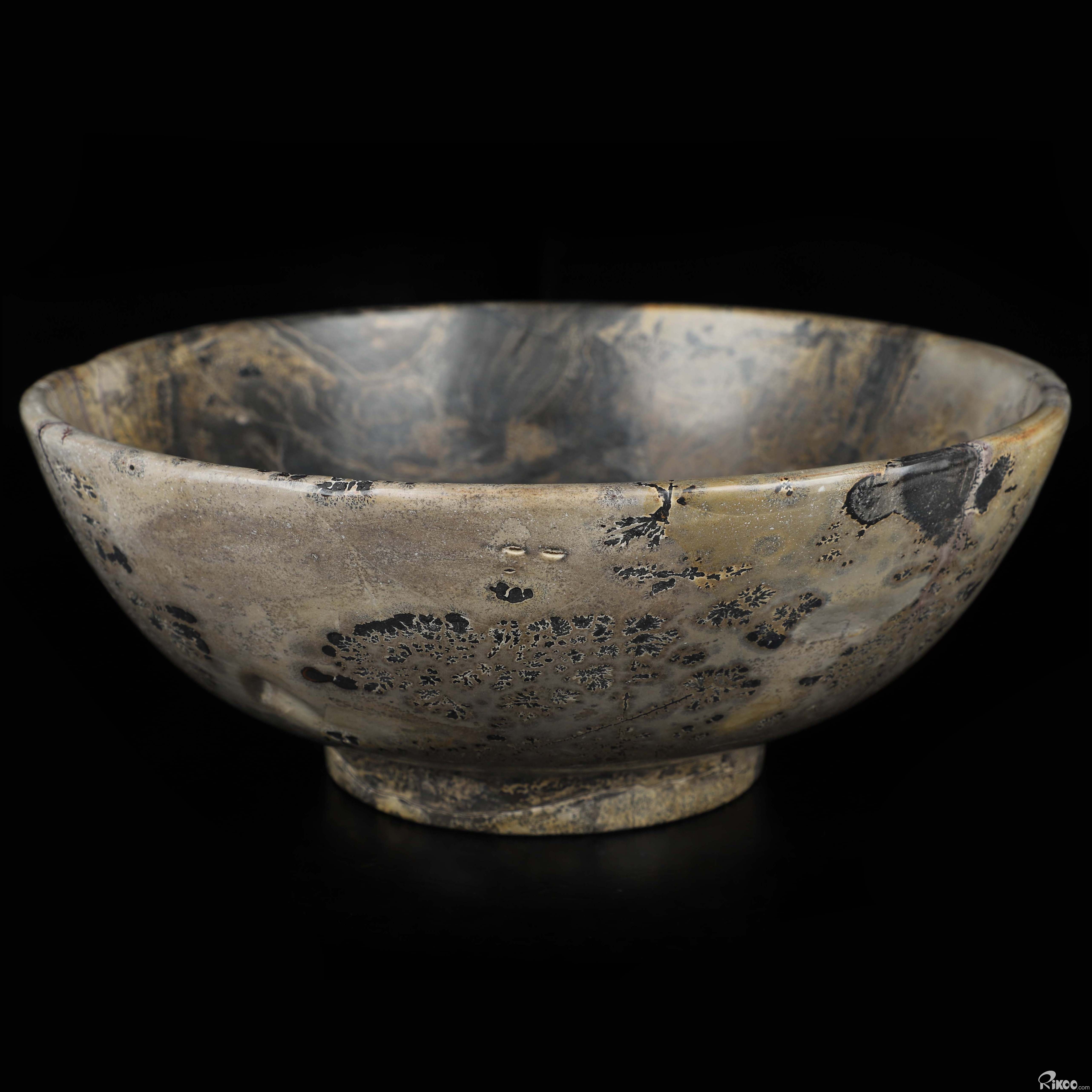 You are looking at a Chinese Painting Stone Bowl sculpture. The sculpture is 8.7 inches long.