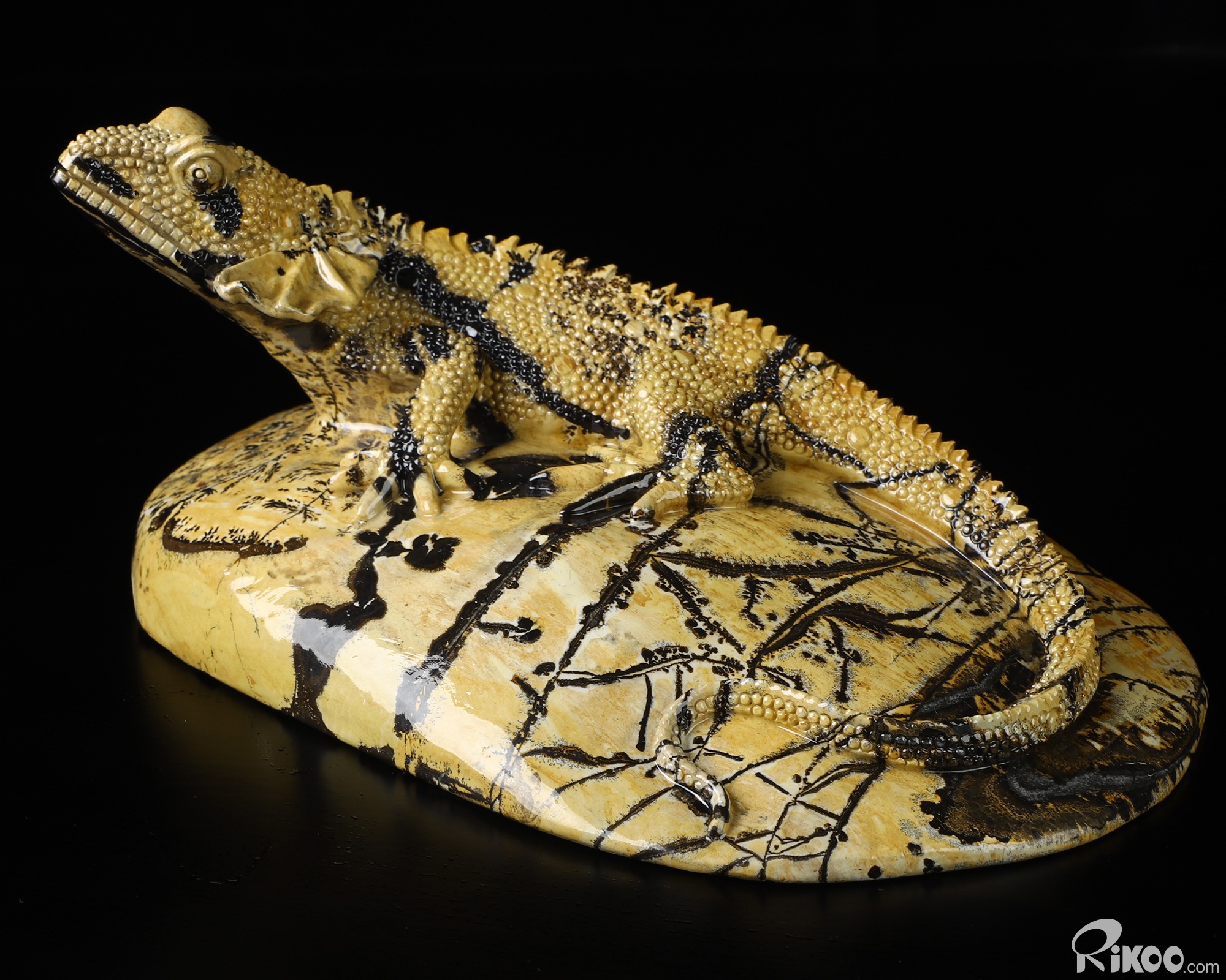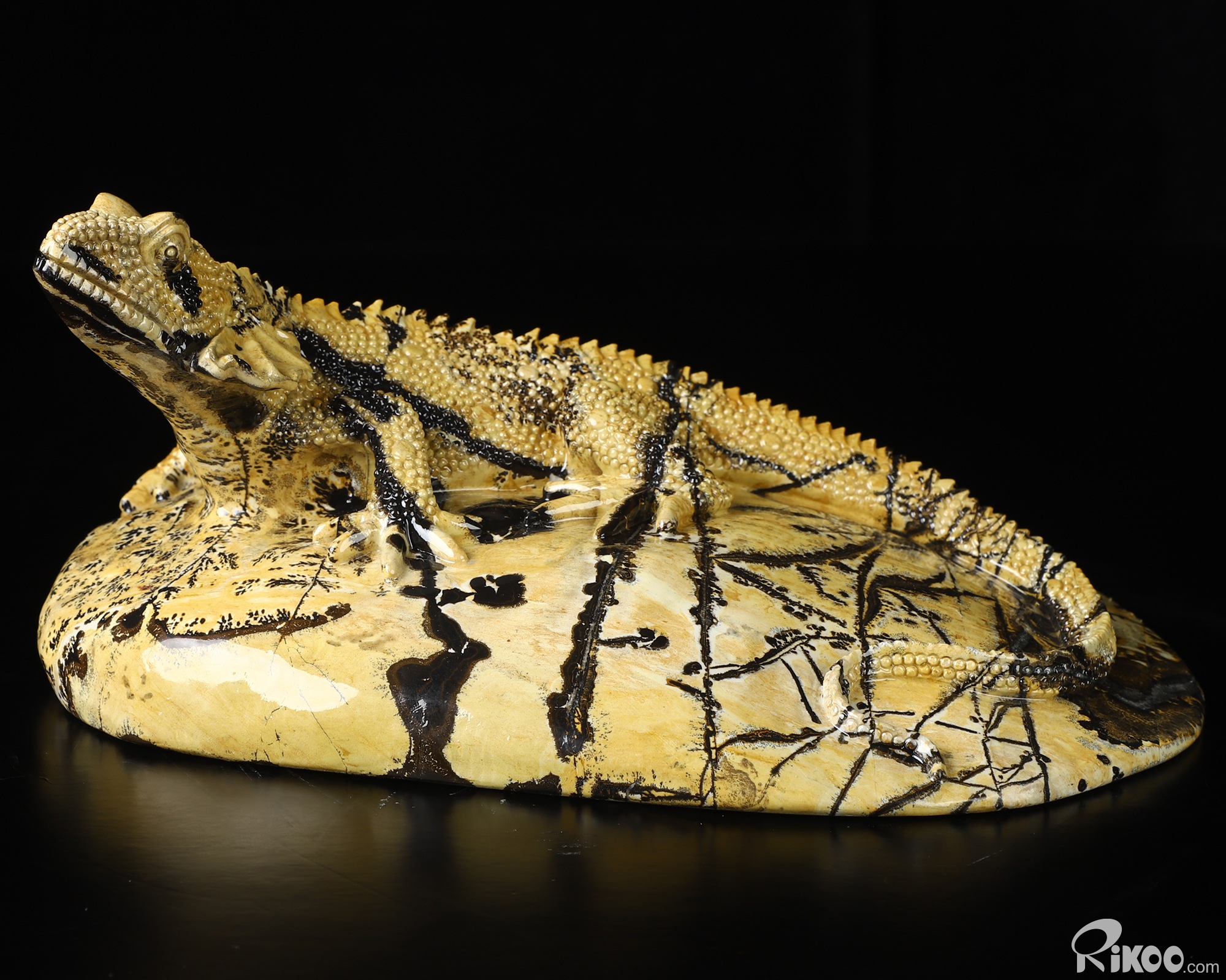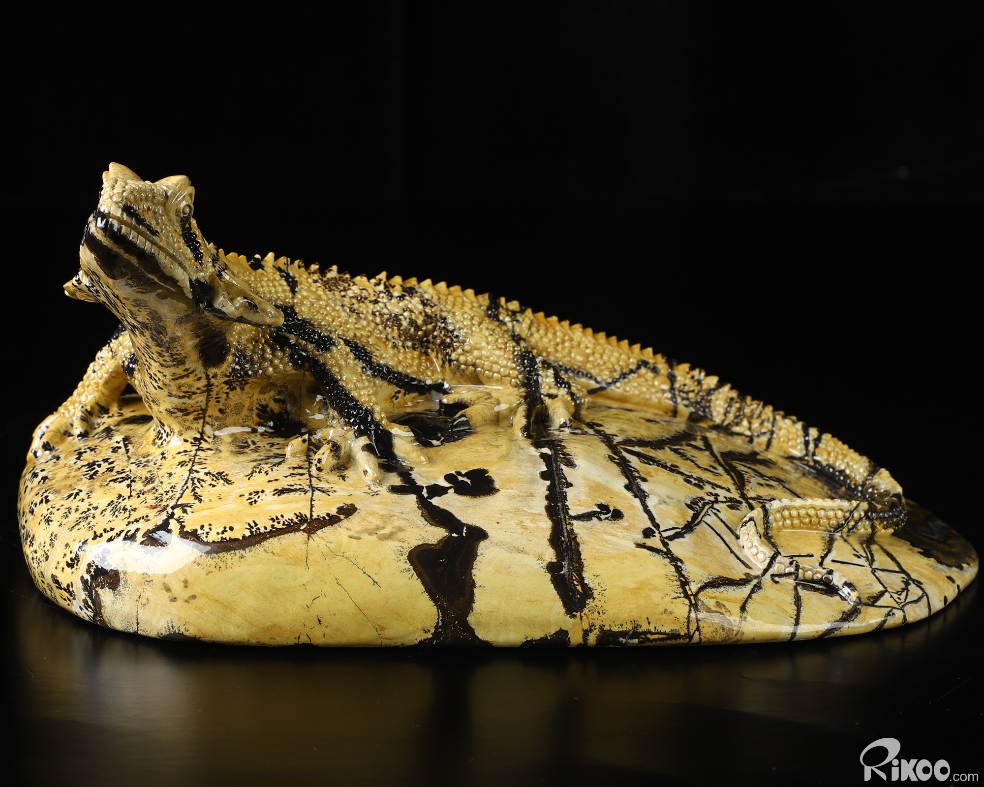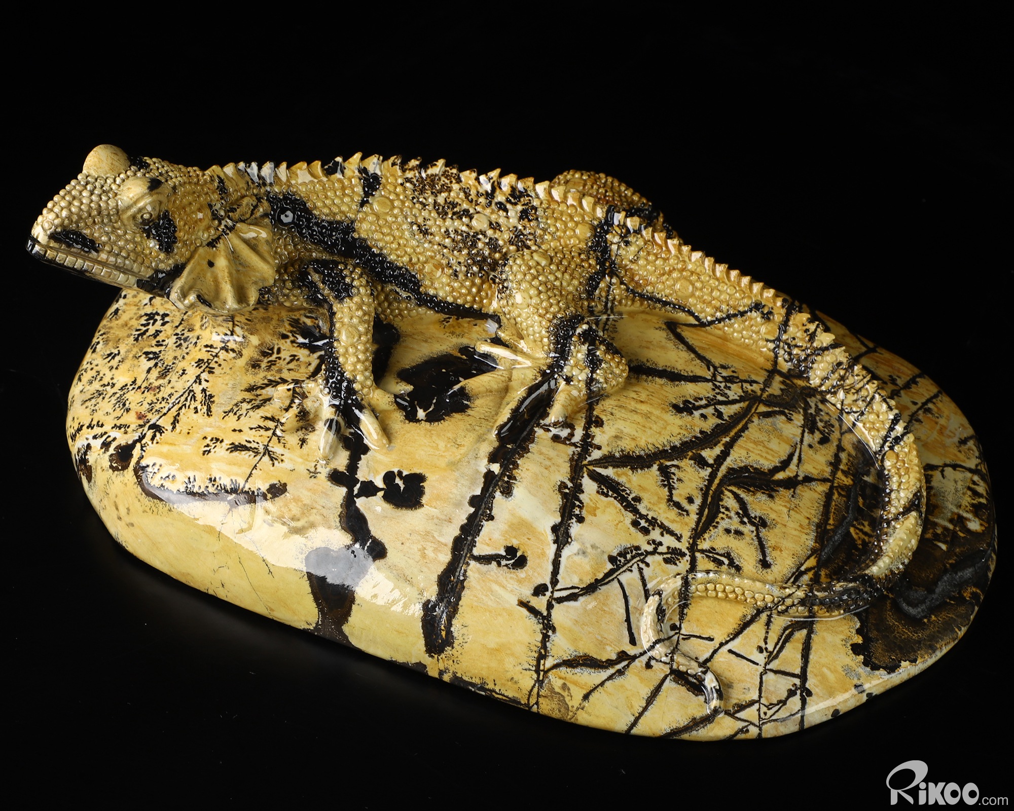 8.7" Chinese Painting Stone Hand Carved Crystal Lizard Sculpture, Crystal Healing