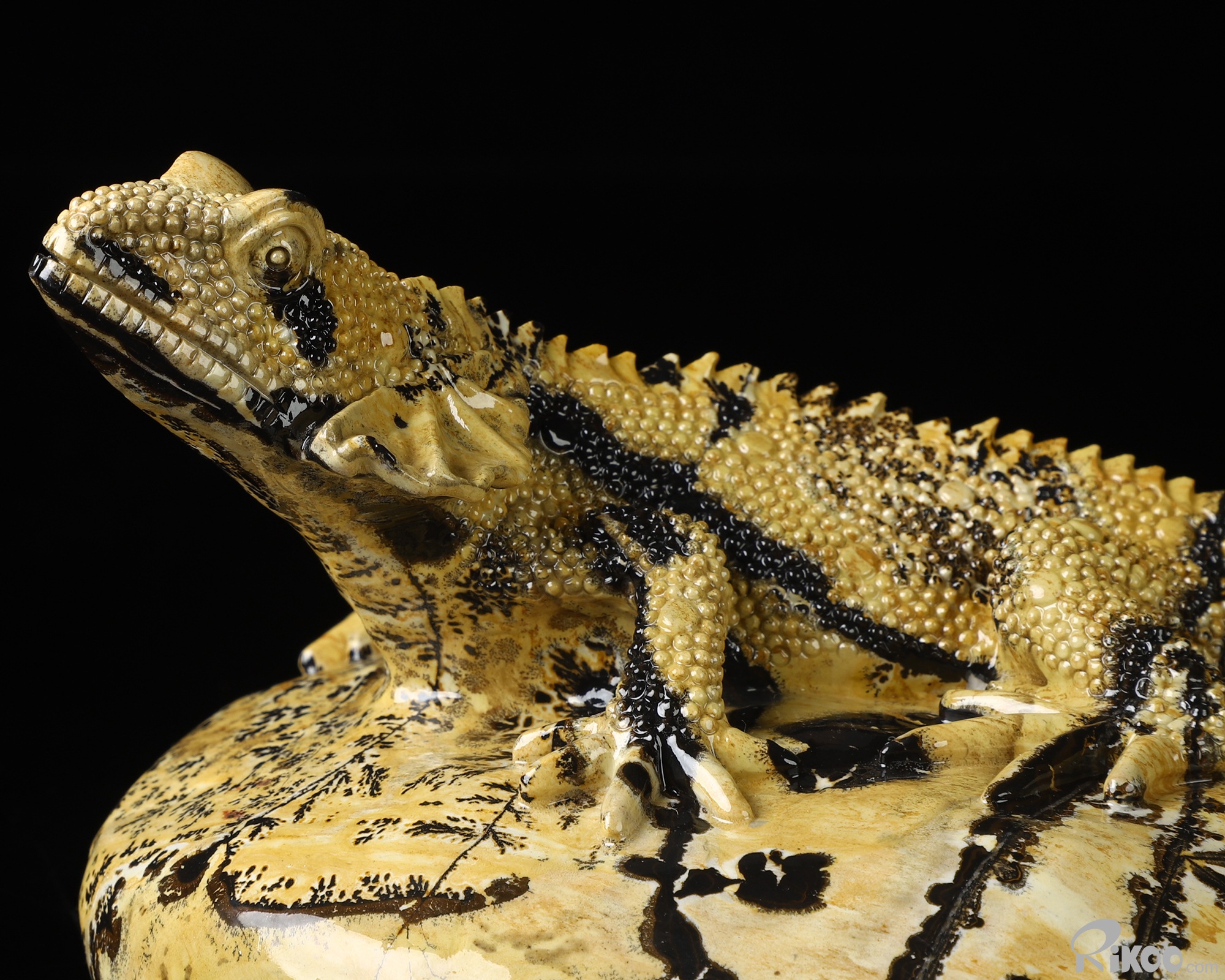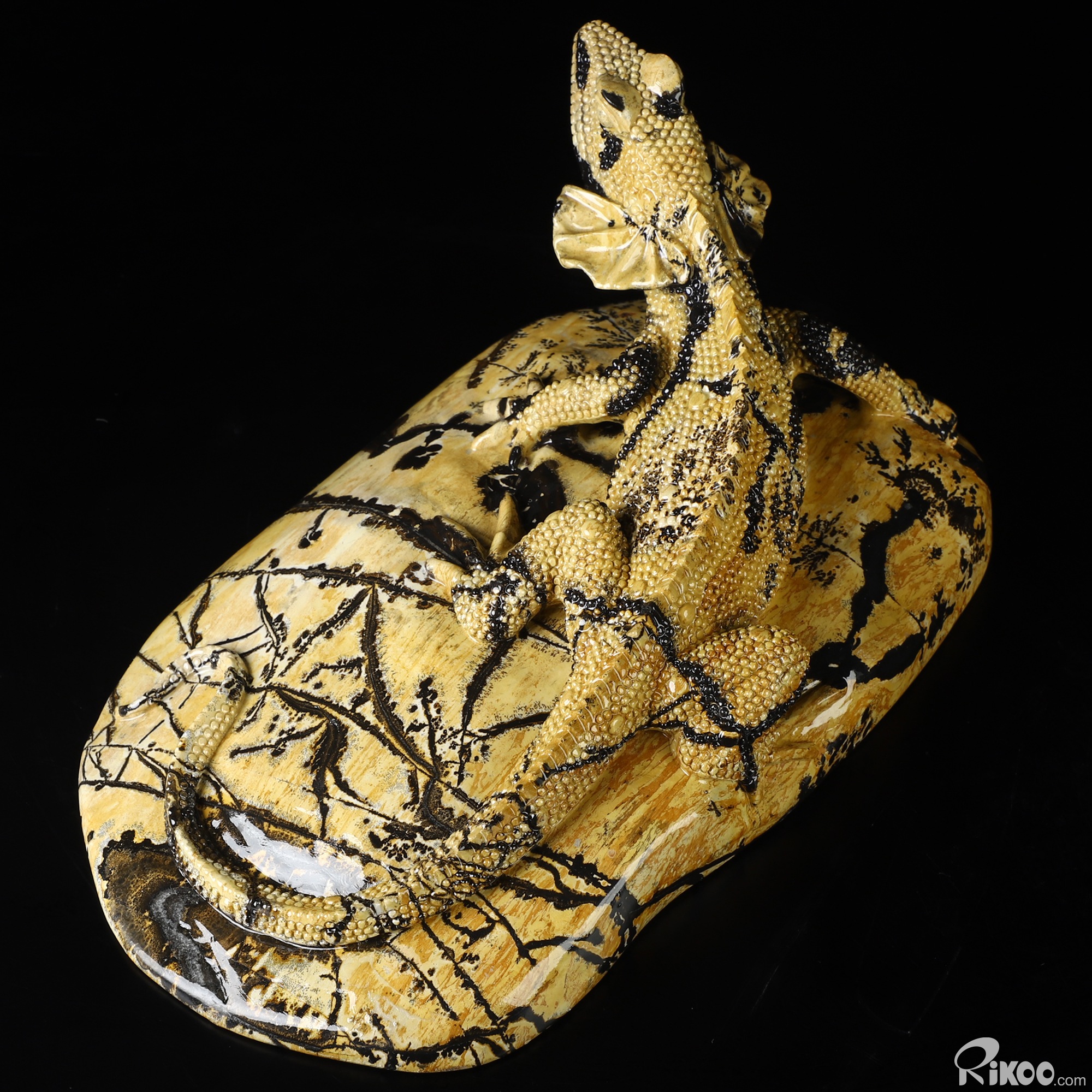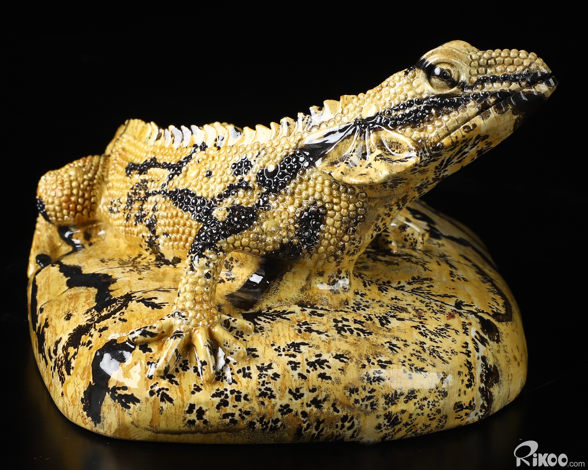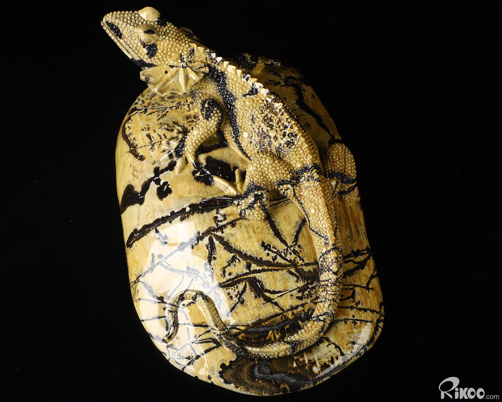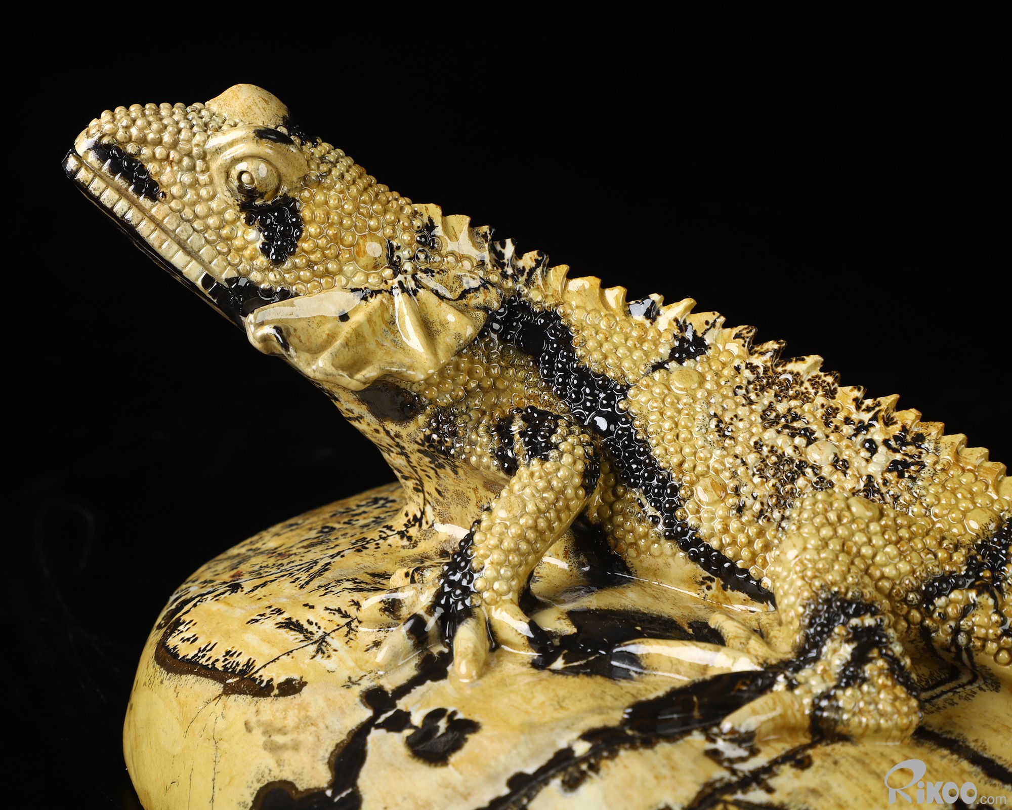 8.7" Chinese Painting Stone Hand Carved Crystal Lizard Sculpture, Crystal Healing