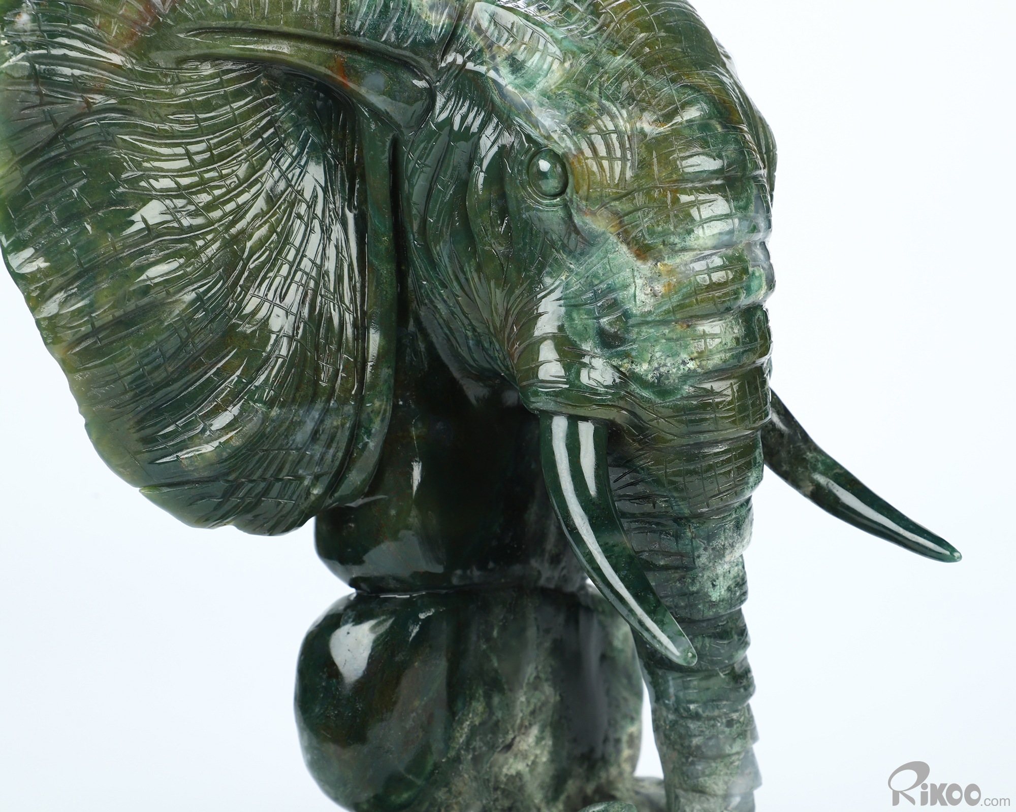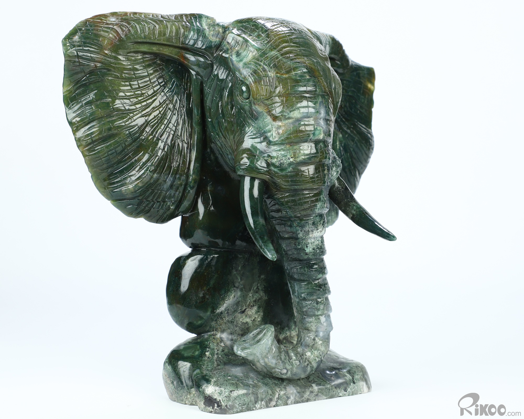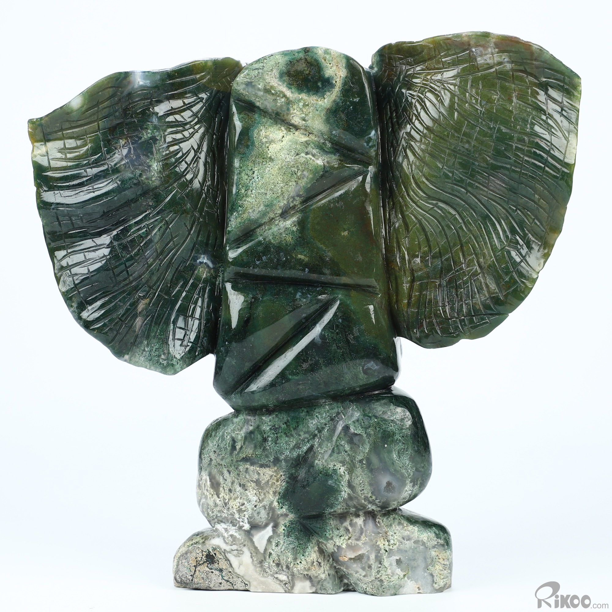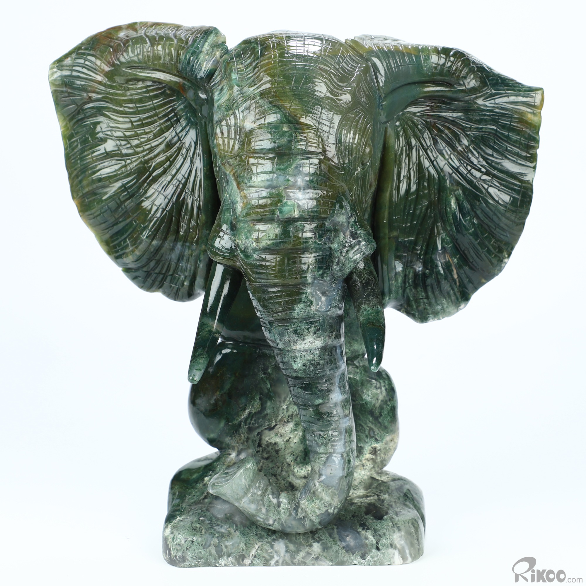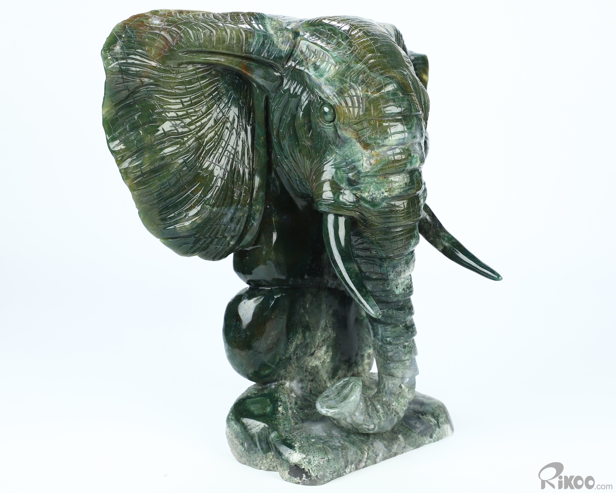 Giant 8.7" Indian Agate Hand Carved Crystal Elephant Sculpture, Crystal Healing
