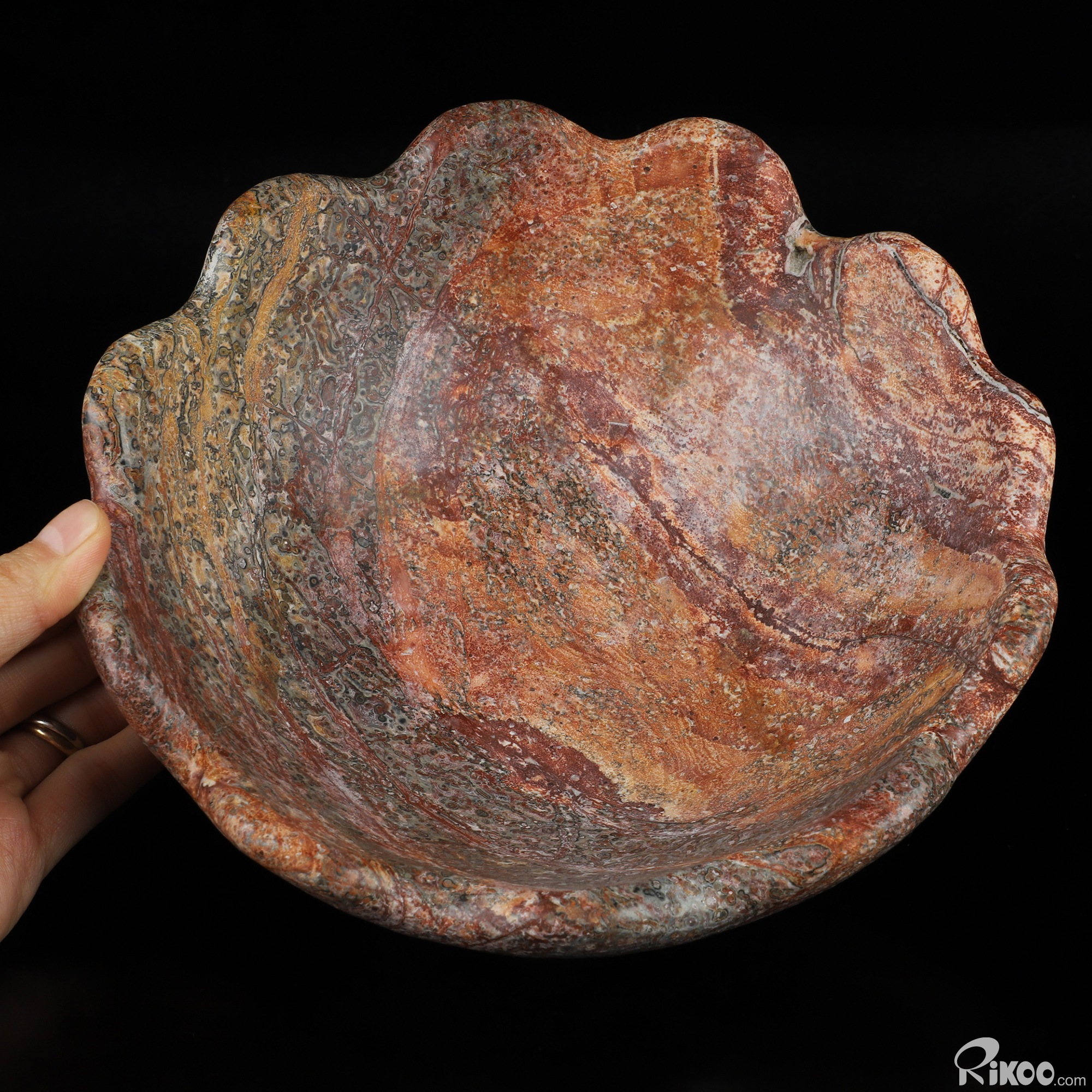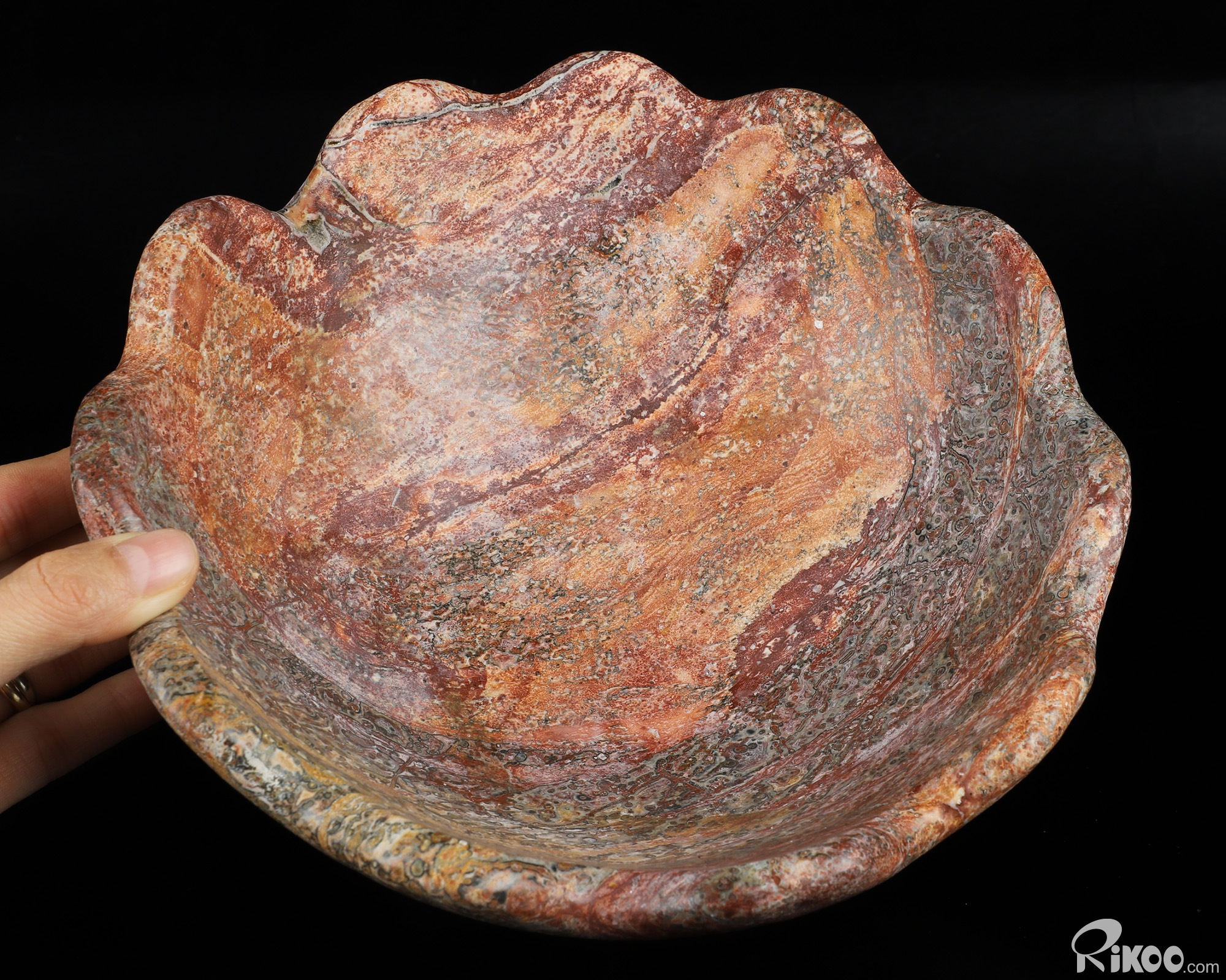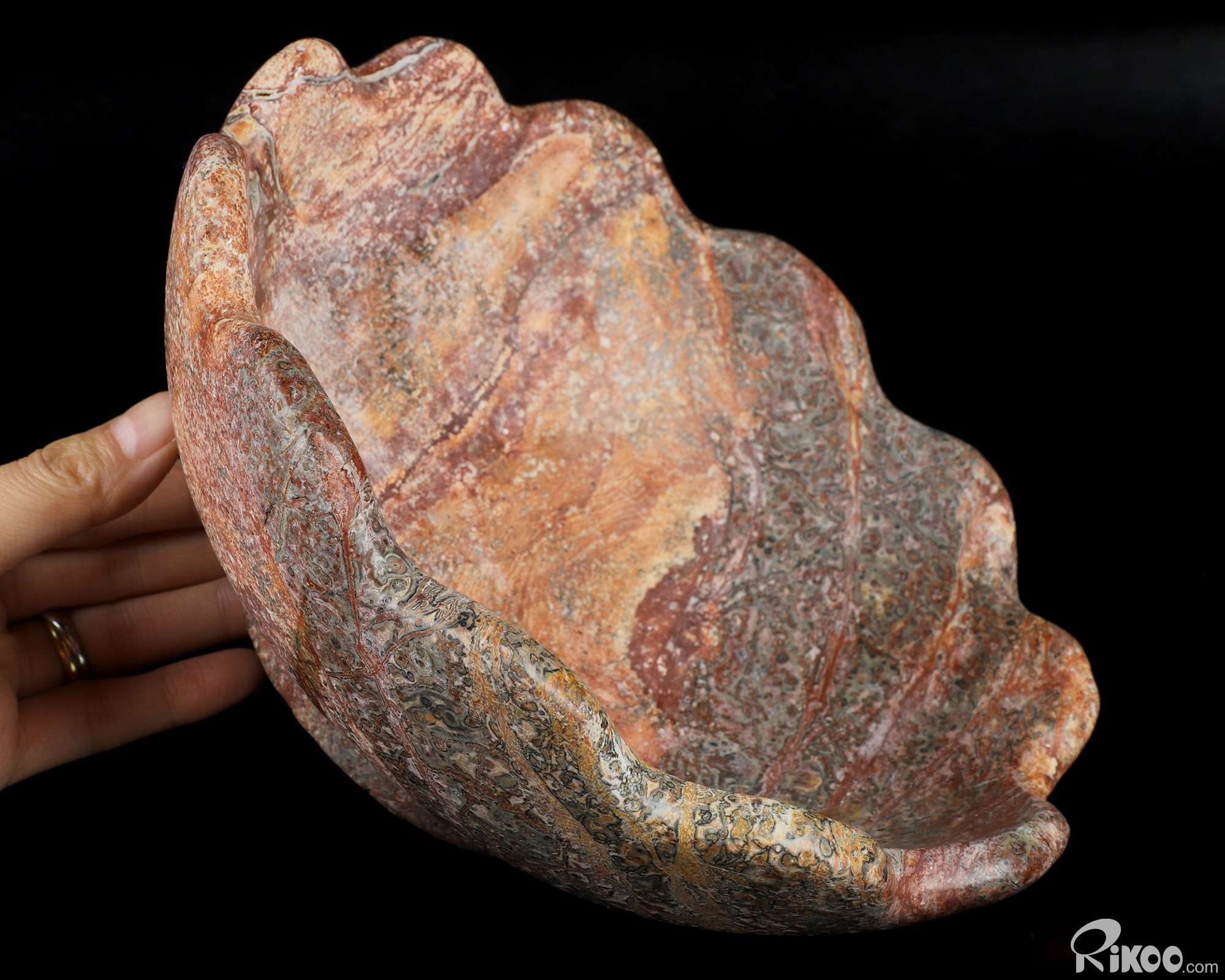 8.7" Leopard Skin Jasper Hand Carved Crystal Bowl, Crystal Healing