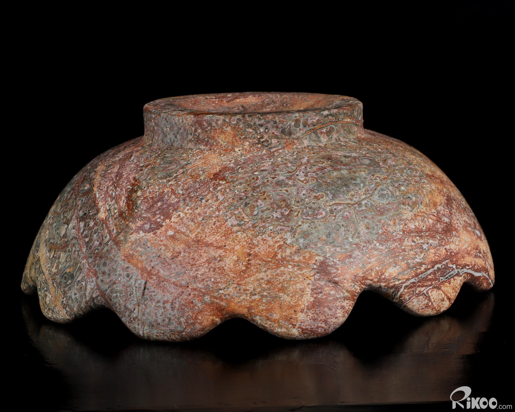 You are looking at a Leopard Skin Jasper sculpture. The sculpture is 8.7 inches long.