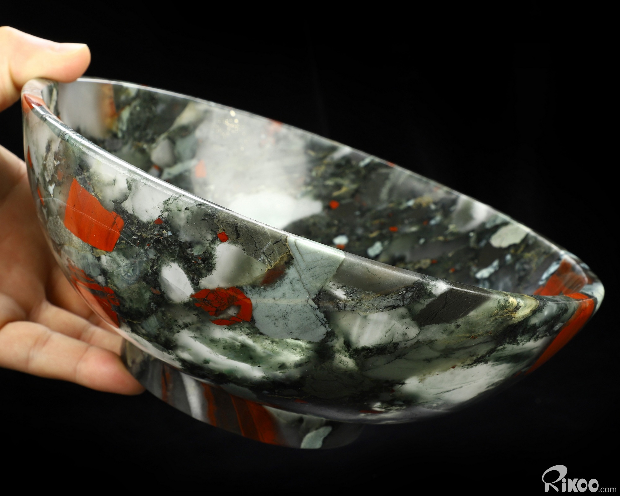 8.8" Bloodstone Hand Carved Crystal Bowl, Crystal Healing