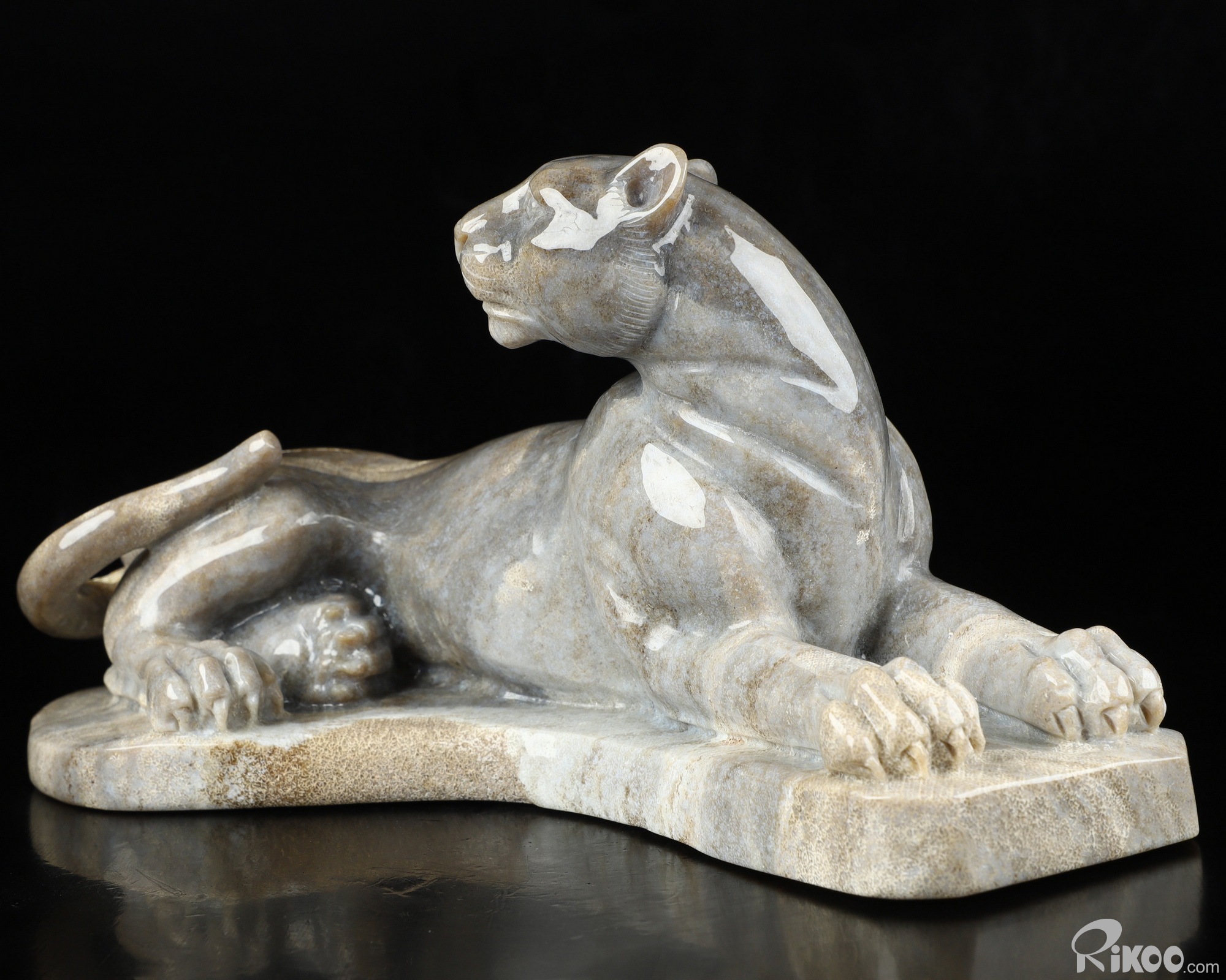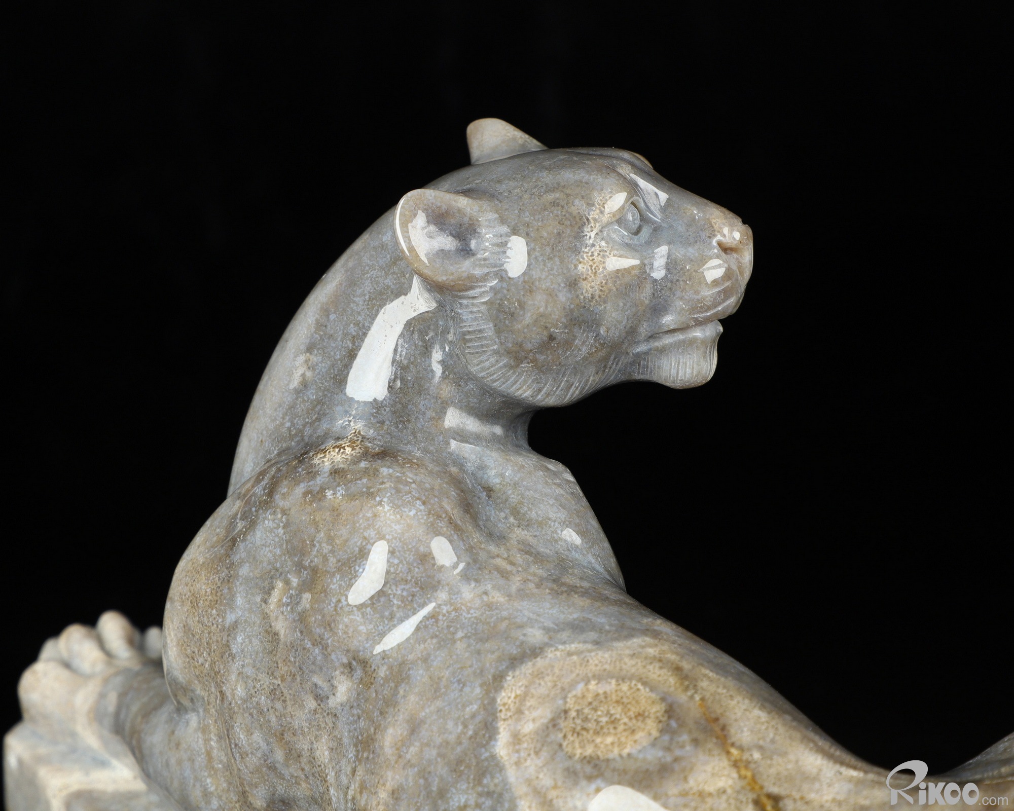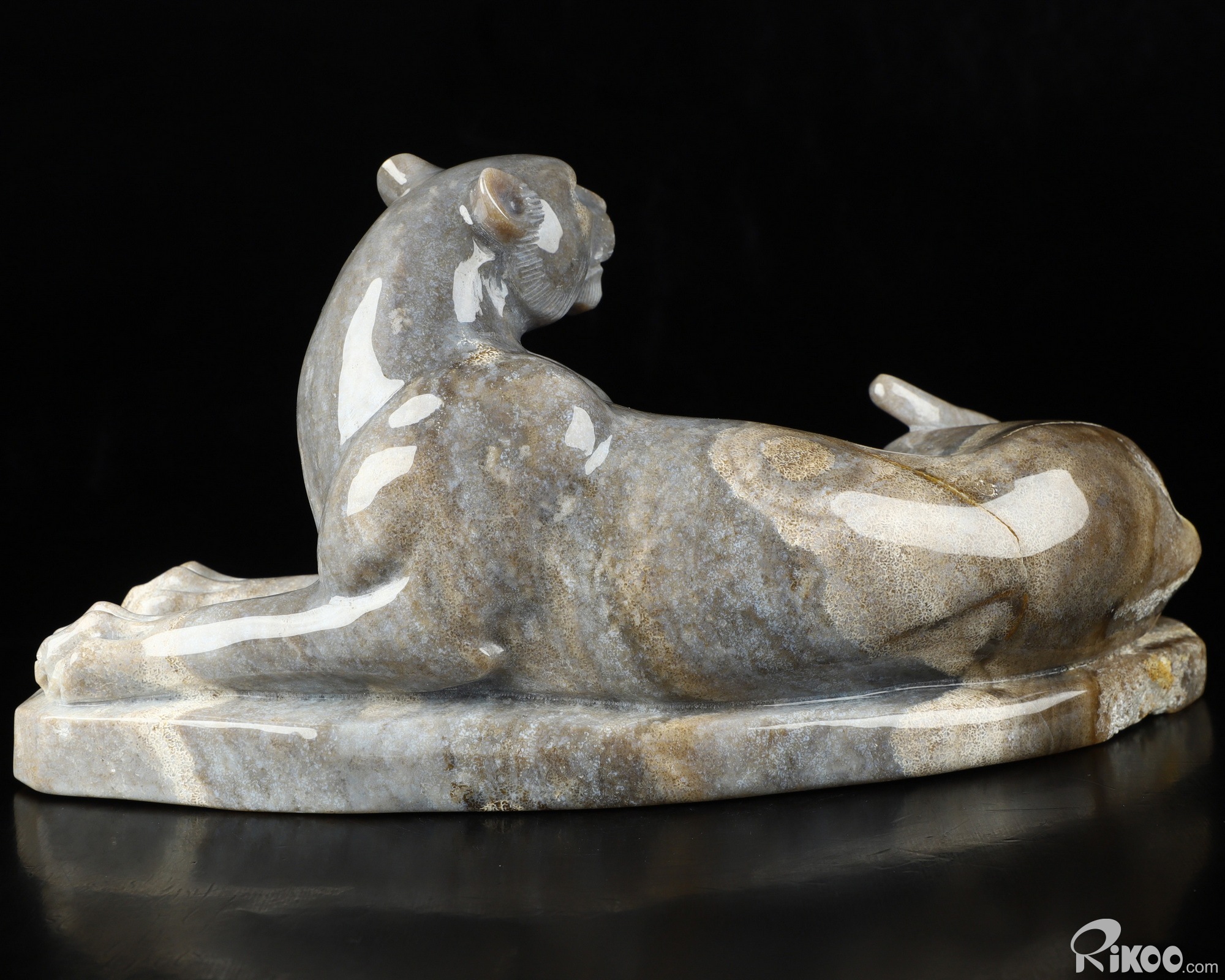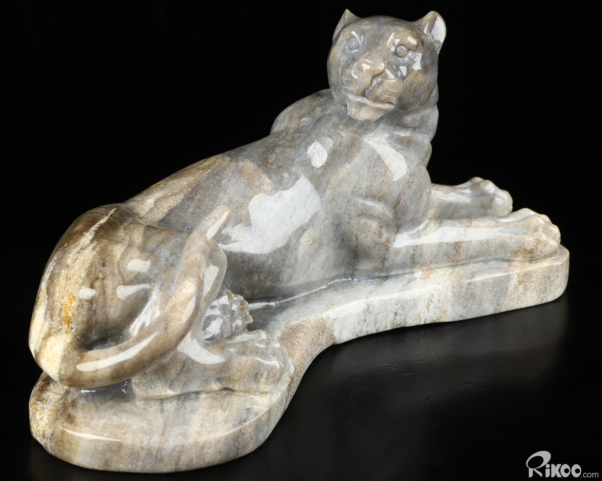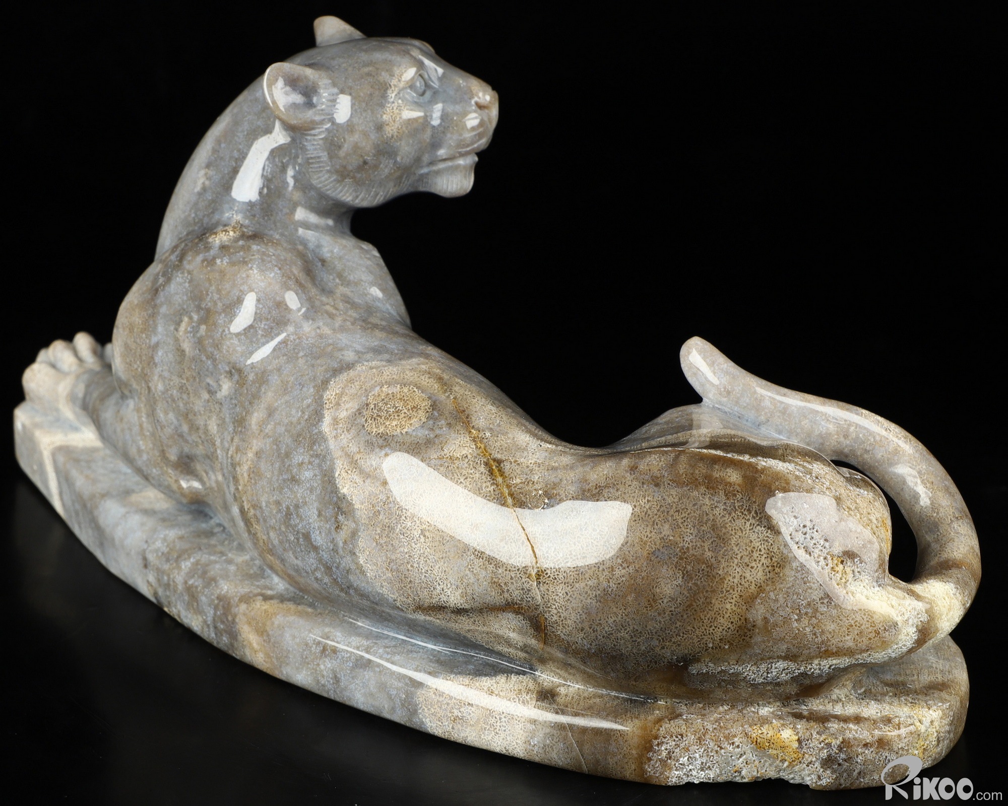 8.8" Petrified Wood Carved Crystal Leopard Sculpture, Realistic
