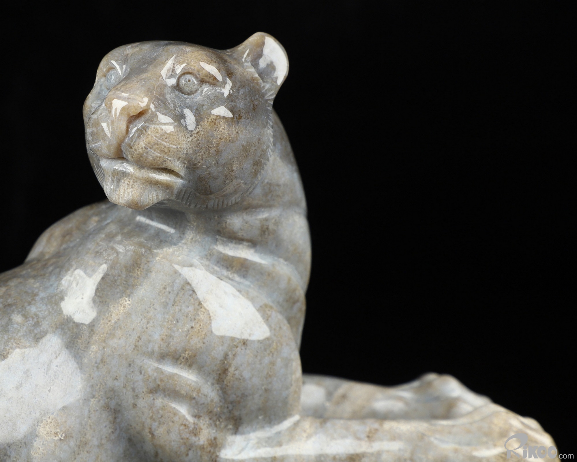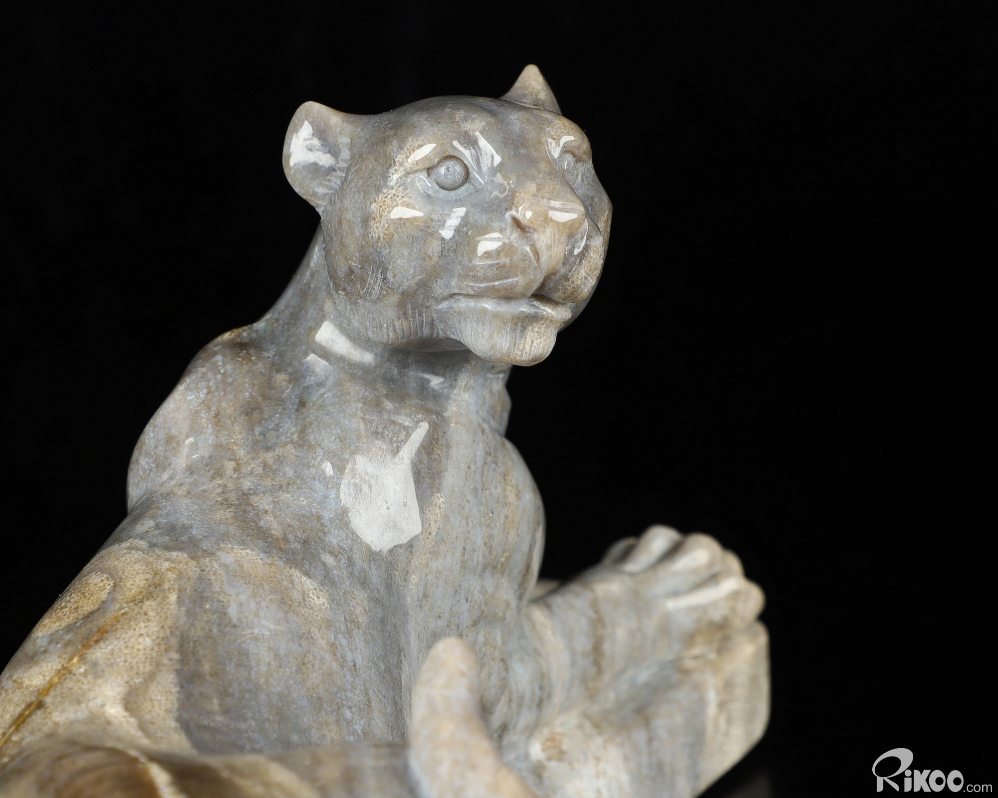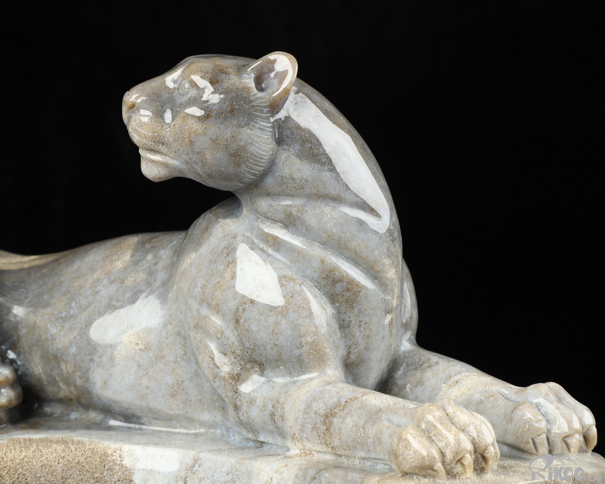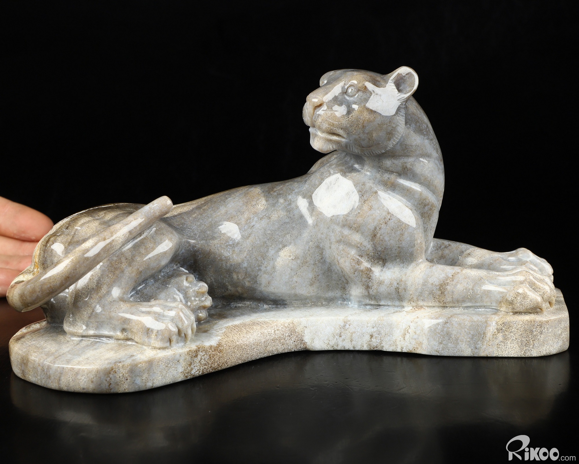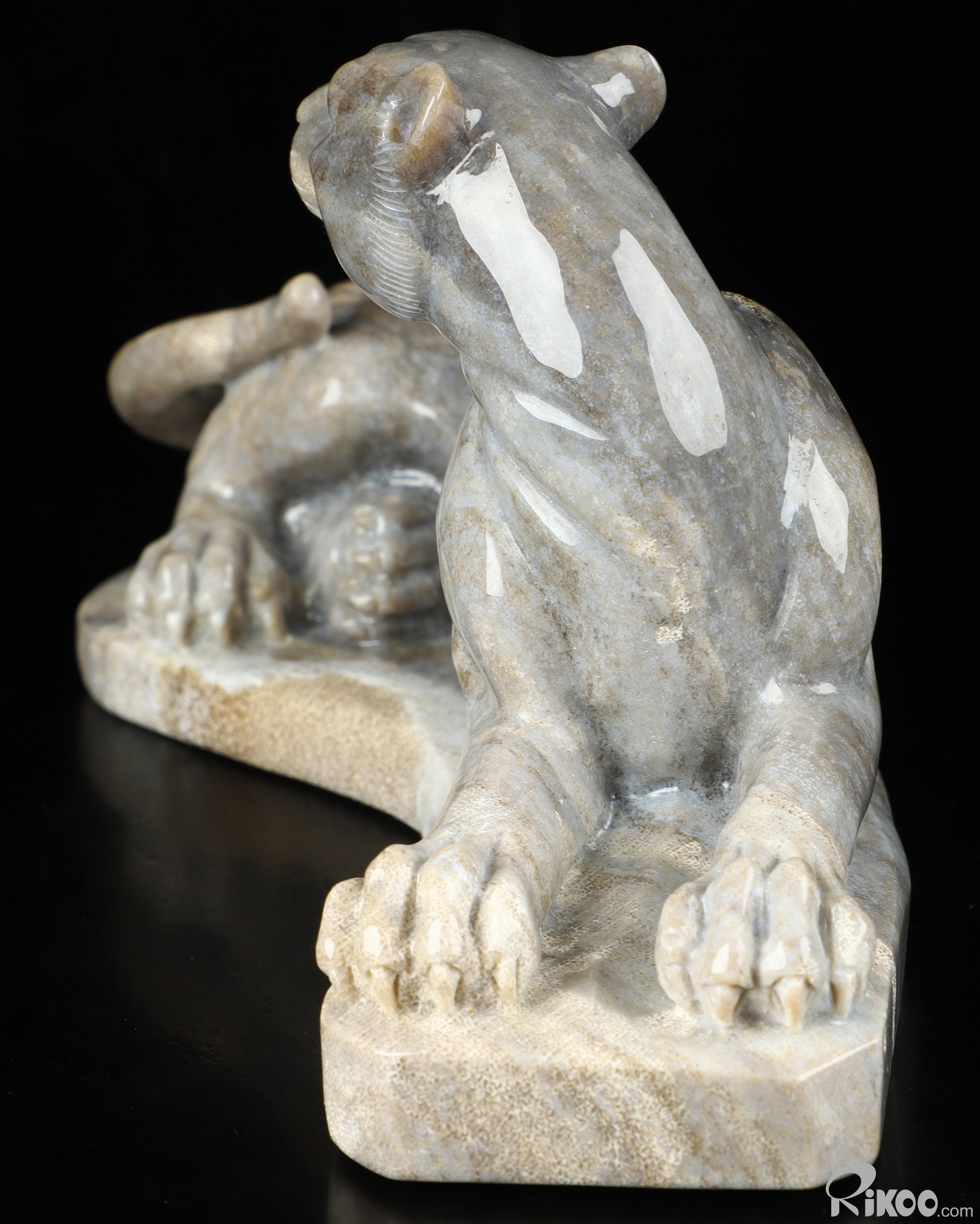 8.8" Petrified Wood Carved Crystal Leopard Sculpture, Realistic