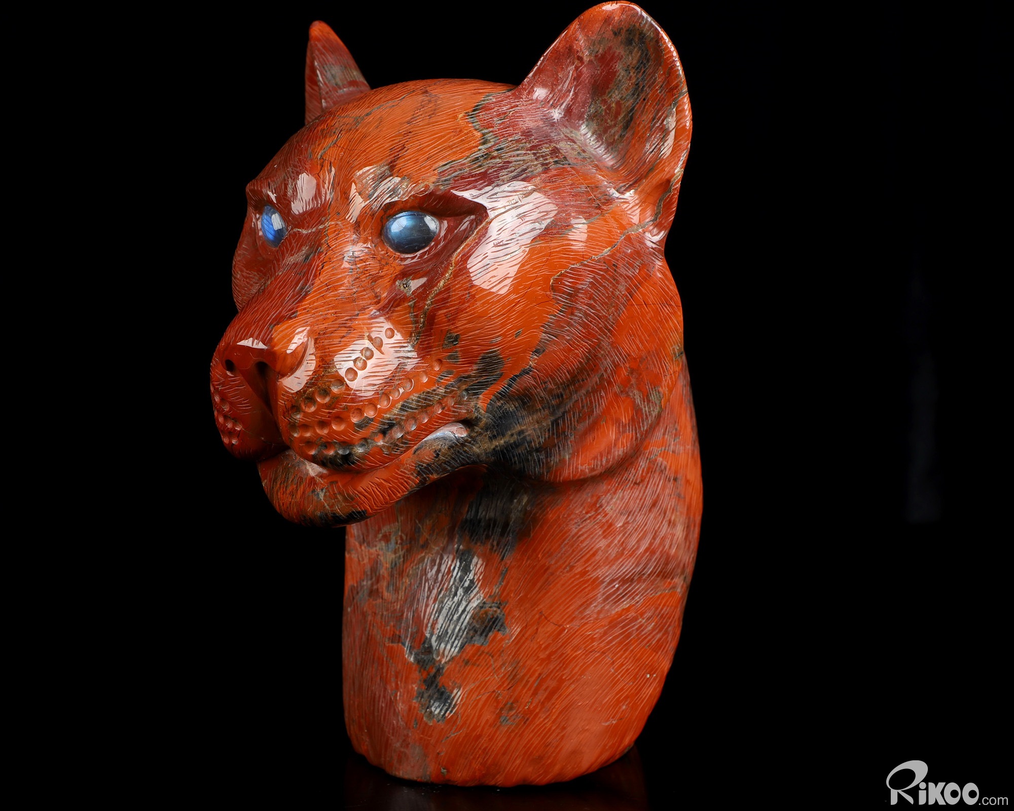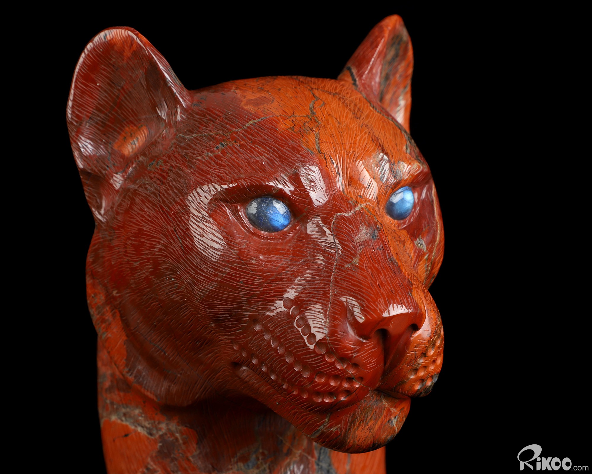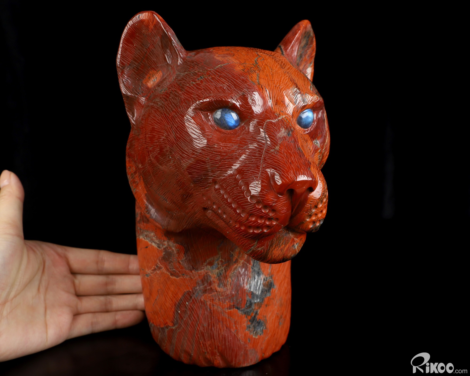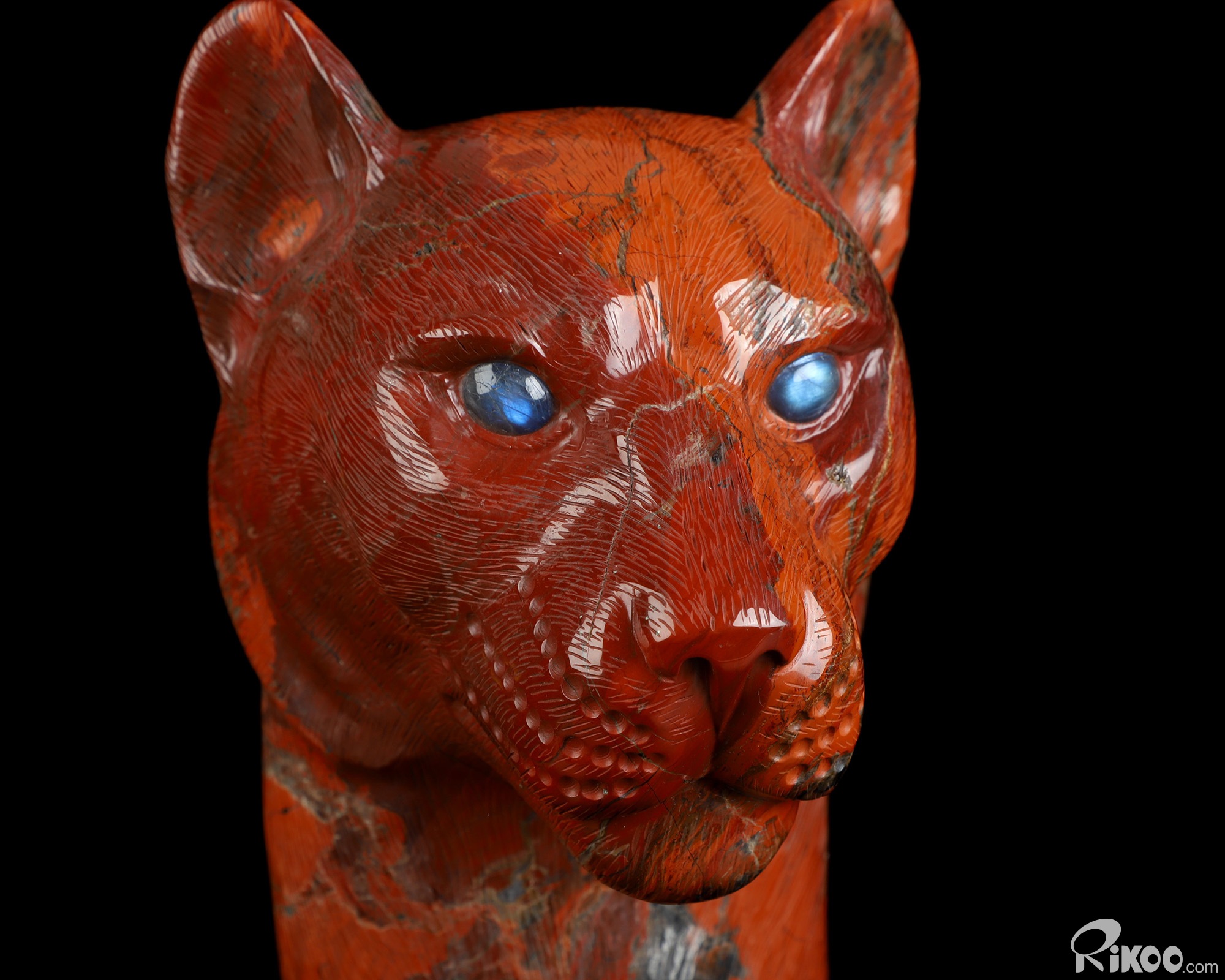 Fireborn Guardian - 8.8" Red Jasper Hand Carved Crystal Leopard Sculpture, Crystal Healing