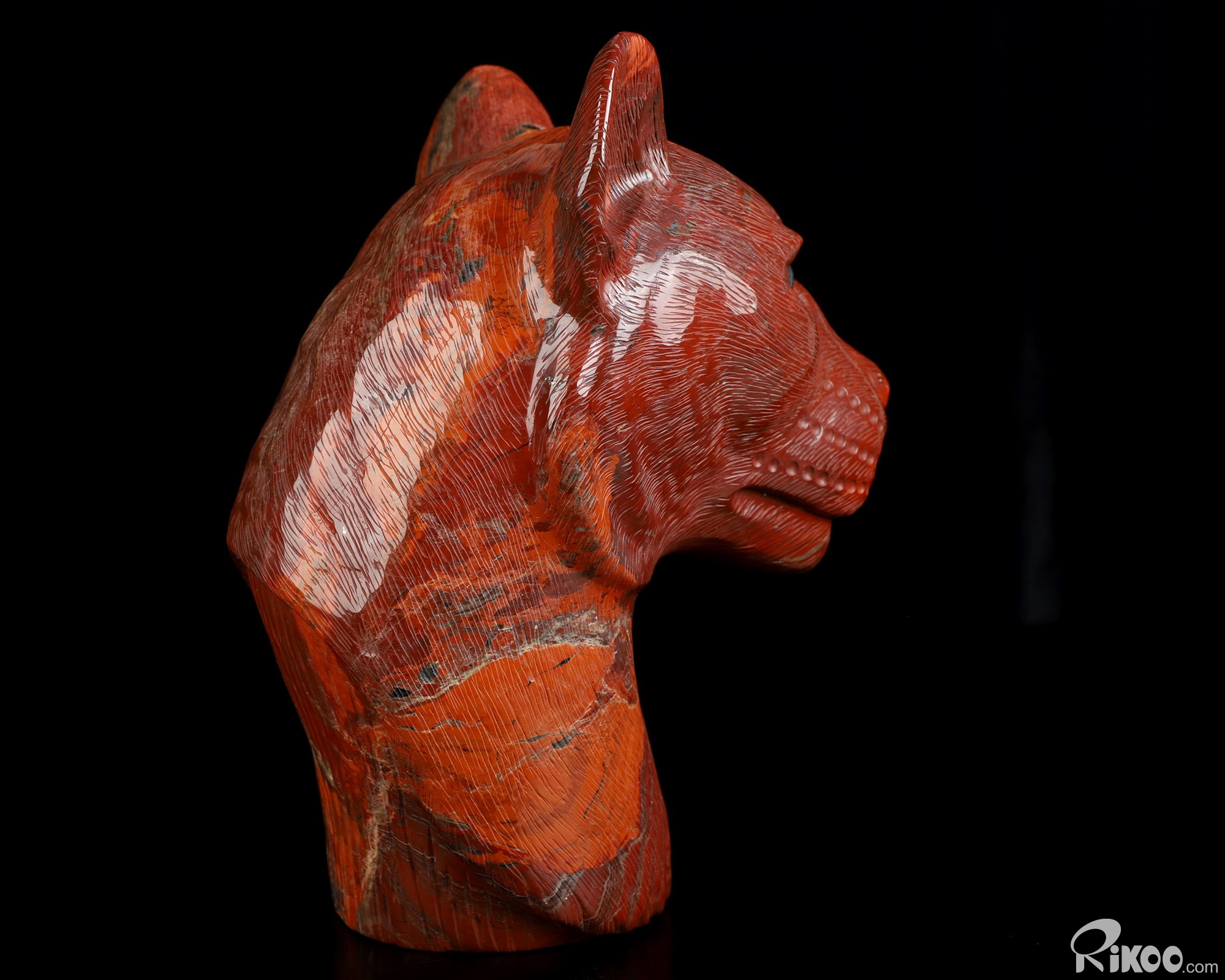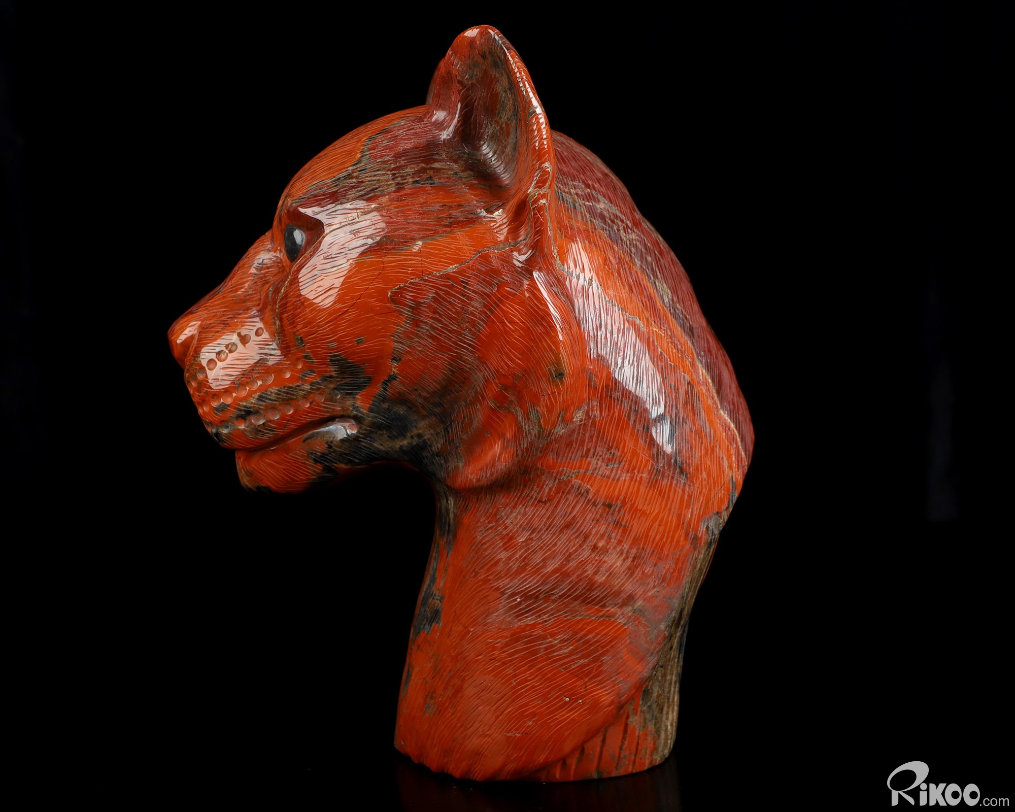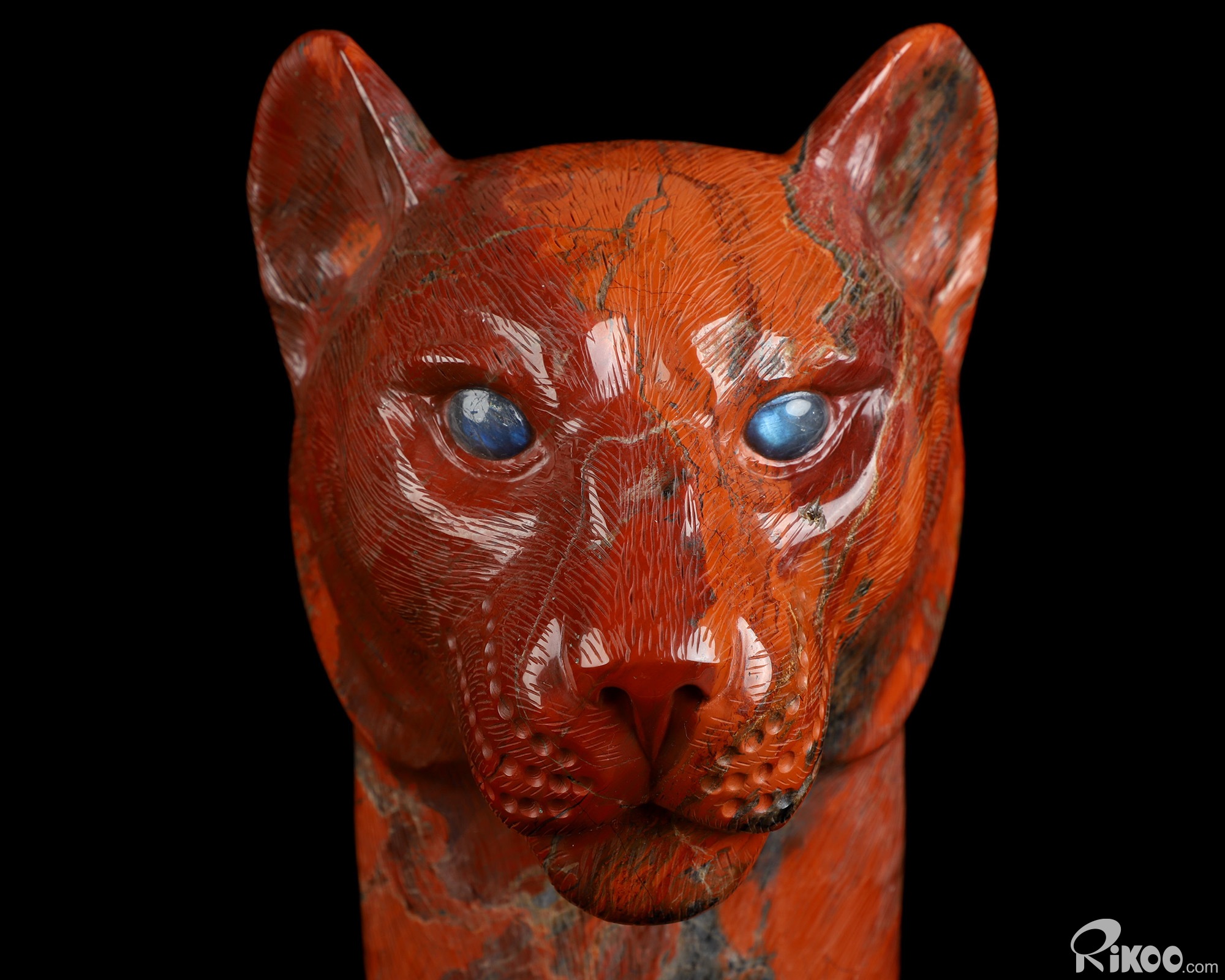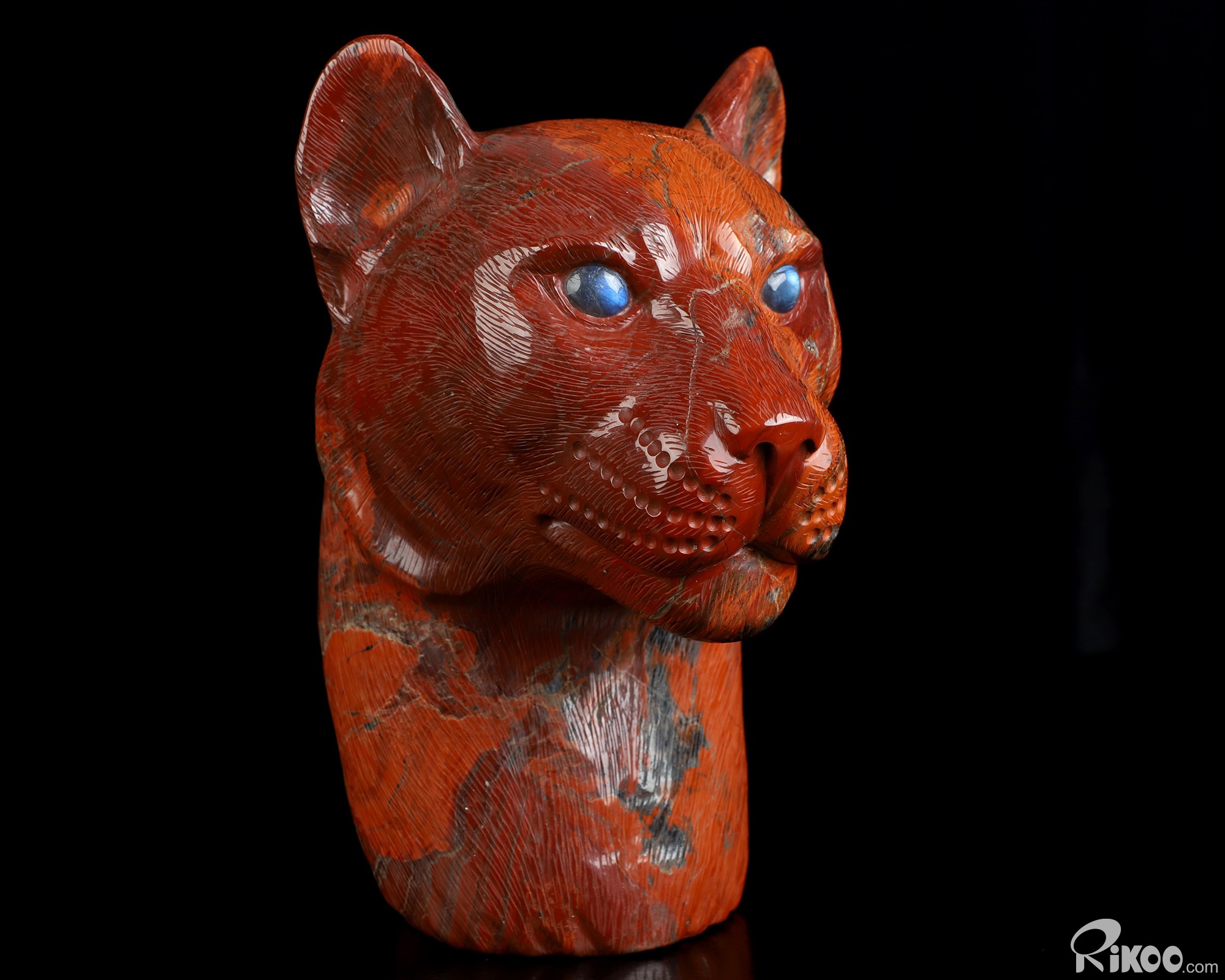 Fireborn Guardian - 8.8" Red Jasper Hand Carved Crystal Leopard Sculpture, Crystal Healing