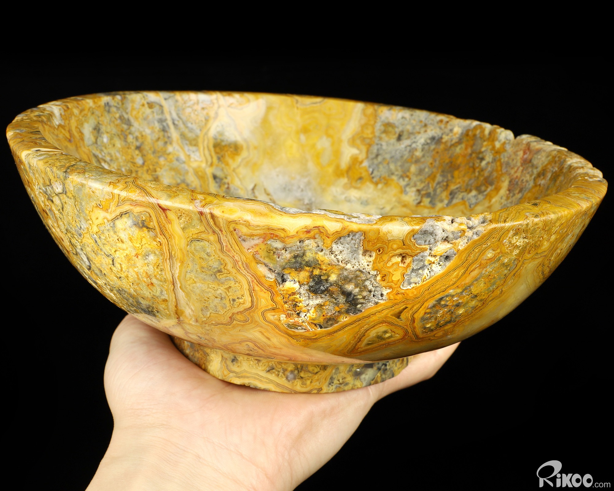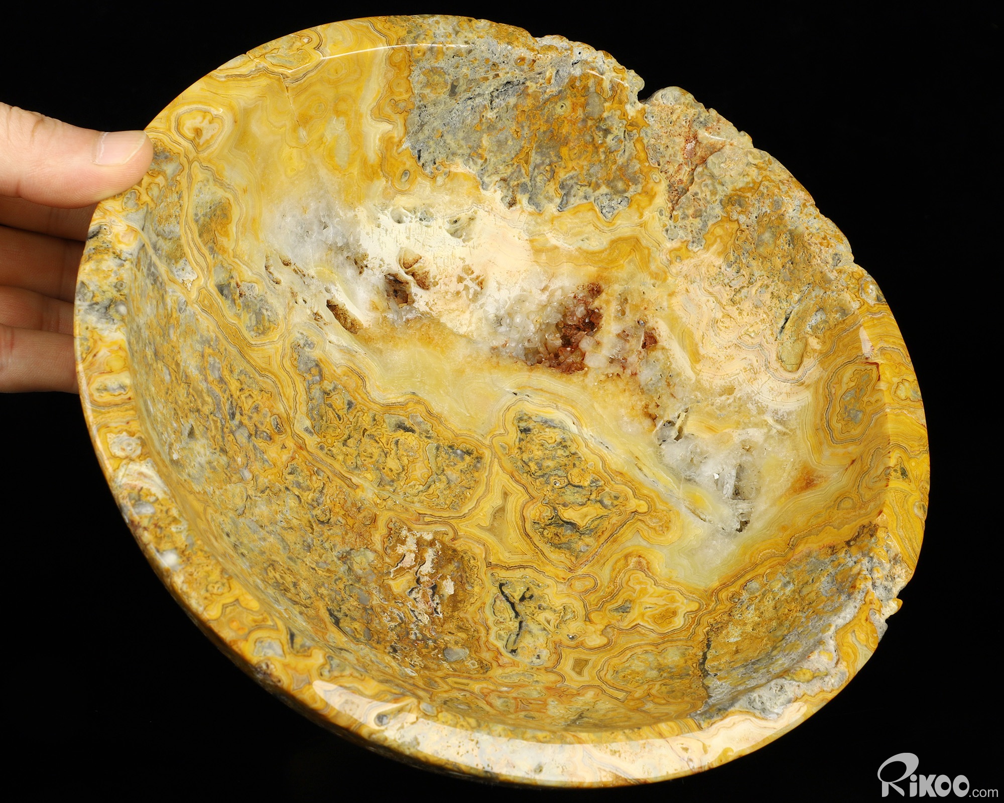 8.9" Crazy Lace Agate Hand Carved Crystal Bowl, Crystal Healing