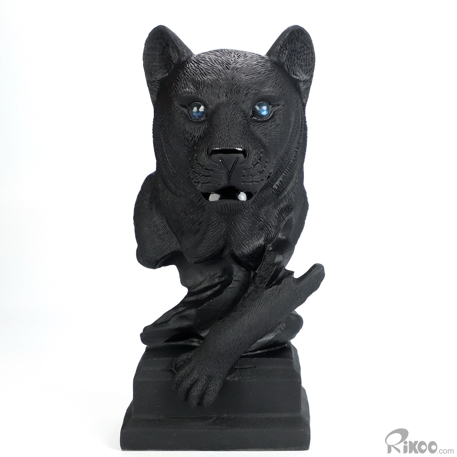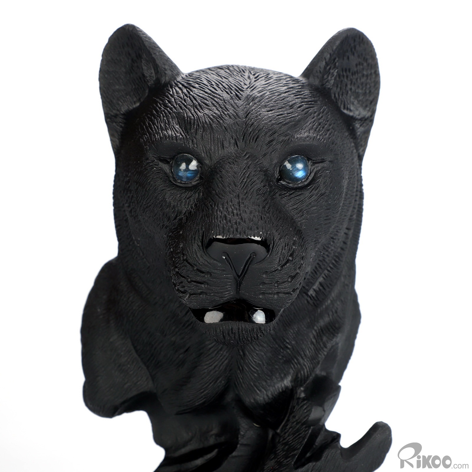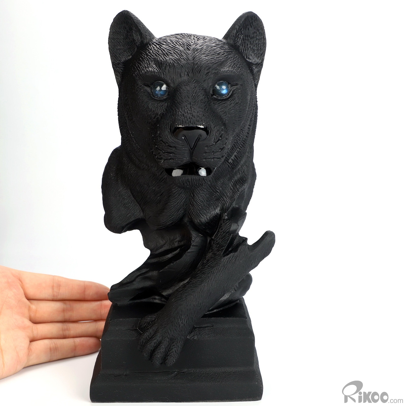 8.9" Frosted Black Obsidian Hand Carved Crystal Leopard Sculpture, Crystal Healing