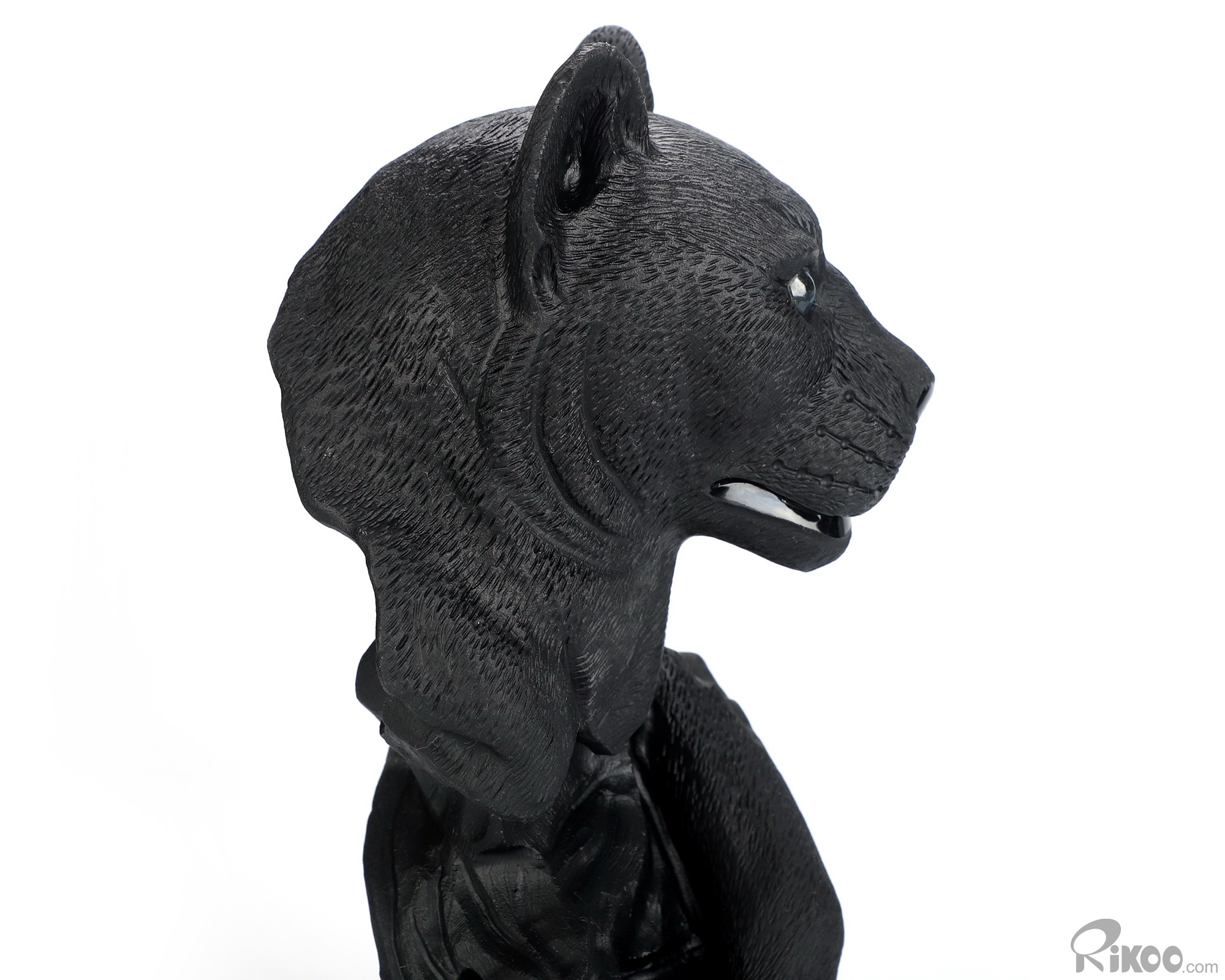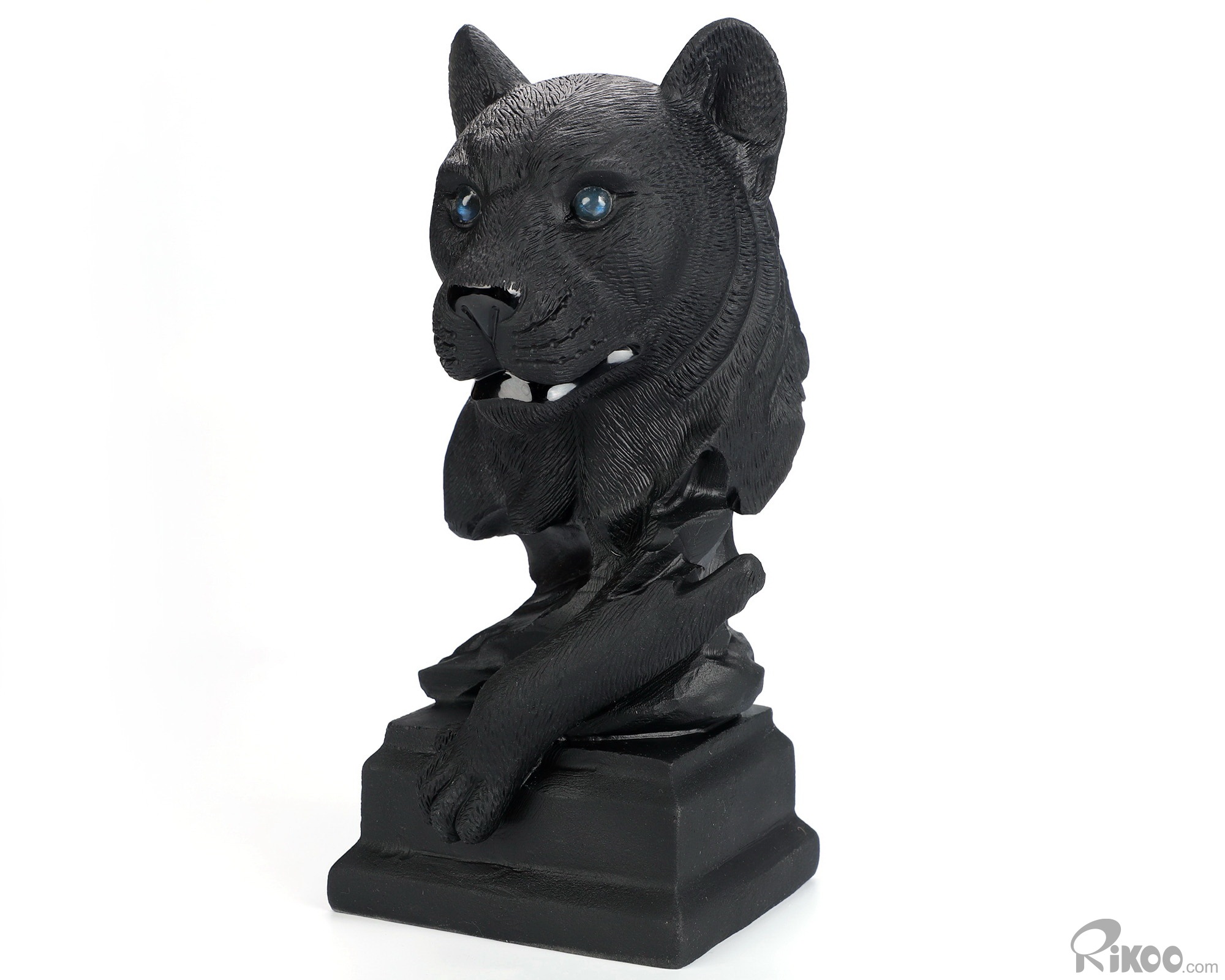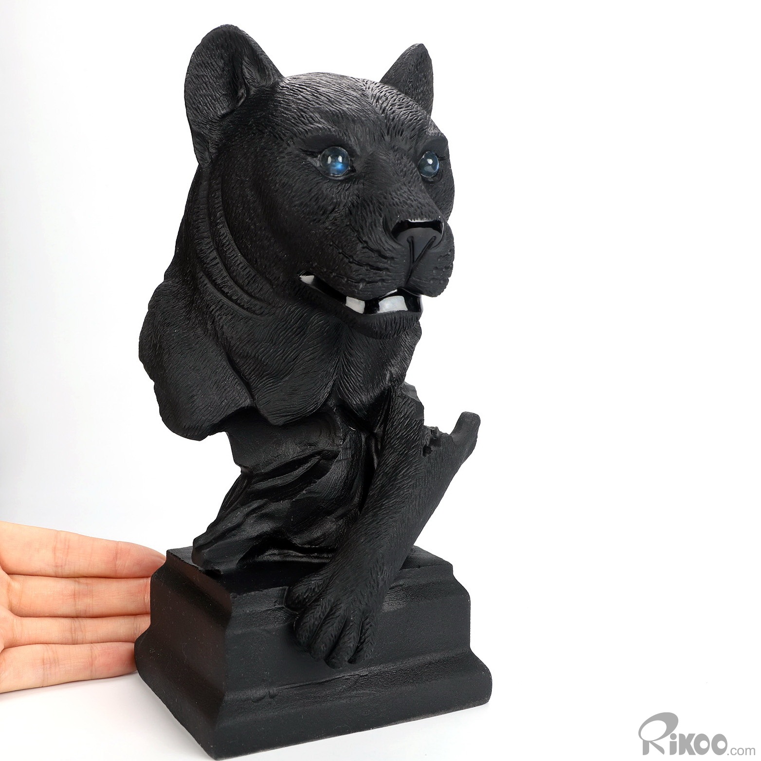 8.9" Frosted Black Obsidian Hand Carved Crystal Leopard Sculpture, Crystal Healing