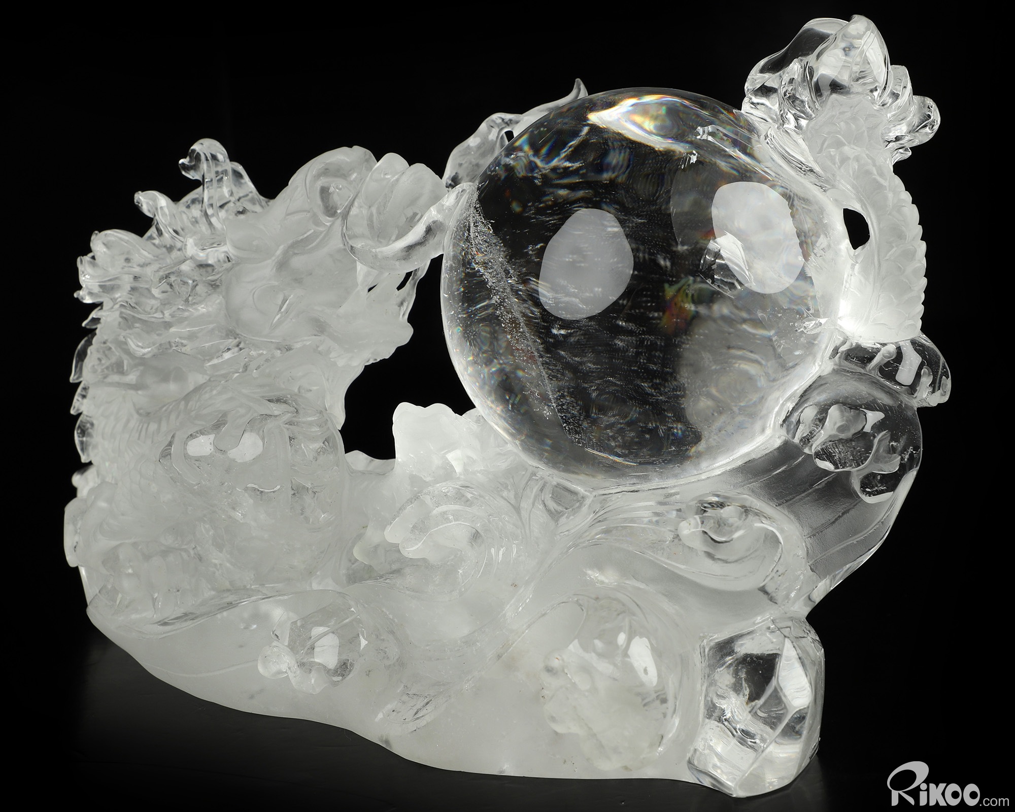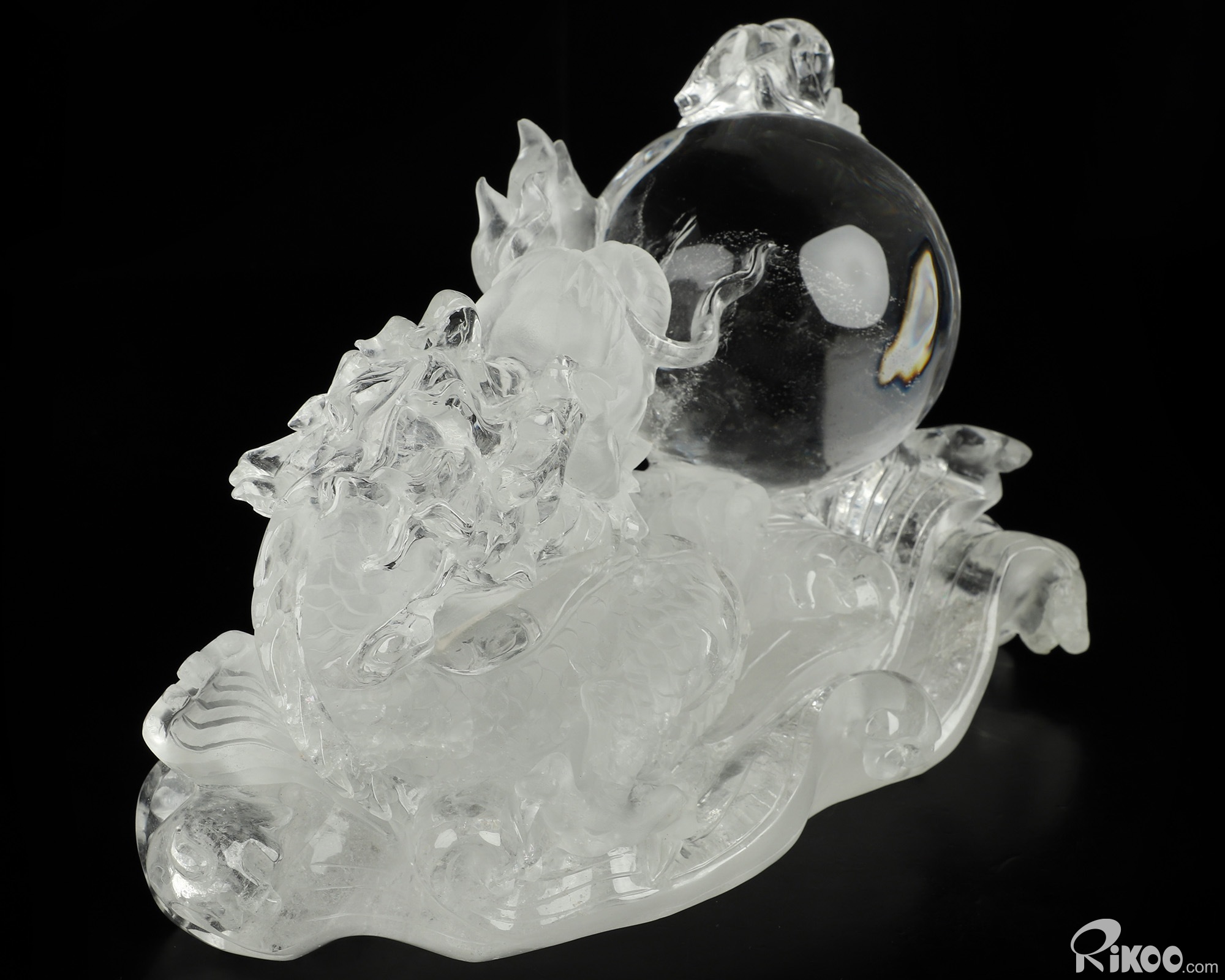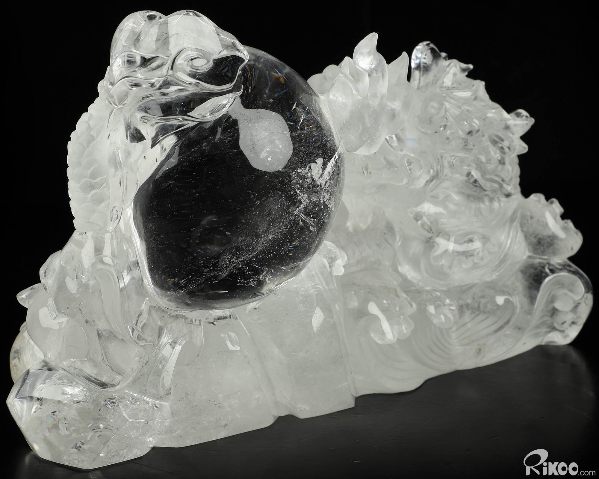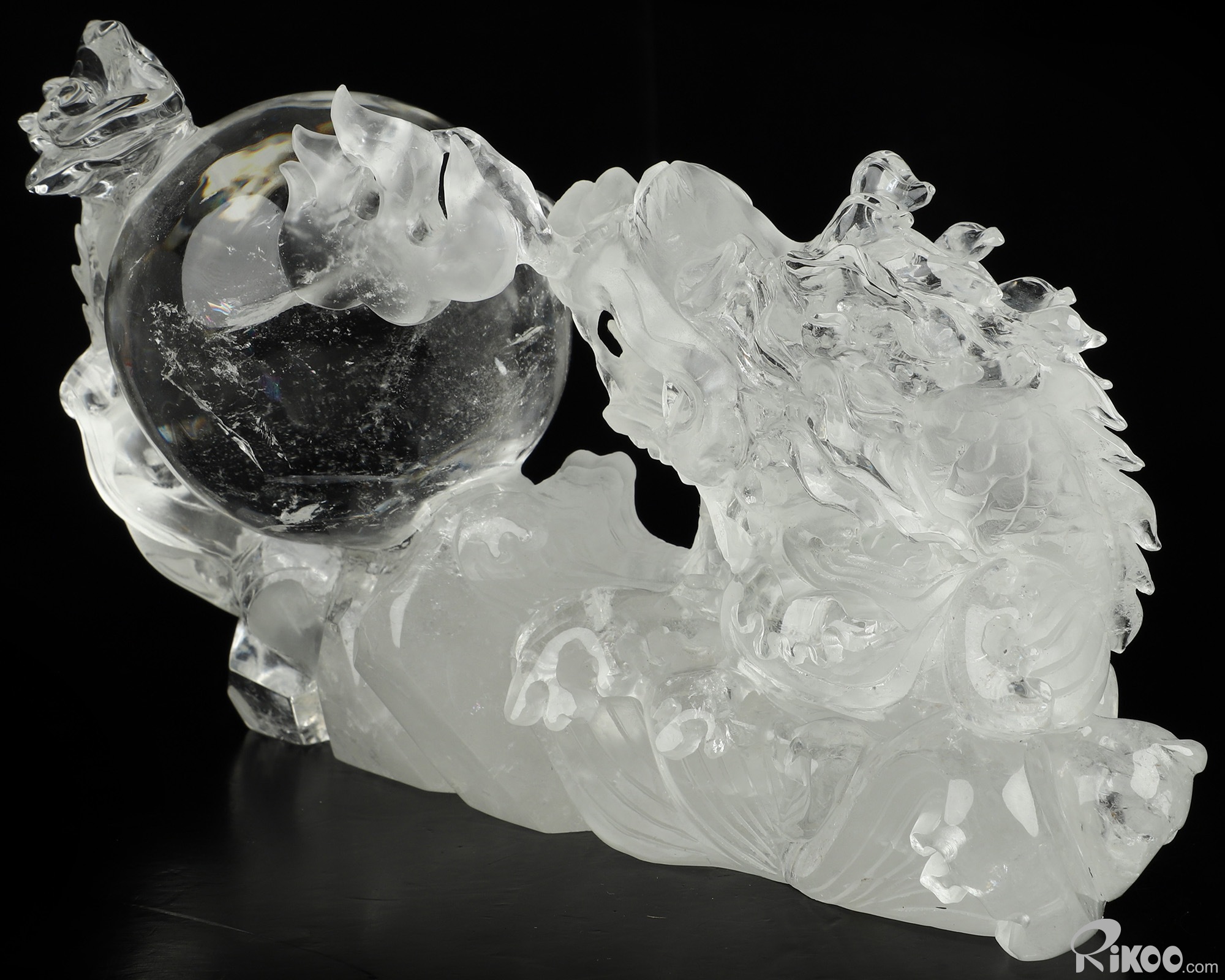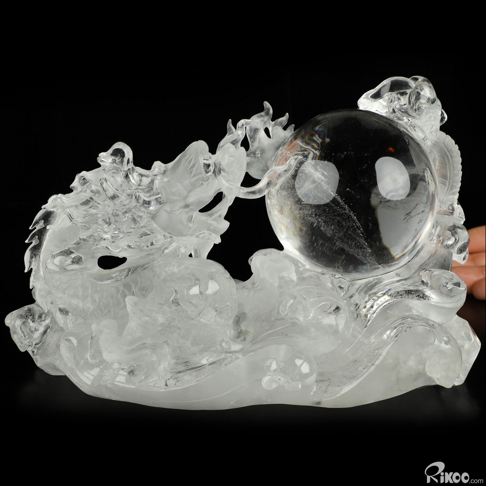 8.9" Quartz Rock Crystal Hand Carved Crystal Dragon Sculpture, Crystal Healing