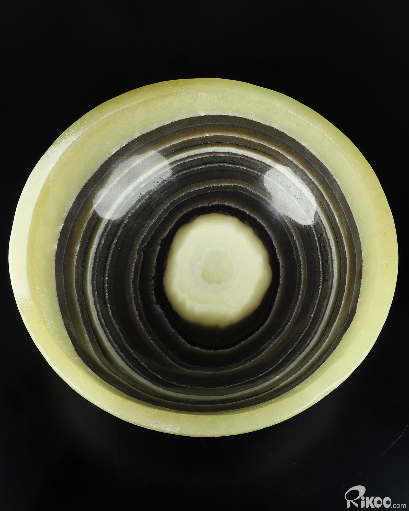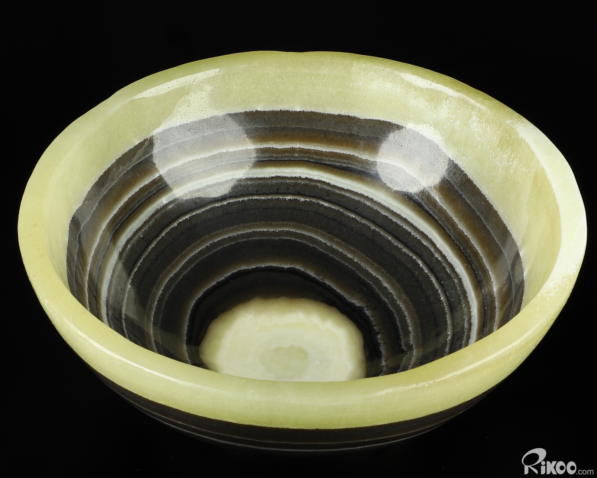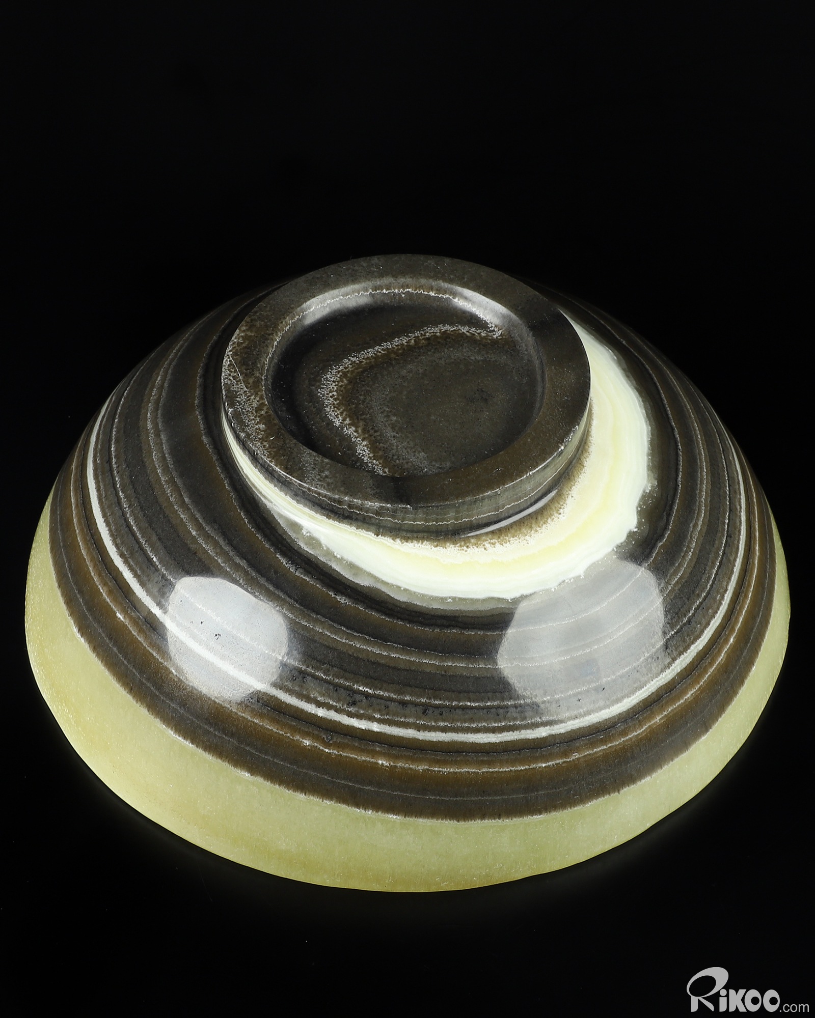 You are looking at a Zebra Calcite bowl sculpture. The sculpture is 8.9 inches long.