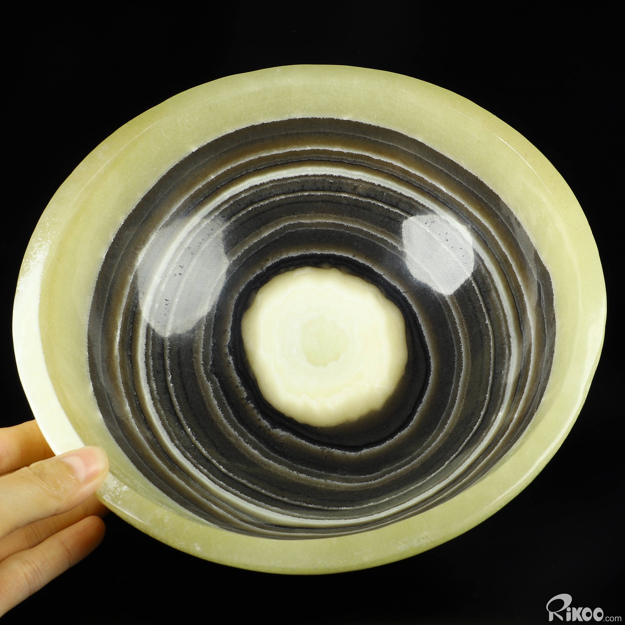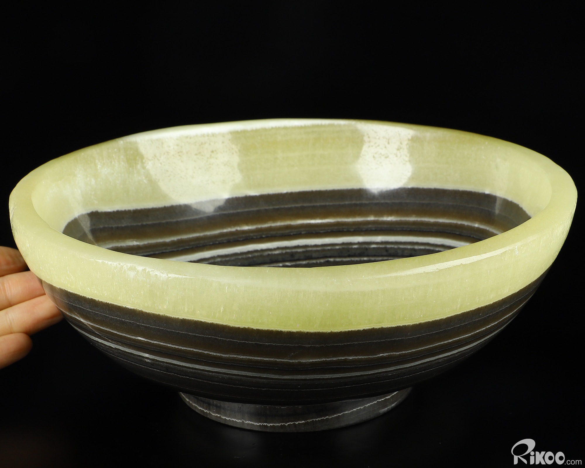 Giant 8.9" Zebra Calcite Hand Carved Crystal Bowl Sculpture, Crystal Healing